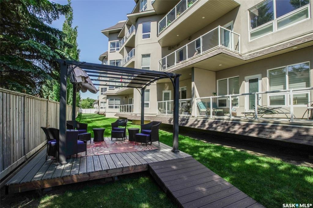 Welcome to 206-227 Pinehouse! This south-facing condo has a spacious entry, ample closets and private laundry room with storage. The open layout connects the kitchen, dining and living areas, offering views of fir trees and skyline. The modern kitchen features granite countertops, backsplash, brand new counter depth fridge and range and plenty of cabinet and work space. The sunlit living area, master bedroom with ensuite and walk in closet and a second bedroom with large window offer comfort. There is also a versatile den for office space. Enjoy new laminate flooring and a freshly painted, immaculate space! Relax on your private balcony in the sunshine. Condo includes underground parking and storage unit. The building is equipped with in-floor heating, sound-insulated walls and natural heat in parkade. River Gate condominiums also offers a recreation center, summer garden beds and a gazebo. Located in popular Lawson Heights - near the river, Meewasin Trail and various amenities like a mall, dining and medical services. Move in immediately and seize this fantastic opportunity! Don't let is slip away - call for a viewing today!