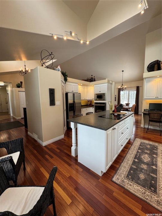 A Private Oasis with Everything You Need! Tucked away in a peaceful, serene setting, this 2004 built, 3-bedroom, 3-bath home offers the perfect blend of comfort, space, & functionality. Nestled on 4.96 acres, this property is designed for those who appreciate privacy while still enjoying modern conveniences.Step inside to discover vaulted ceilings and dormer windows, filling the space with natural light. The main level boasts hardwood floors, a beautifully designed kitchen with ample cabinetry, a built-in oven, & a stovetop, natural gas furnace plus a cozy wood-burning fireplace for those chilly evenings. The three-season sunroom off the dining area provides a perfect spot to enjoy the backyard views year-round. The primary suite is your personal retreat—large enough for a king-sized bed, featuring a walk-in closet and a 4-piece ensuite with a Jacuzzi tub. Main-floor laundry adds to the home's convenience. Downstairs you'll find 9' ceilings which features a spacious family room with heated floors, two large bedrooms, a bonus area for workouts or hobbies, plus ample storage & cold storage. A walk-out leads to the attached garage for easy access. Outside, enjoy relaxing under the front veranda or working on projects in the 36' x 45' heated shop. The landscaped yard includes garden space, a garden shed, the back yard has a waterfall pond & fire pit patio. Potable well water complete with reverse osmosis water system plus the home is also equipped with forced air heating, air exchanger, central air, central vac, and high-speed WiFi—ensuring year-round comfort. This turnkey package offers the best of country living with modern amenities and only a couple minutes to Hudson Bay where you find all your needs from the 2015 build K-Grade 12 school, new swimming pool, skating arena, curling rink, hospital, library and sufficient shopping places. Hudson Bay is surrounded by many sledding trails and natural lakes and wildlife. Don't miss out—schedule your private viewing today!