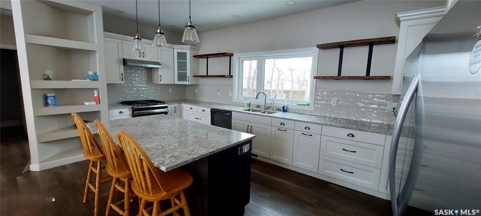 Welcome to this stunning 2018-built home at 106 Lakeshore Lane, Leslie Beach, offering an incredible modern design and breathtaking waterfront views. With 1,744 sq ft main floor and a 513 sq ft loft, this home provides a serene living experience. As you enter the house, you'll be greeted by an open-concept design, blending the kitchen, dining, and living areas. The large windows throughout provide panoramic views of the lake. Cozying up by the living room's gas fireplace on chilly nights creates a warm, inviting atmosphere. The kitchen is a showpiece, with no detail overlooked—custom-built cabinets with pot lighting and a large island featuring elegant quartz countertops. The kitchen has appliances, including a gas range and a bonus second electric wall oven. The walk-in pantry has a generous counter shelf and storage shelves that reach the ceiling, for the kitchen essentials. The spacious master bedroom offers large windows showcasing the stunning lake views. A walk-in closet and the large ensuite is nothing short of luxurious. Have a relaxing soak in the 6-foot tub or shower and step onto the warm in-floor heating. The second bedroom on the main floor also faces the lake, providing beautiful views and a peaceful atmosphere. This room has a large closet and a queen-size Murphy bed. The separate bathroom with a walk-in large shower is perfect for accommodating guests. Step up to the loft, where you'll find a walkway overlooking the main level. The loft boasts a large bedroom with windows offering a great lake view, a 3-piece bathroom, and a practical storage room, housing the water softener and a freezer. Step outside onto the attached deck with glass gas-lit railing, including a beer barn that provides the ideal spot to enjoy the outdoors. With exceptional craftsmanship, luxury finishes, and an unbeatable location, this home is the perfect place to create lasting memories.This is a rare opportunity to own a piece of paradise at Leslie Beach!