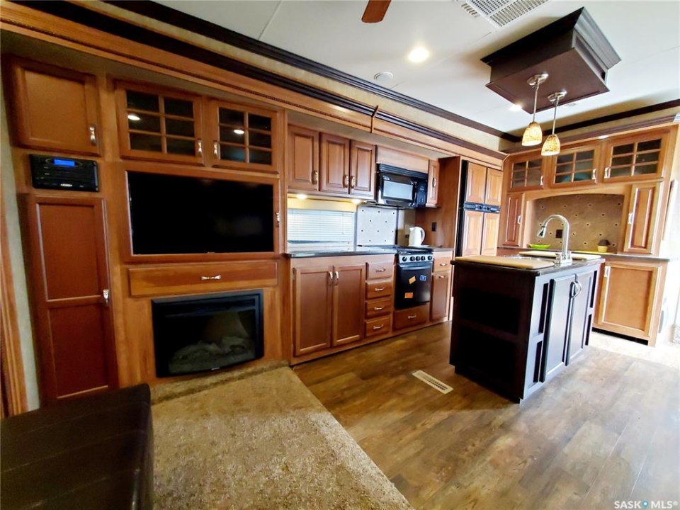 Lakefront Luxury at Rock Ridge RV Resort! Escape to comfort in this stunning 2014 Goldrush 40' trailer featuring a gourmet kitchen with quartz island, gas stove, pendant lighting, and rich caramel cabinetry. Natural light fills the open living space complete with fireplace, TV, and crown molding throughout. The king-sized primary bedroom and oversized shower add to the upscale feel. Step outside to a grand deck with grill, 10x10 shed, outdoor shower, and your shared lakefront dock—perfect for fishing, boating, or relaxing. Affordable, turnkey, and ready for your summer adventures!