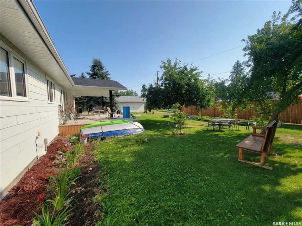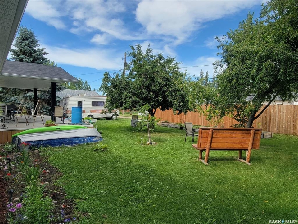Welcome to 404 Broad Street, Cut Knife, SK – where timeless elegance meets everyday comfort. Priced at $218,000, this 1,628 sq ft brick bungalow is full of charm and functionality, inside and out. From the moment you arrive, you'll appreciate the impressive curb appeal, featuring a classic brick exterior, interlocking brick driveway, and mature landscaping that sets the tone for what's inside. Step into a warm and spacious living room, complete with a gas fireplace and sunlit garden doors leading to your own backyard retreat. The oak kitchen offers generous cupboard and counter space, perfect for everyday living or entertaining. Conveniently located off the kitchen is the laundry area with access to the double attached garage and basement. The thoughtfully designed main floor features a spacious primary bedroom with a walk-in closet and luxurious ensuite complete with a jetted tub, two additional bedrooms (one currently used as a home office), and a second stylish 3-piece bathroom. Step outside onto the expansive covered deck, perfect for relaxing or hosting guests, and enjoy the private, mature yard with a garden area, storage shed, and room to roam. You'll also find sour cherry, plum, and apple tree's along with a fire pit area and RV parking with a 30 amp plug. The newly developed basement provides even more living space, featuring a large family and playroom, a modern 3-piece bathroom, utility and storage rooms, and an additional bedroom that could be easily divided into two. Recent updates include a Whirlpool fridge and convection oven with air fryer, new carpet in the living room, lino in the kitchen and dining area, and a partially fenced backyard added in the last two years. This home offers a wonderful combination of space, comfort, and thoughtful details – ideal for families, retirees, or anyone seeking a move-in-ready home in a welcoming community. Call today to experience all that this Cut Knife gem has to offer.
