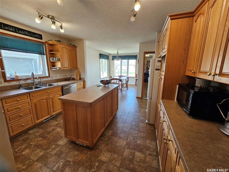Welcome to 115 Carson Bay in the friendly community of Lampman! This bright and spacious 4-bedroom bi-level home sits on a large, fenced lot with a double detached garage with back lane access. With 1,500 sq ft per level, there's plenty of room for families or empty nesters who love to host. The open-concept main floor features a large island kitchen with ample cabinets and counter space, a breakfast nook, main floor laundry, and a primary bedroom with 3-piece en-suite. Enjoy patio access with a gas BBQ hookup right off the back door. The fully finished basement offers two more bedrooms, a family room, den, office area, full bath, and utility room with a 2019 hot water tank and central A/C. Located on a quiet bay close to school and playground—this is a great home at a great price! Don't miss your chance to call 115 Carson Bay home. Schedule your showing today!