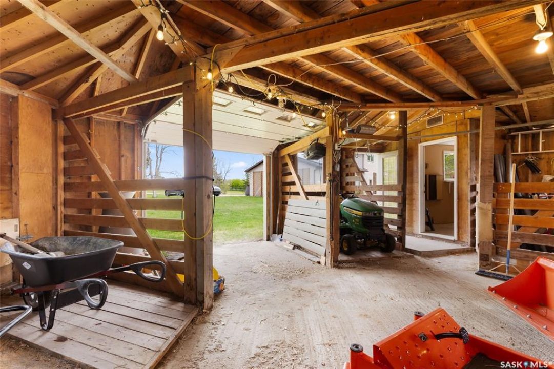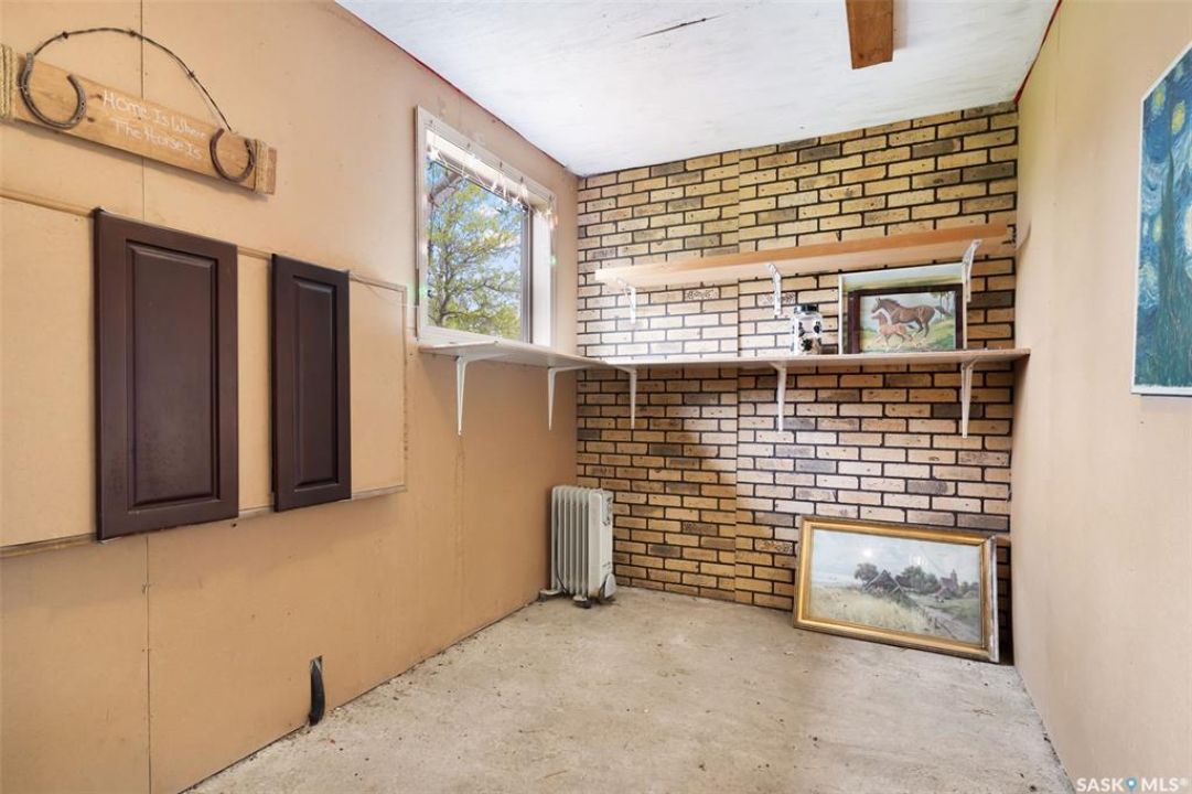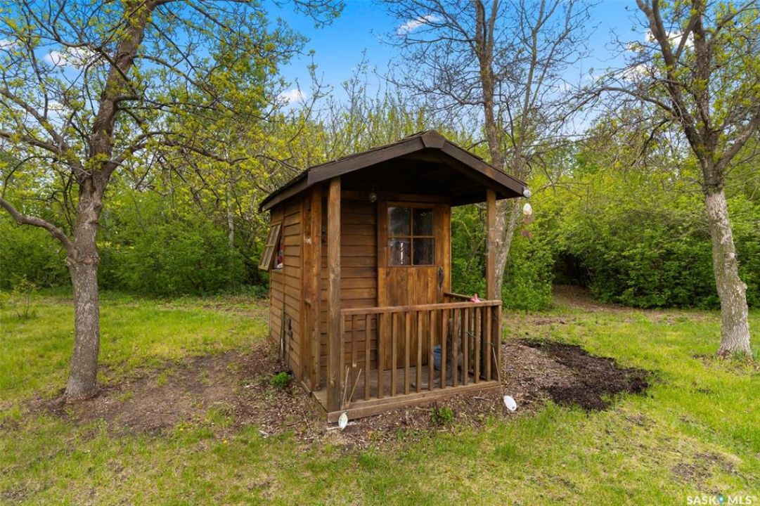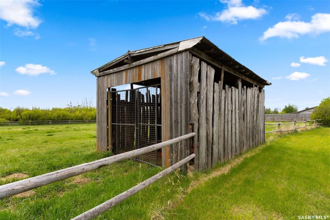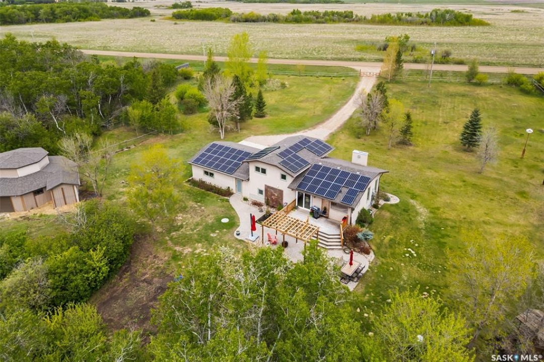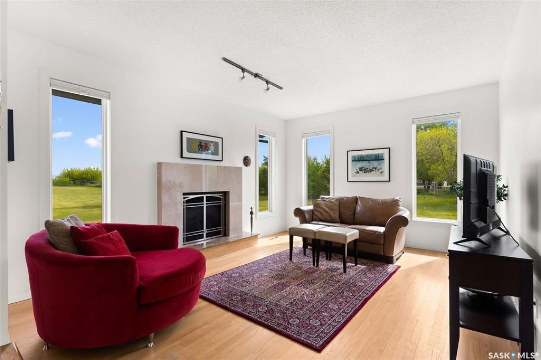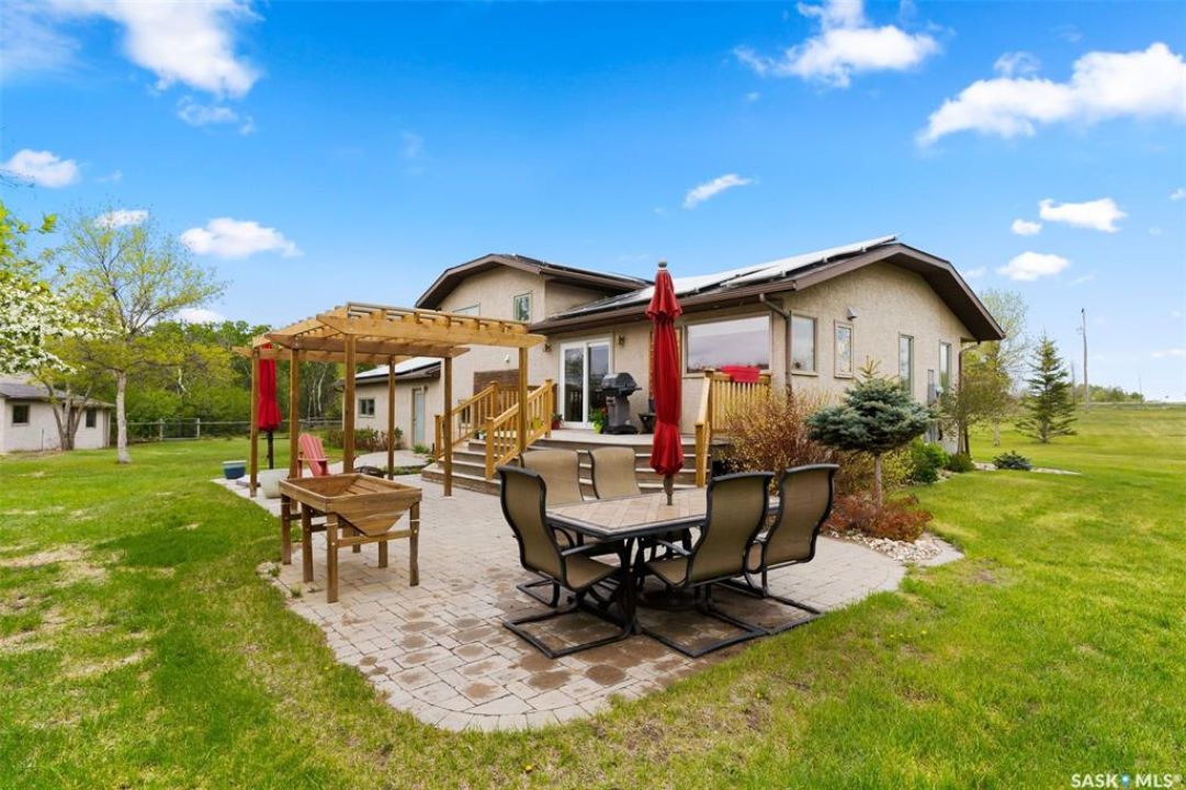 Welcome to this stunning country retreat, where modern convenience meets peaceful rural living. Nestled on 4.48 acres of thoughtfully developed land, this beautifully updated 1,584 sq. ft. four-level split offers tranquility with easy access to Regina, White City, Pilot Butte and the scenic White Butte trails. Built in 1984, this meticulously maintained home features cork & hardwood flooring throughout most living spaces, complemented by natural light pouring through triple-pane windows. The renovated kitchen boasts stainless steel appliances, a gas stovetop, built-in oven with warming drawer, an island, wall pantry, granite and quartz counter tops & backsplash, roll-out drawers. It opens nicely to the dining area. The sunken living room offers a cozy 25,000 BTU gas fireplace—perfect for relaxing evenings. Upstairs, the spacious primary bedroom has Jack & Jill access to the main bathroom, alongside a generous 2nd bedroom, a stylish 3 piece bath & a conveniently located laundry room. The 3rd level offers 2 additional bedrooms (one without a closet), a 2nd bath, a pantry with 2nd fridge, sink & under-cabinet grow lights. A generous side entry foyer provides direct access to the oversized double garage. The fully finished basement features a large L-shaped family room & utility room. Thoughtful upgrades include: high-efficiency furnace (2023), A/C (2021), SOLAR PANEL system (2022), Kinetico water softener and RO system, and central vac (2022). The oversized 30' x 26' garage includes 220-volt power and an inverter for future energy needs. The picturesque acreage features a 946 sq. ft. barn with an insulated tack room, fenced garden and fruit tree area, a large dog pen, horse and hay shelters, and a meadow seeded with wildflowers. The south-facing deck, paving stone patio, pergola, gas BBQ hookup provide endless outdoor enjoyment. Backing onto the White Butte ski trails, this acreage is the perfect blend of comfort, functionality, and natural beauty! A must see property!