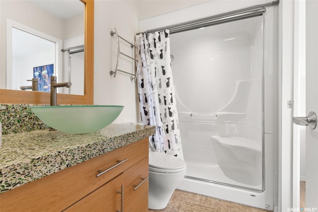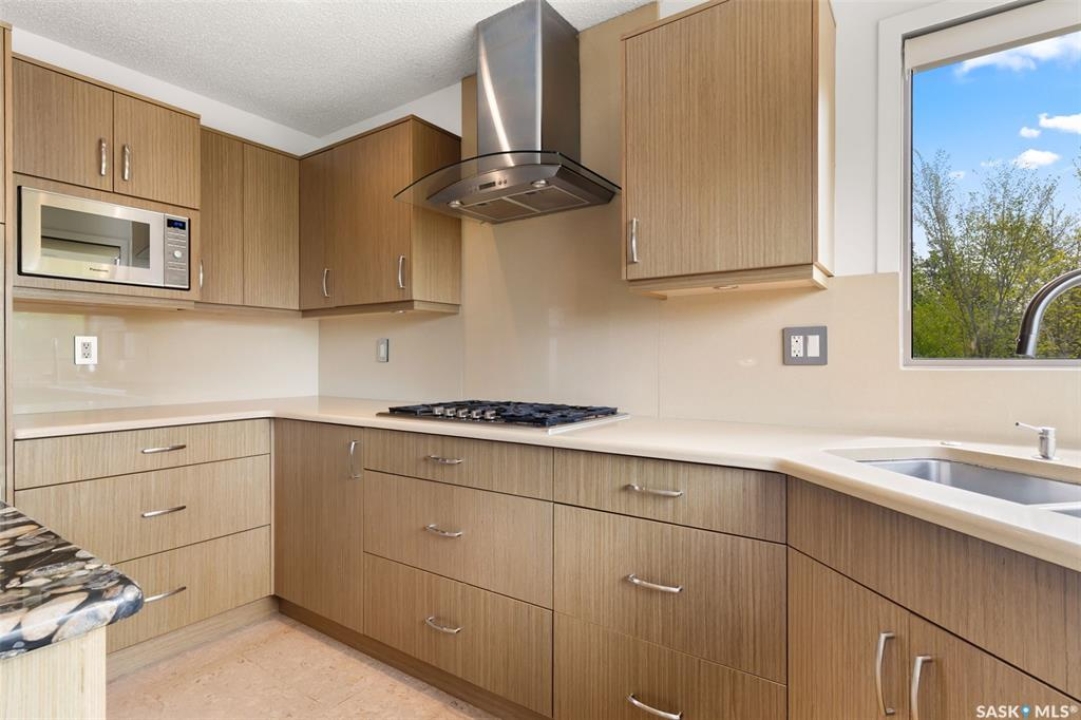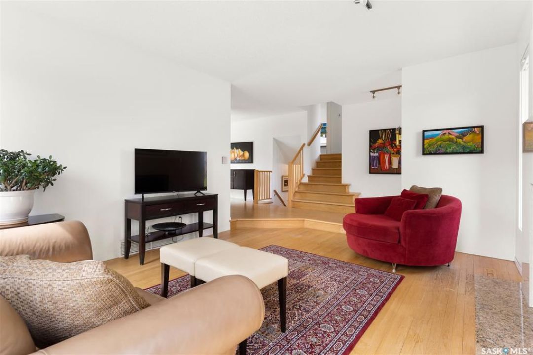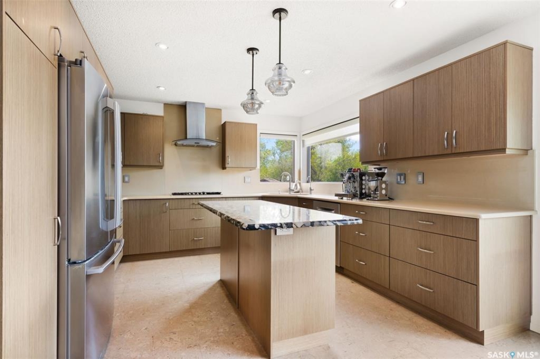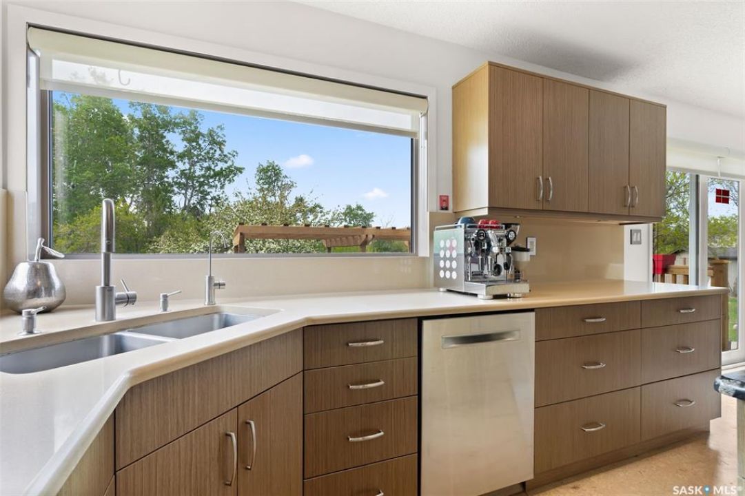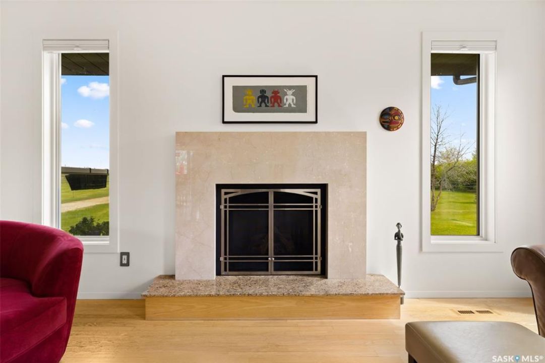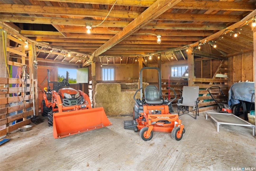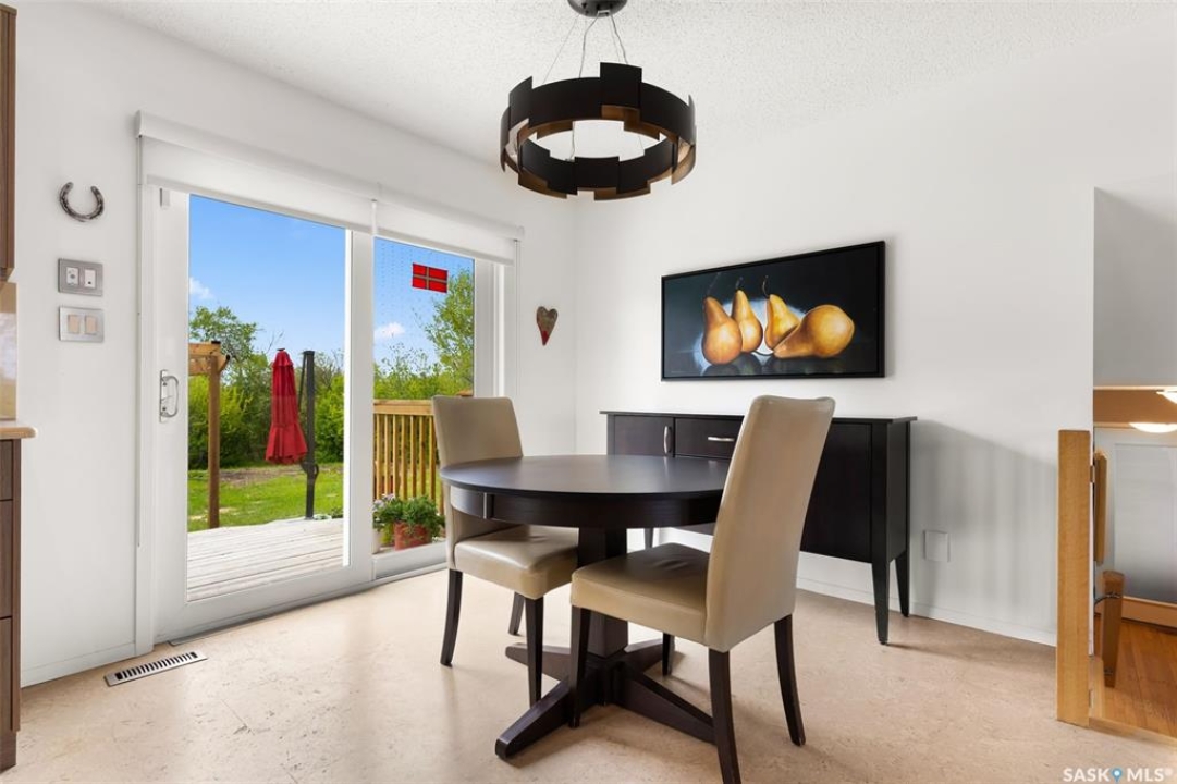 Welcome to this stunning country retreat, where modern convenience meets peaceful rural living. Nestled on 4.48 acres of thoughtfully developed land, this beautifully updated 1,584 sq. ft. four-level split offers tranquility with easy access to Regina, White City, Pilot Butte and the scenic White Butte trails. Built in 1984, this meticulously maintained home features cork & hardwood flooring throughout most living spaces, complemented by natural light pouring through triple-pane windows. The renovated kitchen boasts stainless steel appliances, a gas stovetop, built-in oven with warming drawer, an island, wall pantry, granite and quartz counter tops & backsplash, roll-out drawers. It opens nicely to the dining area. The sunken living room offers a cozy 25,000 BTU gas fireplace—perfect for relaxing evenings. Upstairs, the spacious primary bedroom has Jack & Jill access to the main bathroom, alongside a generous 2nd bedroom, a stylish 3 piece bath & a conveniently located laundry room. The 3rd level offers 2 additional bedrooms (one without a closet), a 2nd bath, a pantry with 2nd fridge, sink & under-cabinet grow lights. A generous side entry foyer provides direct access to the oversized double garage. The fully finished basement features a large L-shaped family room & utility room. Thoughtful upgrades include: high-efficiency furnace (2023), A/C (2021), SOLAR PANEL system (2022), Kinetico water softener and RO system, and central vac (2022). The oversized 30' x 26' garage includes 220-volt power and an inverter for future energy needs. The picturesque acreage features a 946 sq. ft. barn with an insulated tack room, fenced garden and fruit tree area, a large dog pen, horse and hay shelters, and a meadow seeded with wildflowers. The south-facing deck, paving stone patio, pergola, gas BBQ hookup provide endless outdoor enjoyment. Backing onto the White Butte ski trails, this acreage is the perfect blend of comfort, functionality, and natural beauty! A must see property!