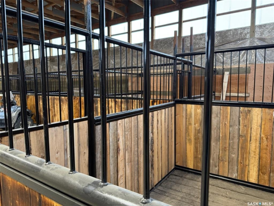 Fully operational horse set-up only 25 minutes from Costco in East Regina. 80 acres of secluded land three kilometres north of McLean with 240 x 70 enclosed and heated riding arena with 11 indoor boarding paddocks, office / lounge, bathrooms, tack room, and partly completed mezzanine area that could used for a suite or more offices. Original cost to build was approximately $750,000.00 plus additional upgrades were another $40,000.00. Replacement cost would be much higher today. The older blue barn has 8 stalls and there are 10 outdoor paddocks. Ample Well water for personal use and for the horses. Other out buildings include 2 garages, and a bunk house. Both garages are insulated and heated. One is 30' x 30' and the other is 24' x 28'. The main house is a 2024 built modular bungalow with over 1700 sq ft. There are 4 bedrooms, a main floor family room and 2 full baths, plus a large open kitchen with full island and pantry. This property is a must see.