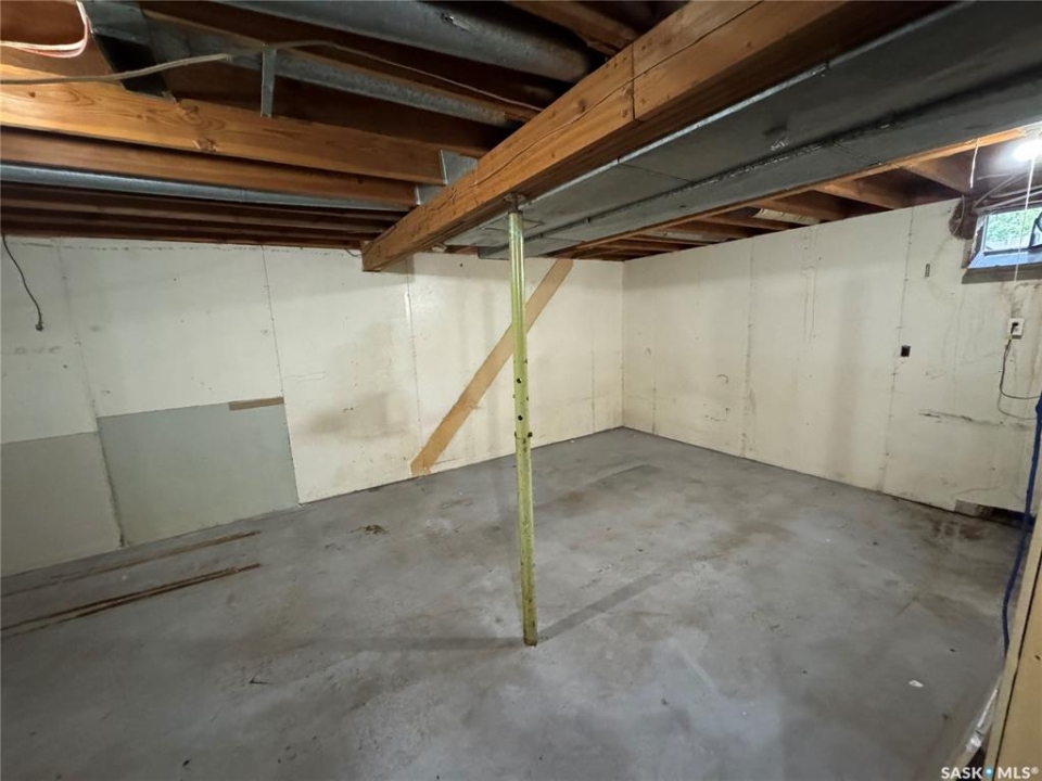Welcome to this cozy and affordable 879 sq ft bungalow, perfectly located at 414 3rd Avenue in the welcoming town of Naicam. Just one block from the school, this home offers the ideal blend of convenience, comfort, and value—perfect for first-time buyers, young families, or those looking to downsize. Step inside to find a functional, open-concept layout featuring a spacious kitchen, living, and dining area. The kitchen offers ample cabinet space and a bright eat-in dining area, making everyday cooking and family meals a breeze. You'll also find two generous bedrooms and a full bathroom, all designed with practicality in mind.Outside, enjoy a fully fenced, generous-sized yard—ideal for children, pets, gardening, or even future expansion to build the garage you've always wanted.The basement is currently unfinished, offering a blank canvas with the potential to add additional living space, including a third bedroom and family room.Located in a quiet, close-knit community, this home combines the charm of small-town living with the convenience of being a short drive to larger centers. Whether you're entering the housing market or searching for a solid investment opportunity, this home is full of potential. Don't miss out—book your viewing today!