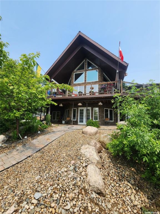 Built in 2010, this stunning lakefront home sits on 3 lots (180 feet of frontage) and offers over 4,100 sq. ft. of living space spread across three levels, including a walkout basement and a loft. With 3 bedrooms and 4 bathrooms—plus the potential to add two more bedrooms—this home is designed to accommodate families of all sizes. The main level offers a bright and inviting living room, highlighted by vaulted wood-clad ceilings, a natural gas fireplace, beautiful Ficus tree and expansive windows that frame stunning lake views. The open-concept kitchen effortlessly connects to the dining area, which opens onto a full-length deck—ideal for outdoor dining or enjoying the scenery. Just off the dining space, a generous family room features a wet bar and wood stove, making it perfect for both entertaining and relaxing. Also on the main floor are two bedrooms, including a primary suite complete with a 4-pc ensuite, walk-in closet, and convenient laundry. A 3-pc bathroom adds to the main level's functionality. Upstairs, the loft currently serves as a bedroom and includes a 3-piece bath and walk-in closet—all while offering incredible views of the lake. The walkout lower level features a 3rd bedroom, a cozy family room with a natural gas fireplace, and direct views of the front yard and lake. You'll also find a versatile "man cave" with a garage door that opens to an outdoor kitchen (in progress), creating a seamless indoor-outdoor retreat. A 3-pc bath, den, office space, utility/storage rooms and an exercise area with potential for another bedroom round out the lower level. The beautifully landscaped yard is thoughtfully designed with rocks, pavers, mature trees, and shrubs—offering plenty of room to relax and enjoy. A path leads down to the water, where you'll find powered docks and gas hookup right at the shoreline, making it easy to get out on the lake and enjoy all it has to offer. A 2 car garage and driveway along the back offer plenty of parking.