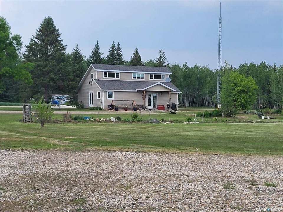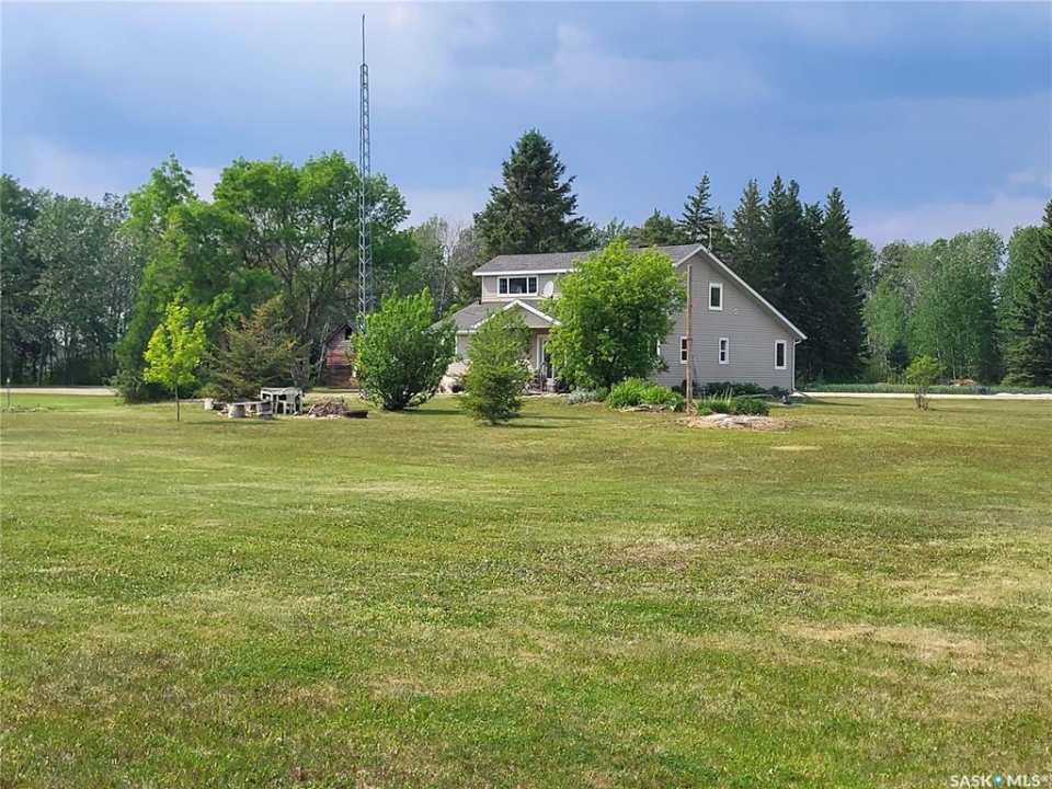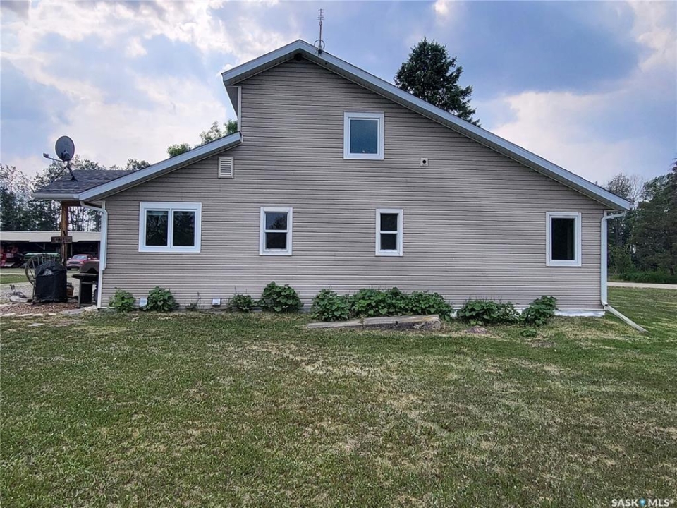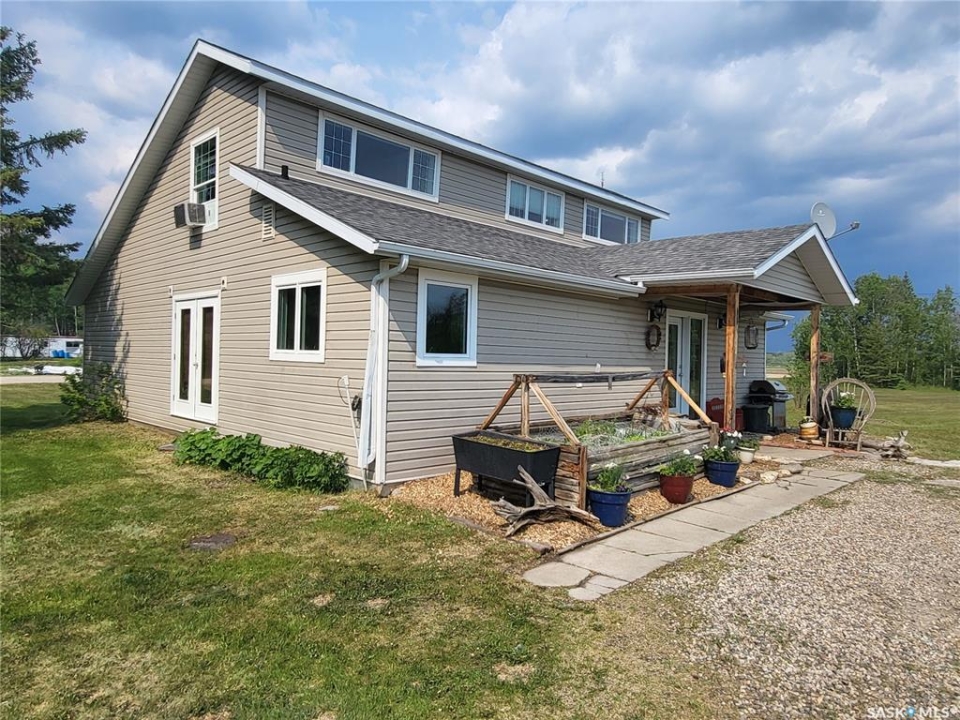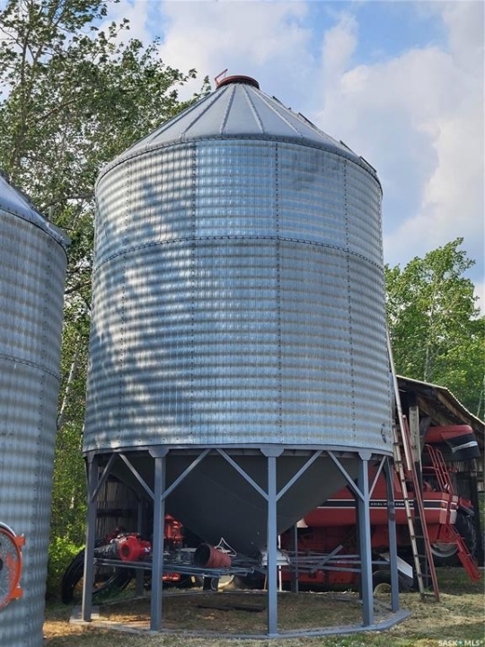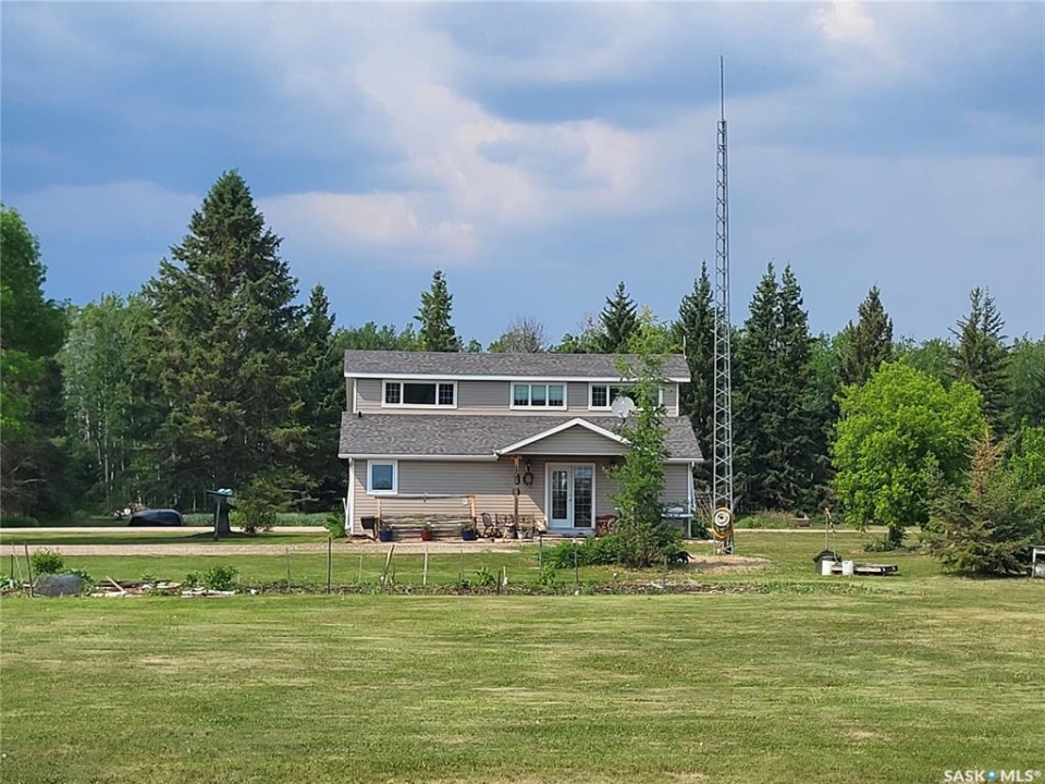 Enjoy peaceful country living on this well-developed 9.98-acre property located just 55 miles east of Nipawin on Highway 55. This 1.5-storey, 1,980 sq. ft. home (1,440 sq. ft. main floor + 540 sq. ft. upper level), built in 1980 (portion), sits on a solid cement grey beam foundation with asphalt shingle roofing. The home has a cellar with a sump pump, furnace, hot water heater, dehumidifier, and HVAC system. Appliances included: fridge, stove, washer, dryer, built-in dishwasher, air conditioner, air exchanger, and window treatments. Water is supplied by a 121' deep, 4” well producing 35 igpm. Legal Land Description: Blk/Par B- Plan 102306305 Ext 0Outbuildings & Features: •Shop (24' x 24'): Wooden Quonset, insulated and lined, cement floor, 240V electric heater, 110V & 220Vpower. •Storage Shed (13' x 32'): Cement floor, metal clad, power, metal roof. •Fuel Shed (12' x 16'): Wood floor, metal clad, metal roof. •Chicken Coop (10' x 14'), Pole Shed (63' x 25') with power and metal roof. •Wood Granary (12' x 16') with metal roof. •Grain Storage: 2 x 1,600 bu Behlen bins on cement; optional additional 8,250 bu capacity includes: 2,900 buBehlen hopper bin, 2 x 2,000 bu Gobel bins (steel floors), 1 x 1,350 bu Westeel Rosco on hopper. Optional Expansion Opportunity: Adjacent 3.4-acre parcel (Surface Parcel #161834913) available for an additional $25,000 to the buyer. Includes septic tank and approach, offering potential for future development or expanded yard use.