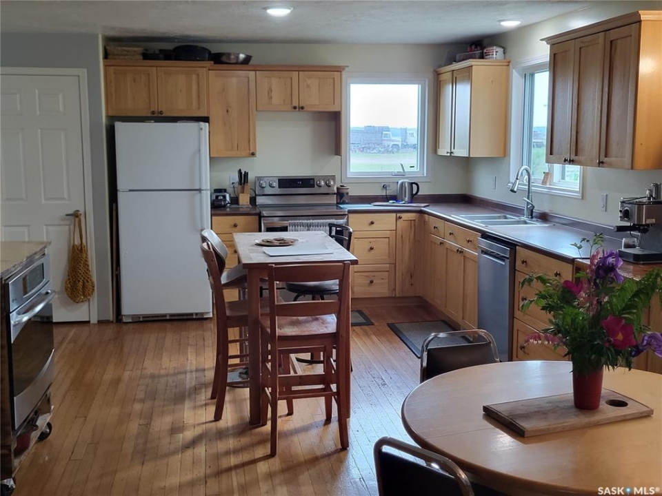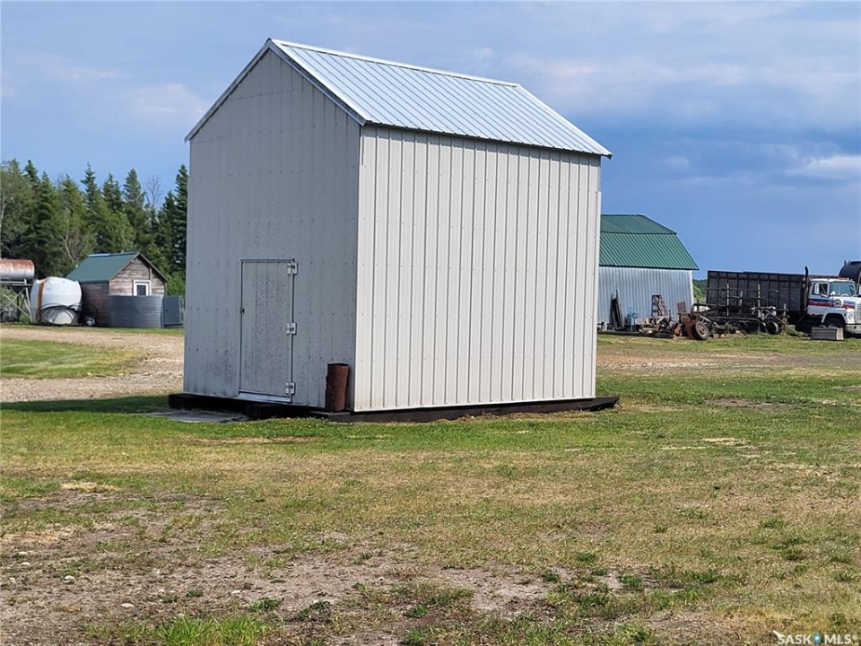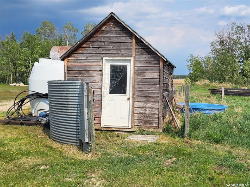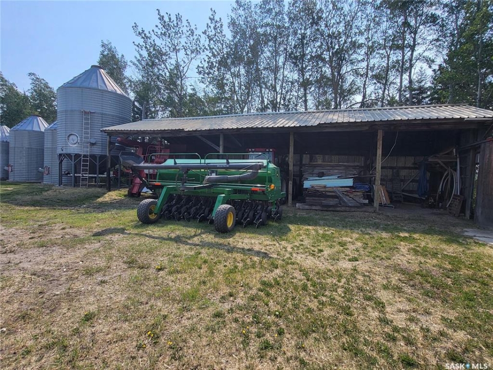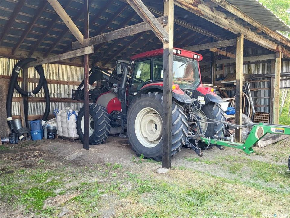 Enjoy peaceful country living on this well-developed 9.98-acre property located just 55 miles east of Nipawin on Highway 55. This 1.5-storey, 1,980 sq. ft. home (1,440 sq. ft. main floor + 540 sq. ft. upper level), built in 1980 (portion), sits on a solid cement grey beam foundation with asphalt shingle roofing. The home has a cellar with a sump pump, furnace, hot water heater, dehumidifier, and HVAC system. Appliances included: fridge, stove, washer, dryer, built-in dishwasher, air conditioner, air exchanger, and window treatments. Water is supplied by a 121' deep, 4” well producing 35 igpm. Legal Land Description: Blk/Par B- Plan 102306305 Ext 0Outbuildings & Features: •Shop (24' x 24'): Wooden Quonset, insulated and lined, cement floor, 240V electric heater, 110V & 220Vpower. •Storage Shed (13' x 32'): Cement floor, metal clad, power, metal roof. •Fuel Shed (12' x 16'): Wood floor, metal clad, metal roof. •Chicken Coop (10' x 14'), Pole Shed (63' x 25') with power and metal roof. •Wood Granary (12' x 16') with metal roof. •Grain Storage: 2 x 1,600 bu Behlen bins on cement; optional additional 8,250 bu capacity includes: 2,900 buBehlen hopper bin, 2 x 2,000 bu Gobel bins (steel floors), 1 x 1,350 bu Westeel Rosco on hopper. Optional Expansion Opportunity: Adjacent 3.4-acre parcel (Surface Parcel #161834913) available for an additional $25,000 to the buyer. Includes septic tank and approach, offering potential for future development or expanded yard use.