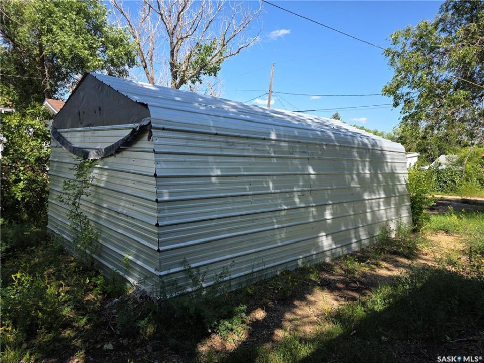 Welcome to the community of Ponteix where you will find this charming home just waiting for you to move in! This home has been very well maintained with newer shingles, PVC windows, water heater in 2023, and furnace in 2011. The main floor offers the primary bedroom and 4 piece bath. With an open concept kitchen, dining and living area! The laundry is currently in the kitchen area but could be relocated to the back porch if need be. The 2nd floor has 2 bedroom spaces and a large landing. The front of the home features a covered deck and the back yard has a deck with a popup garage for your covered off street parking.