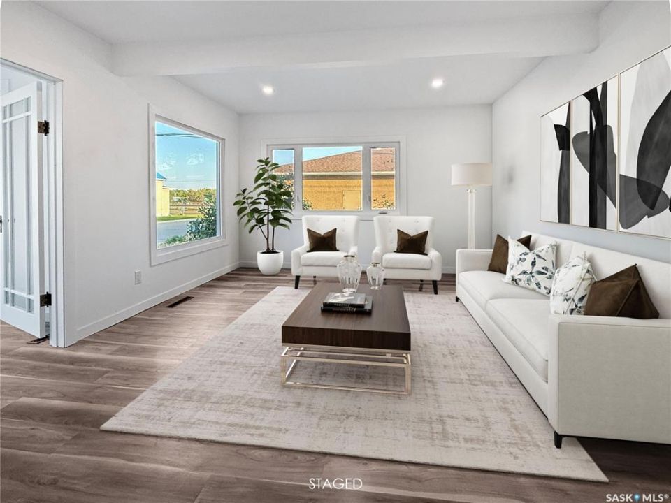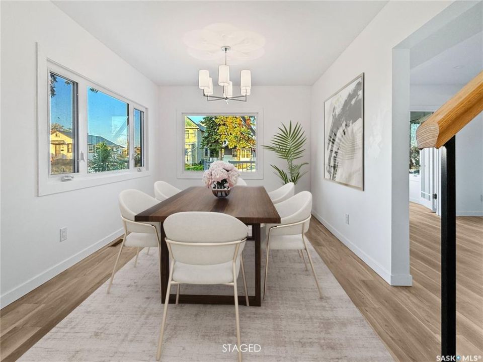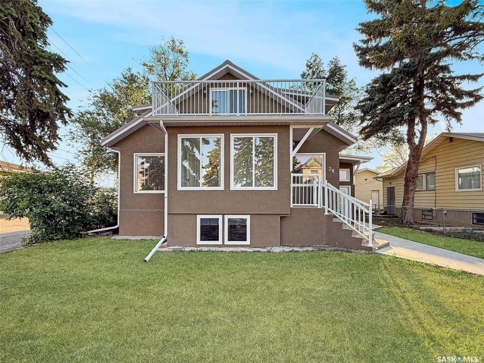 Welcome to 28th 3rd Ave. NE, a stunning property in a prime location, just steps from downtown, a short block to the Great Plains College, and near scenic parks and walking paths. Step inside to find a BRAND-NEW kitchen connected to a cozy window filled breakfast nook with patio doors to a deck in the backyard, and with a butler's pantry with motion-activated lighting and two plug-ins for spare refrigerator/freezer and workstation. Leading off the kitchen is a den, and a bedroom with a walk-in closet. This level also includes a formal dining area, an oversized living room, a cozy front 4-season sunroom, and a three-piece bath/laundry room. The second level features three bedrooms, one of which has a front balcony and connects to the main bathroom via a Jack and Jill door. The primary suite at the rear boasts its own private balcony, 3 closets including a spacious motion activated lighting walk-in closet, and a fully renovated en suite. The third bedroom has its own walk-in closet with motion activated lighting. The open basement offers development potential with plumbing access for a washroom, space for 2-3 additional bedrooms, suite code basement windows, and a separate outdoor access. This newly renovated home features multiple storage rooms, a new forced air furnace, on demand hot water tank, new central air, and updated electrical service. The home has been gutted to the studs and fully refurbished including but not limited to a new metal roof, insulation upgrades, over-sized new windows, new exterior balconies and deck, sidewalks, newly painted walls, trim and doors, new LVP flooring/carpet, and complete renovations to the electrical and plumbing systems. Insulation upgrades enhance energy efficiency. In the backyard there is a 30AMP plug-in for RV use, which can be upgraded to a 50AMP for EV charging. Call today for more information!