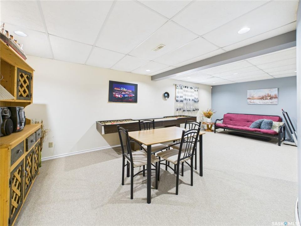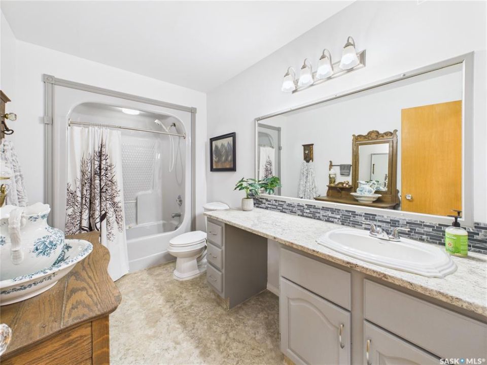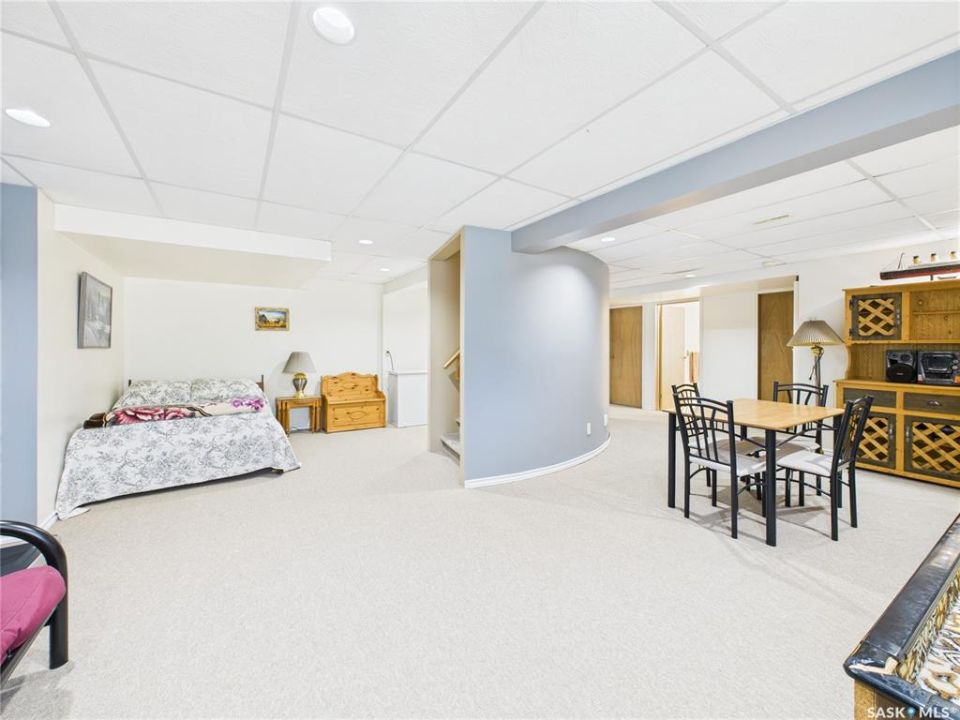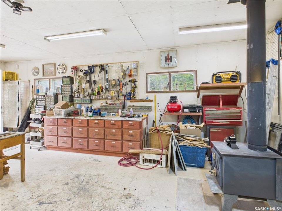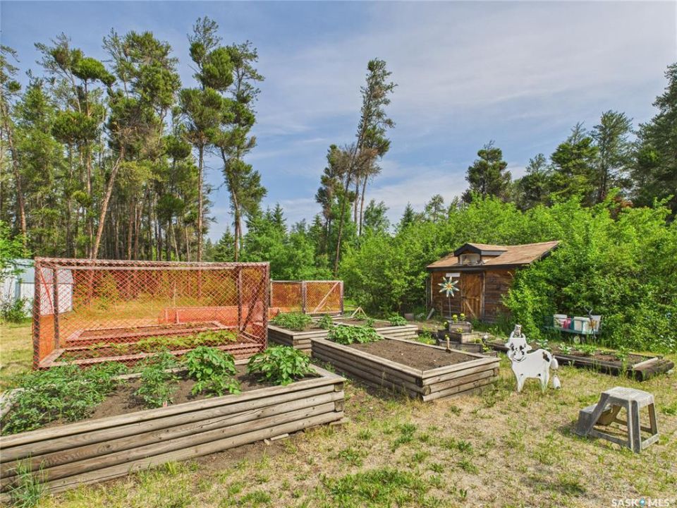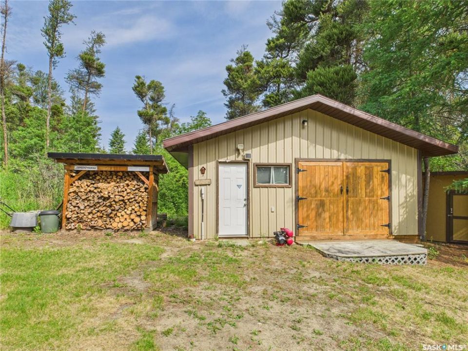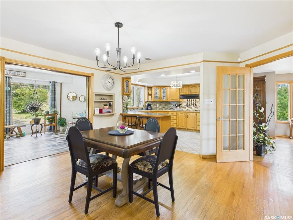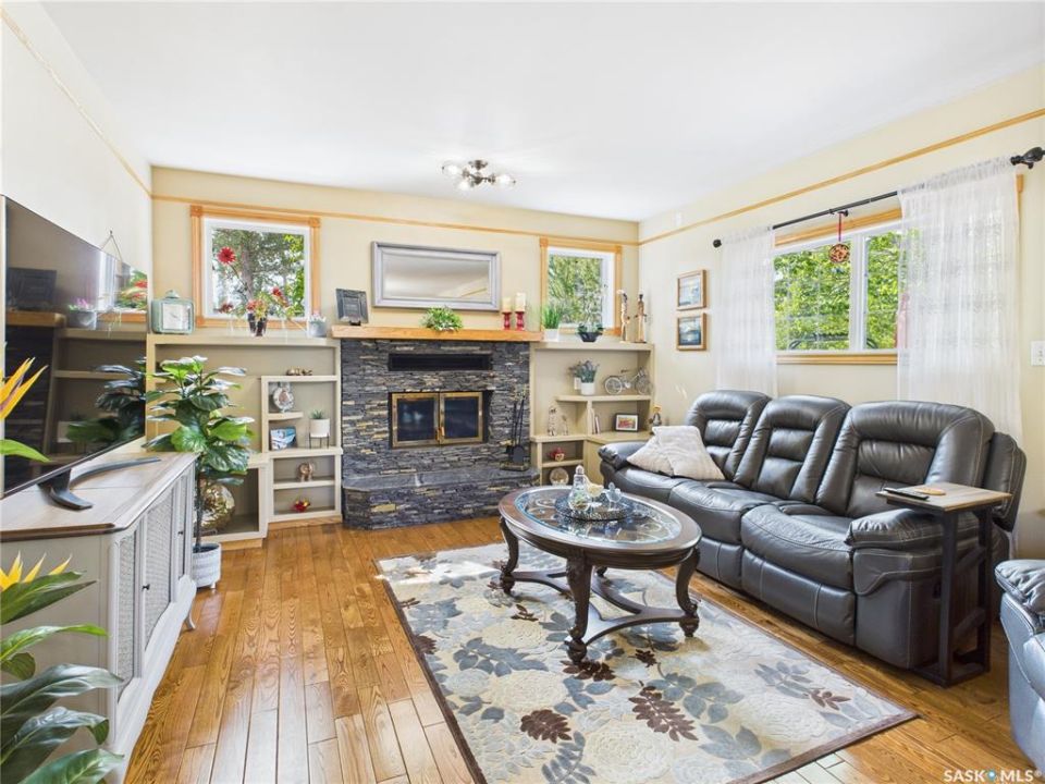 Welcome to this stunning 5-acre property just 7.7 km from Prince Albert, where timeless craftsmanship meets peaceful country living. Tucked behind a canopy of mature trees, this beautifully maintained 2,732 sq ft home offers the perfect blend of privacy, space, and high-end finishes, all just minutes from the city, Red Wing School, and Mark's 9 Golf Course. With 2,732 sq ft of living space, this home has been thoughtfully designed and cared for. A curved staircase makes a stunning first impression as you enter the foyer, and from there, the main floor opens up with both formal and casual living and dining spaces, a den, a 2-piece bath, main floor laundry (with a laundry chute from upstairs!), and direct entry to the double attached garage. The kitchen is filled with custom cabinetry and plenty of prep space overlooking the casual dining area that flows into the sunken family room - perfect for game nights or cozy evenings in. Upstairs, the primary suite features two walk-in closets and a spacious ensuite with double sinks and a combined tub and shower. Two additional bedrooms, a 4 piece bathroom, and a large open loft with skylights complete the upper level, offering a flexible space with a view over the formal living room below. The basement includes a large rec room, a bathroom, and an abundance of storage space for whatever your lifestyle needs. Outside, the cedar shakes and siding add to the home's timeless charm. Interlocking brick paths run from front to back and connect to a generous pad in front of the garage. The yard is extremely private—lined with mature trees and full of quiet corners to relax and enjoy nature. A heated and powered workshop gives you space for hobbies or extra storage, and there's also a Quonset for all the toys. This property is perfect for nature lovers, families looking for room to grow, or anyone craving peaceful country living with high-end touches and city convenience just down the road.