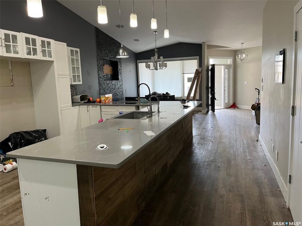 Opportunity! Upon entry is the living room and large open kitchen area, plenty of shelves for storage. There are 4 bedrooms on the main floor as well as a 5pc bath. Going upstairs is a large living room (behind the tinted glass is access to the entertainment controls wired in the house), there is a workout room with water fountain, den and the primary bedroom with ensuite and walk in closet. Going downstairs is a large Rec Room, 4pc bath and multiple bedrooms. Out back is a deck area with BBQ station. Triple attached garage with high ceilings over 2 of the spots. House is in need of various refreshing items.