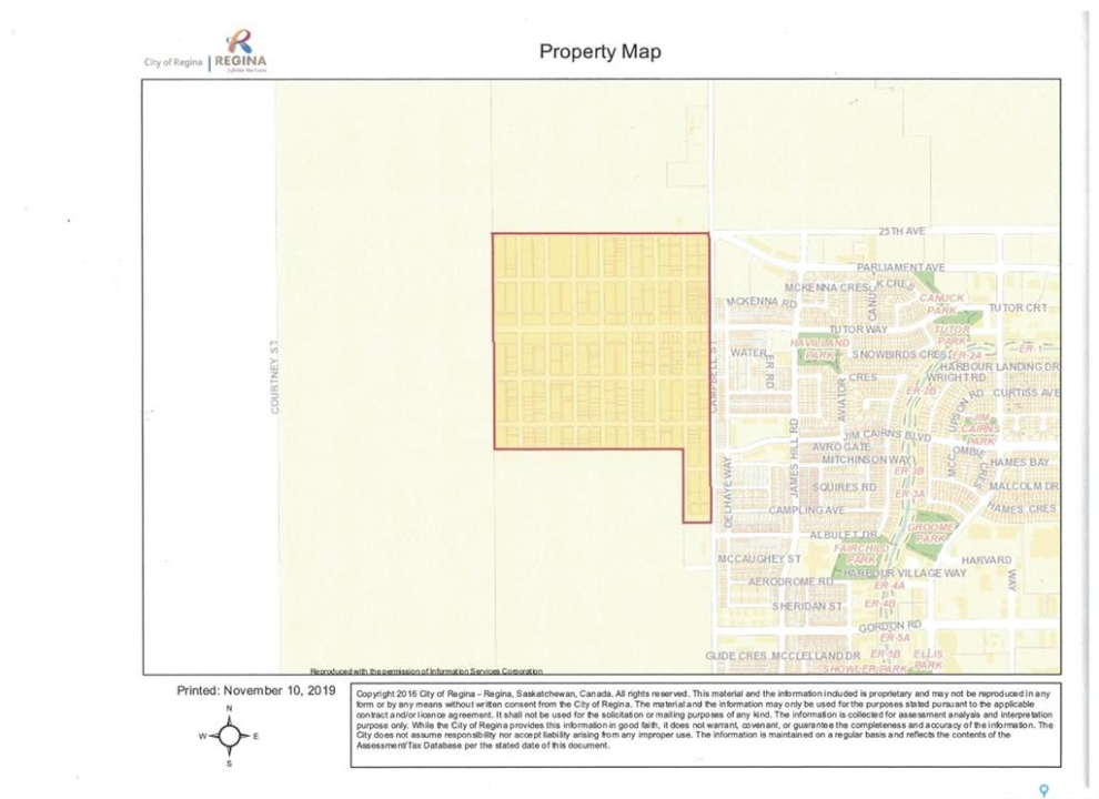 500' x 125' lot (or the same size as 20 lots, 25' x 125') in Devonia Park or Phase IV of West Harbour Landing (located west of Harbour Landing and south of 26th Avenue). This parcel is located on the far west side of 'Devonia Park'. Devonia Park is a quarter section of land originally subdivided into 1,400 lots in 1912. The land was never developed. Investment opportunity only. Brokerage sign at the corner of Campbell Street and Parliament Avenue. GST may apply to the sale price. There may be other costs once the land is developed. More information in the 'West Harbour Landing Neighborhood Planning Report'.