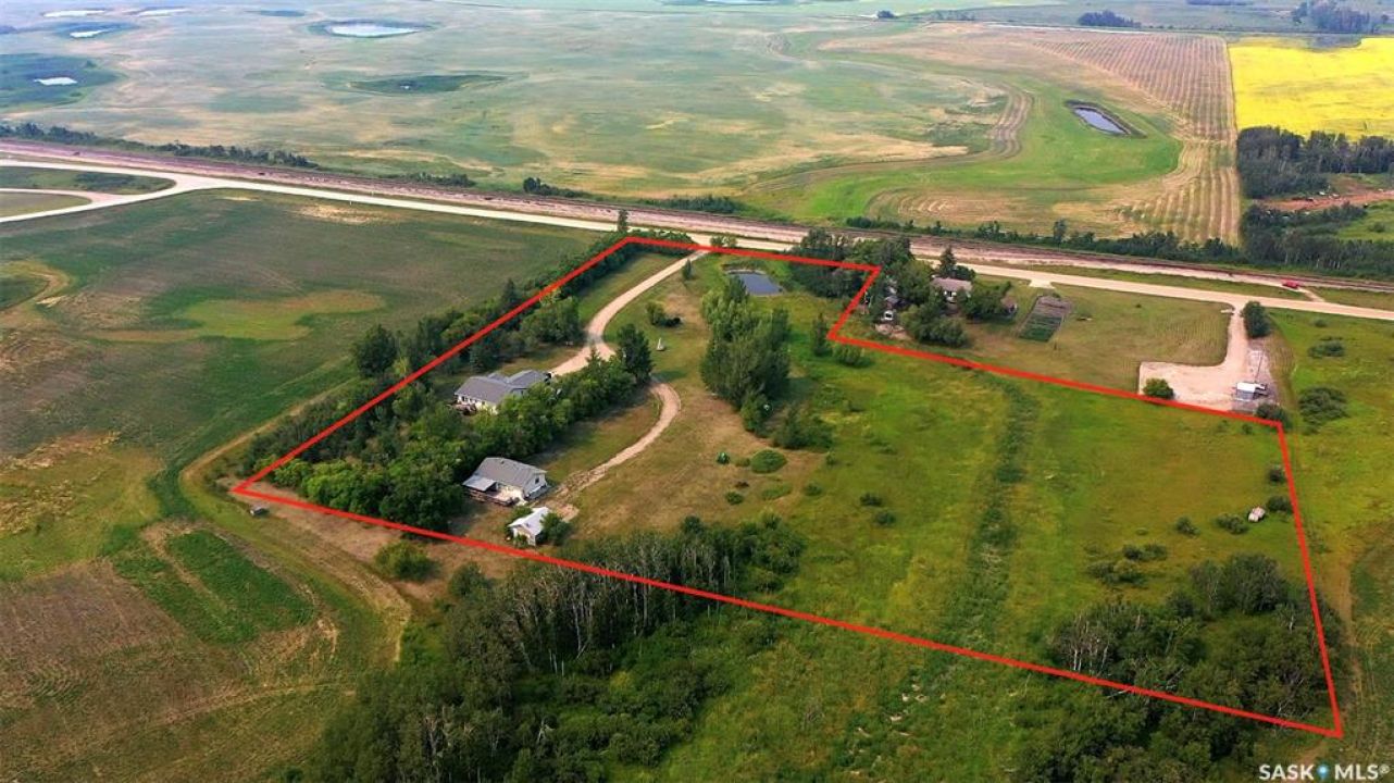 This is a great opportunity to own a private quiet acreage on the edge of the town of Foam Lake. The property has two packages, one with a newer 1991 home and the other with a 1957 bungalow. The newer home is a 2,052 square foot house. It was a 1,526 square foot, 3 bedroom, bungalow that has had the former garage of 528 square feet claimed as more living space with a natural gas heater. The main floor has 3 bedrooms, 1 full bathroom, 2-piece ensuite, laundry in the mud room, large eat in kitchen, dining area, and sunken living room. The basement has a family room, office area, large room with entrance to former garage, 2 bedrooms, 1 bathroom, and a utility room. The home has had upgrades to eaves in 2022, shingles 2023, most windows 2023, some windows in 2001 and more. The basement is mostly finished with ceiling, some trim and some flooring to finish. The property offers a large private space while still being in the town limits. The views area excellent to the north and south, with no residential neighbour on the West side. The second home was built in 1957 with an addition in 1977. It features a beautiful deck overlooking an open field and an older garage that has been turned into a rec area/entertainment space. The house has 3 bedrooms and 2 baths with a large living room, dining room, kitchen and partially finished usable basement.