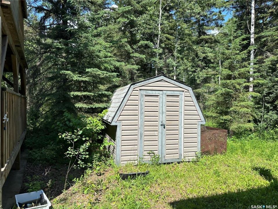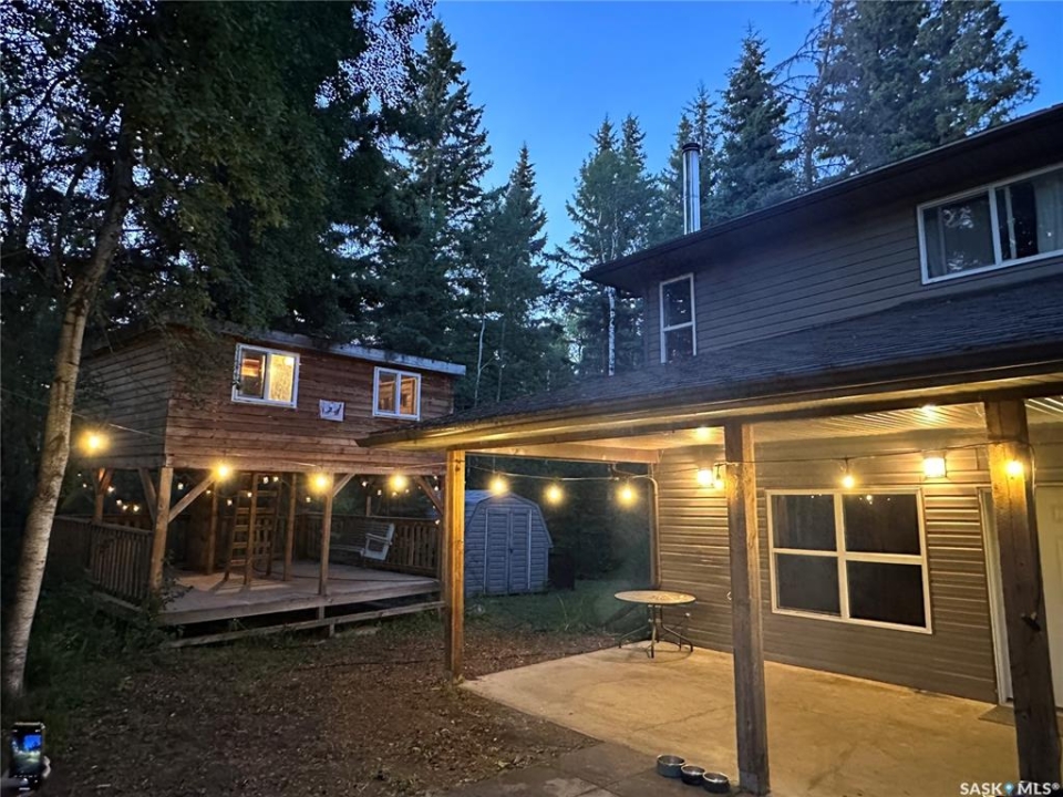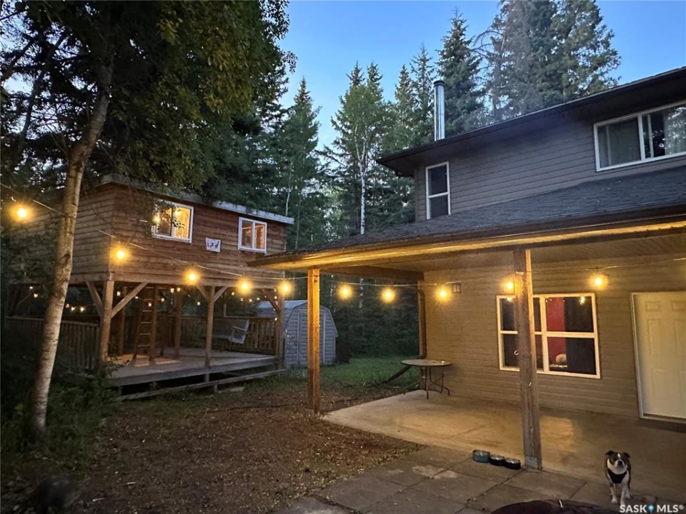 This 4-bedroom 2 bath cabin is situated on a large lot at Powm Beach and is a short distance from the beach. It is set up for 4 seasons with an attached garage as well as a large coverall for your boat and lake toys. The cabin has a large open great room on the main floor with a cozy wood burning fireplace and lovely large windows. Natural light floods the great room, which can be set up in several different ways depending on your preference and furniture size. The main floor is finished with durable tile and the wall colour compliments the red kitchen cabinets. Upstairs, there is laminate flooring throughout the large bonus room and 4 good size bedrooms. Outdoor enthusiasts can camp out in the illuminated treehouse and guests can park their campers in the extra green space. Enjoy everything this property has to offer and enjoy lake life.