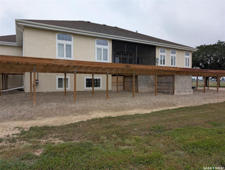Located just off Highway 1 in the peaceful village of Waldeck, this stunning home offers exceptional space, comfort, and quality—only a short 10-minute drive from Swift Current. The main floor features a gorgeous custom kitchen with quartz countertops, ample cupboard space, a breakfast nook, and a separate formal dining room—perfect for hosting family meals. There's also a cozy living room, a dedicated office area, and convenient main-floor laundry. Hardwood and tile flooring run throughout, adding warmth and elegance to the space. The primary suite is spacious and inviting, complete with a walk-in closet and a luxurious five-piece ensuite. Two additional large bedrooms and two more bathrooms provide plenty of space for a growing family. The fully developed basement includes a large family room, second kitchen, laundry area, three more bedrooms, and two full bathrooms. With its own stairway access and a private side door, it's an ideal setup for a big family or a comfortable in-law suite. The attached 32' x 36' garage is heated with natural gas and features three large windows, allowing in lots of natural light—perfect for parking, storage, or a workshop. This home must be seen to be truly appreciated.