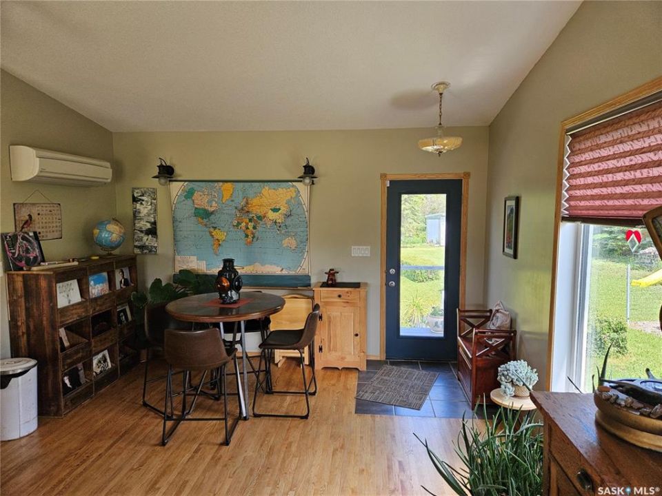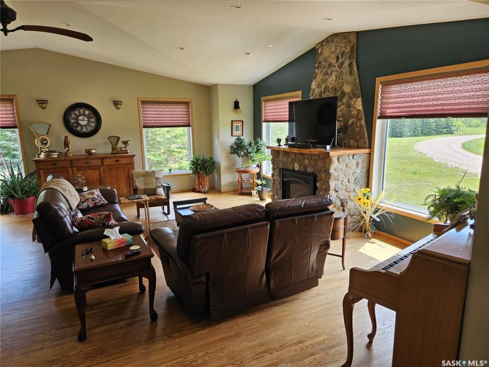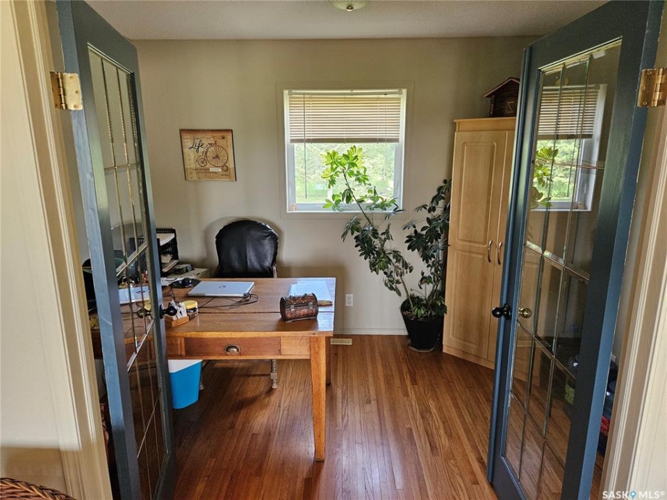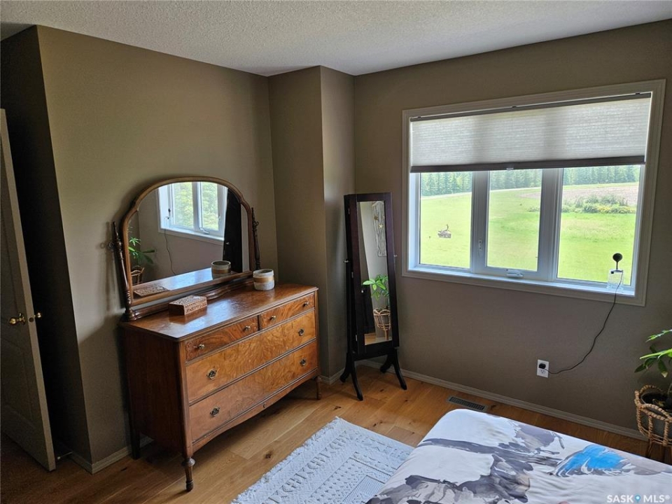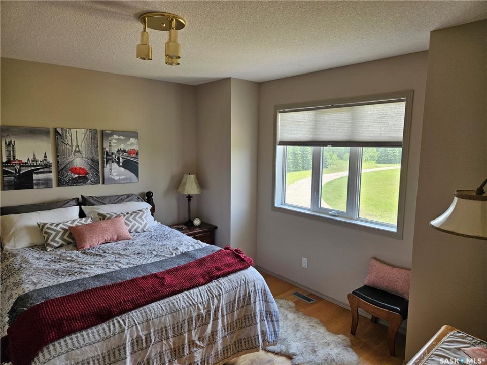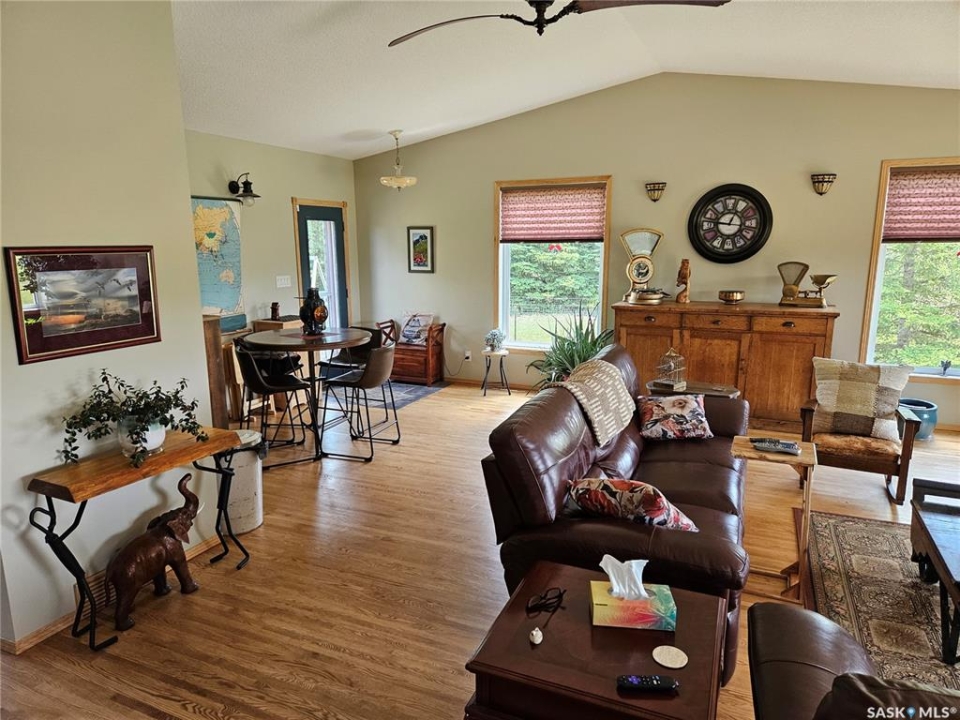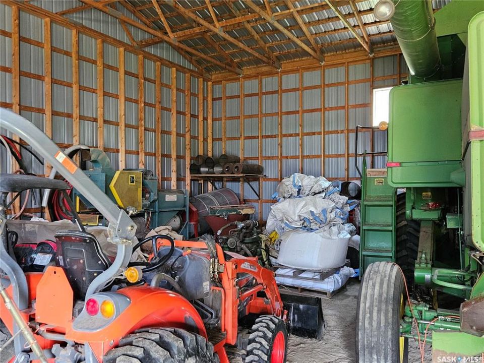 Welcome to this fabulous 19.1 acreage with 2,300 sf of home. The house boasts 3 bedrooms up and an additional bedroom in the finished basement. New kitchen and an addition to the living area on the main that allows for lots of room for a growing family. The 3 season sun room is a great way to start and end your day. The deck in back has a hot tub for total relaxation watching the sunset, overlooking a great yard and raised garden area. The two outbuilding are a 32' x 36' insulated shop with a wood burning stove, and a 40' x 70' split half farm equipment storage, and half for a honey processing facility that is isolated and complete with a 2 piece washroom. The shelter belt is well treed with walking trails around the property. This property and house have been very meticulously cared for and is only 15 minutes from the City of Regina.