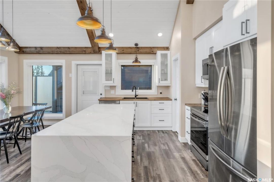 Turn key, fully furnished and immediate possession available. You could be living the lake life this summer! This stunning 2022-built home offers three bedrooms and two bathrooms, all conveniently located on one level. Inside, you'll find a modern, inviting space featuring a quartz waterfall island, butcher block countertops, and seamless white cabinetry. Modern vinyl plank flooring extends throughout the home, creating a cohesive and welcoming feel. For added comfort and protection, the windows are tinted with 100% UV protection and fitted with Hunter Douglas blinds. Air conditioning is also a welcome bonus. The exterior of this home is truly designed for entertaining or simply enjoying the ultimate lake life. Over 1,250 sq. ft. of composite decking with elegant glass and privacy walls provides ample space to relax. Enjoy evenings around the natural gas fire table or host barbecues with the convenient natural gas BBQ hookup. Unwind in the Arctic Spa Hot Tub, or enhance your outdoor experience with the Suncoast Enclosures pergola, complete with a remote retractable screen, remote louvered roof, and LED lighting. The home is strategically built on pilings, offering tons of convenient storage space underneath. Water is supplied by the subdivision's reverse osmosis treatment facility, ensuring pure and clean water. Enjoy easy access to the boat launch and community playground and you're just a 5-minute drive from Northern Meadows 18-hole Golf Course. The nearby town of Goodsoil (10 minutes) provides a grocery store, hardware store, and restaurant. Located within Meadow Lake Provincial Park, Lac Des Iles Lake is perfect for fishing Northern Pike, Walleye, Yellow Perch, and Whitefish in its 30-40 foot average depths. Conveniently situated, this property is 2 hours north of Lloydminster, 45 minutes east of Cold Lake, or 3 hours and 45 minutes north east of Edmonton.