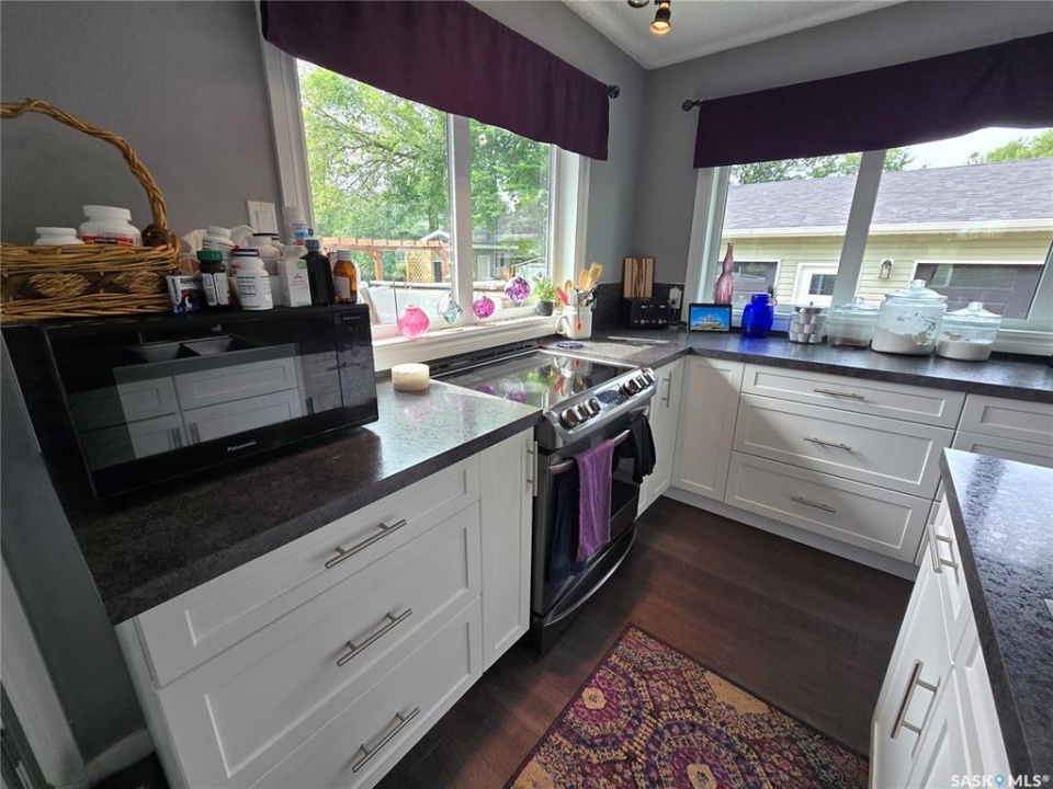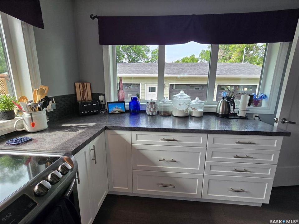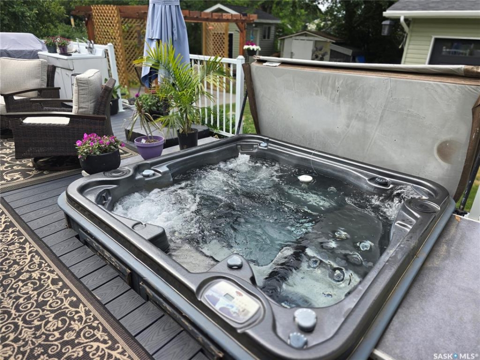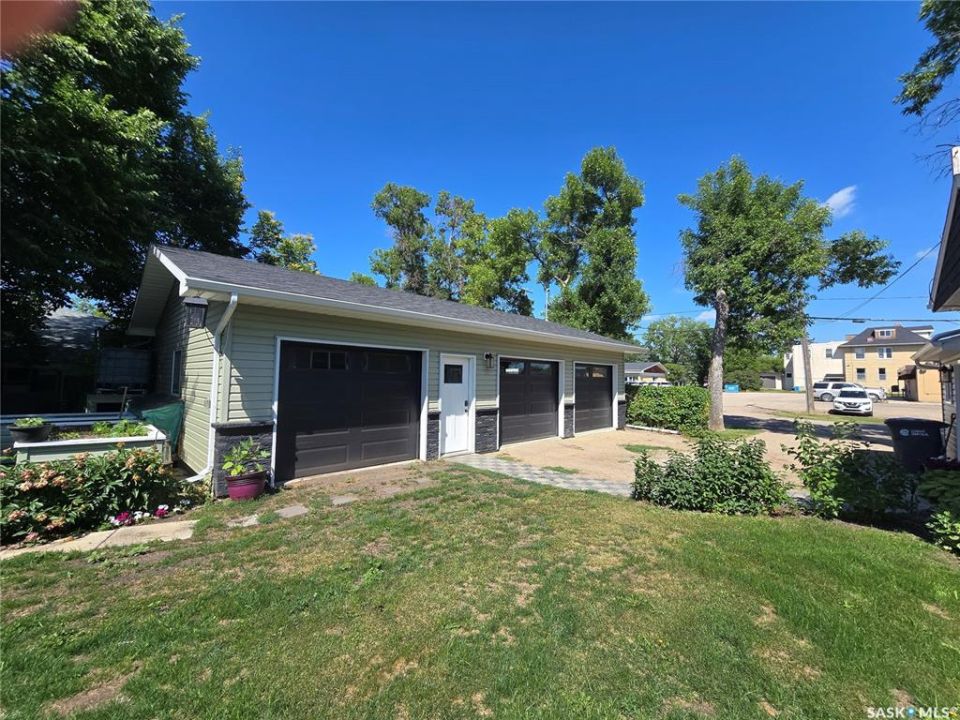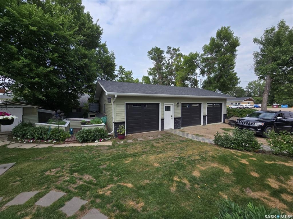 Energy Efficient Home--- 4 Garage Property---Good location--- Private yard---Renovated and Modern---Basement Suite! Want to hear more? Situated in a great progressive town of Grenfell, you will find this complete package. Built in 1957 (1270 SQ FT) with an addition in 1985 and major main floor and basement renos in 2014 and 2019 there is not any thing needed here but YOU! Main floor offers an open layout with hardwood floors (2020)throughout living space. Love the unique and airy kitchen with lots of natural light from the north and west. Check out the newer deck (composite) out the back with 6 man Artic Spa hot tub and a private area overlooking the beautiful yard. Back inside the home , enjoy the large living room and dining room. Primary room is spacious , also with laundry and dual closets that provide organizers. Across the hall the second bedroom , just painted a beautiful blue. 4 piece bathroom has been renovated with tile tub surround and new vanity. Major updates to include; NEW (2019) 3 BAY insulated and heated GARAGE (with barn door to separate 1 bay for workshop),TRIPLE PANES WINDOWS, INSULATION AND VINYL SIDING, HIGH END SHINGLES, HE furnace 2014, WEEPING TILES, 2 BACK FLOW VALVES, PLUS MORE... Basement is currently rented and renter willing to stay. This suite will come furnished with fridge, stove, BI dishwasher, washer, dryer. It is a nice layout as a 1 bedroom rental , updated bathroom with walk in shower, living room , storage room and room/ office area. Back outside... this yard is sure to please for the outdoor person. Garden boxes, gazebo and 3 sheds for storage. Many perennials and shrubs compliments this yard. Pictures don't do this home justice, make time to view this home soon!