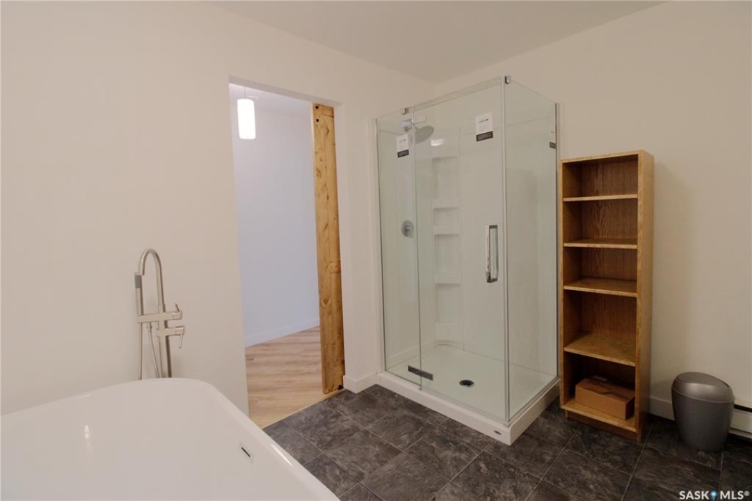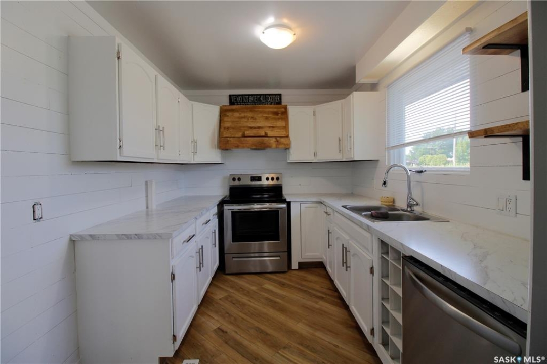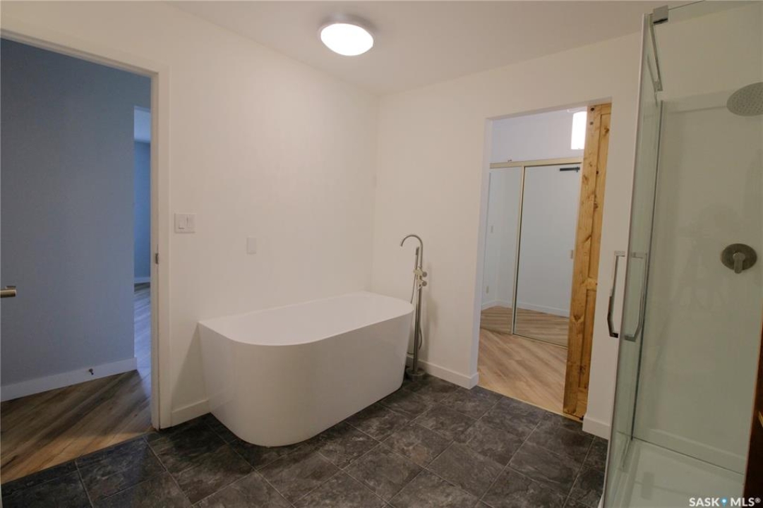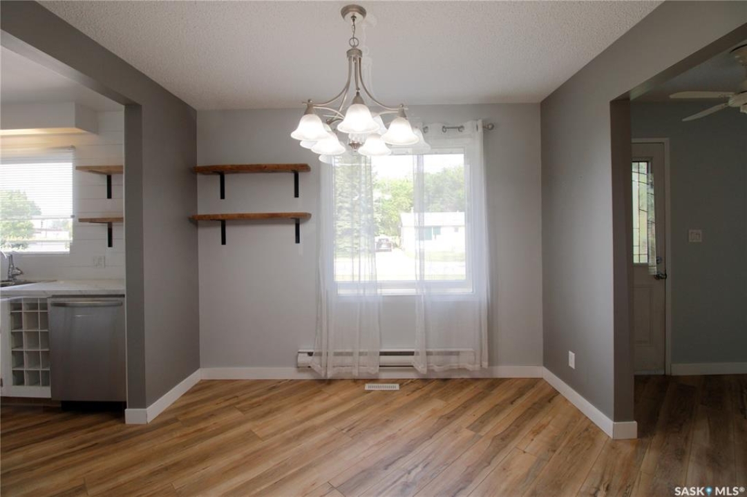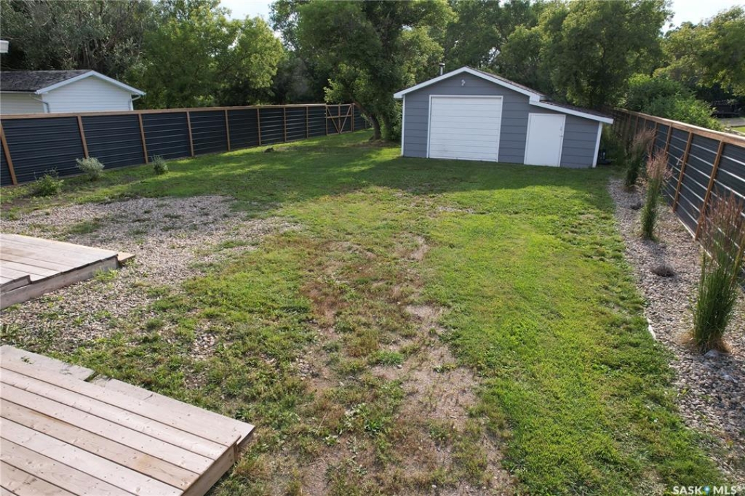 Welcome to this beautifully updated rustic-modern home, ideally situated on the outskirts of town—offering a peaceful setting while keeping amenities within easy reach. The fully fenced yard—surrounded by an 8-ft metal privacy fence—offers both security and seclusion, with a gate that allows you to park anything you want in the backyard. A detached garage with a concrete floor on one side and a shed on the other provides excellent storage and workspace versatility. Inside the house, you'll find a bright, spacious interior that has been tastefully renovated with new flooring, fresh paint, and a stunning, brand-new 4-piece bathroom. This luxurious space includes a stand-up shower and a deep soaker tub—never used and ready for you to enjoy. Originally built in 1975 with 1,040 sq. ft. of living space, the home recently received a thoughtful 320 sq. ft. addition in 2025. This new master bedroom suite features direct access to the backyard and a spacious walk-in closet, providing the perfect retreat at the end of the day. Functionality meets convenience with a dedicated laundry room and mudroom/porch off the side entrance, complete with a walkout deck to the backyard—perfect for entertaining or relaxing outdoors. In the laundry room, the first closed door provides access to the partial basement, where you'll find the furnace, water heater, and upgraded 200-amp panel. Additionally, behind the cabinet in the laundry room, there's existing plumbing where a sink used to be—offering the potential to easily reinstall one if desired. This property is ideal for animal lovers, first-time homebuyers, or those looking to downsize from farm life while still enjoying a large, manageable yard. Low-maintenance living and a touch of country charm make this a perfect blend of comfort and space. Don't miss out—book your showing today and contact the agent of your choice to make this inviting home yours!