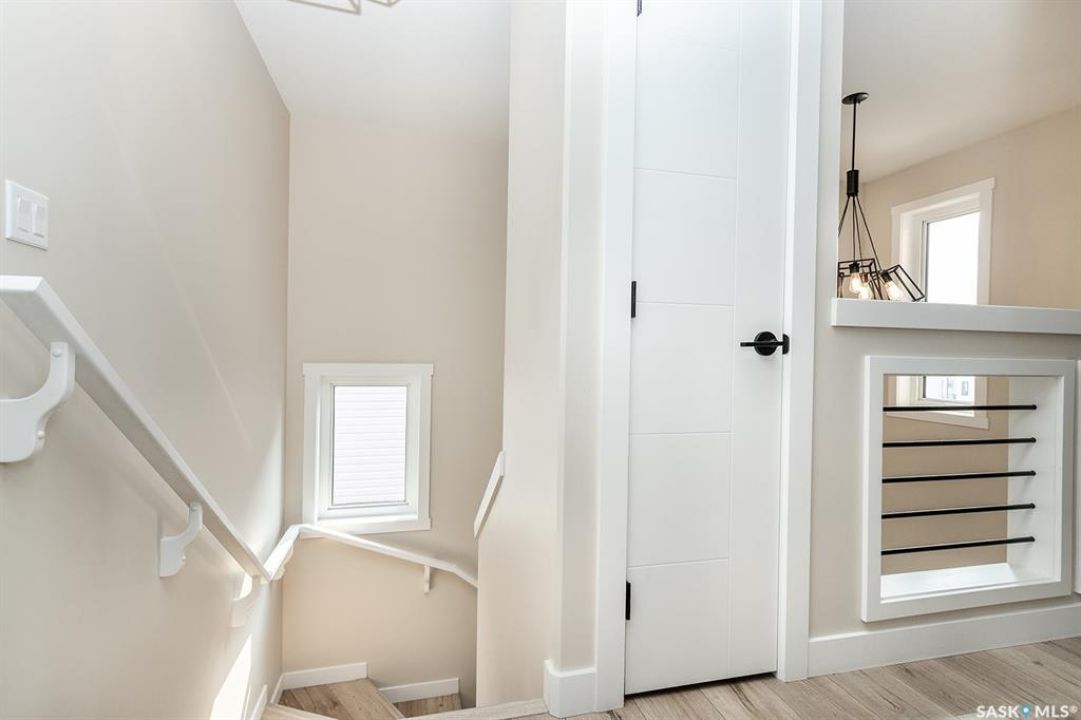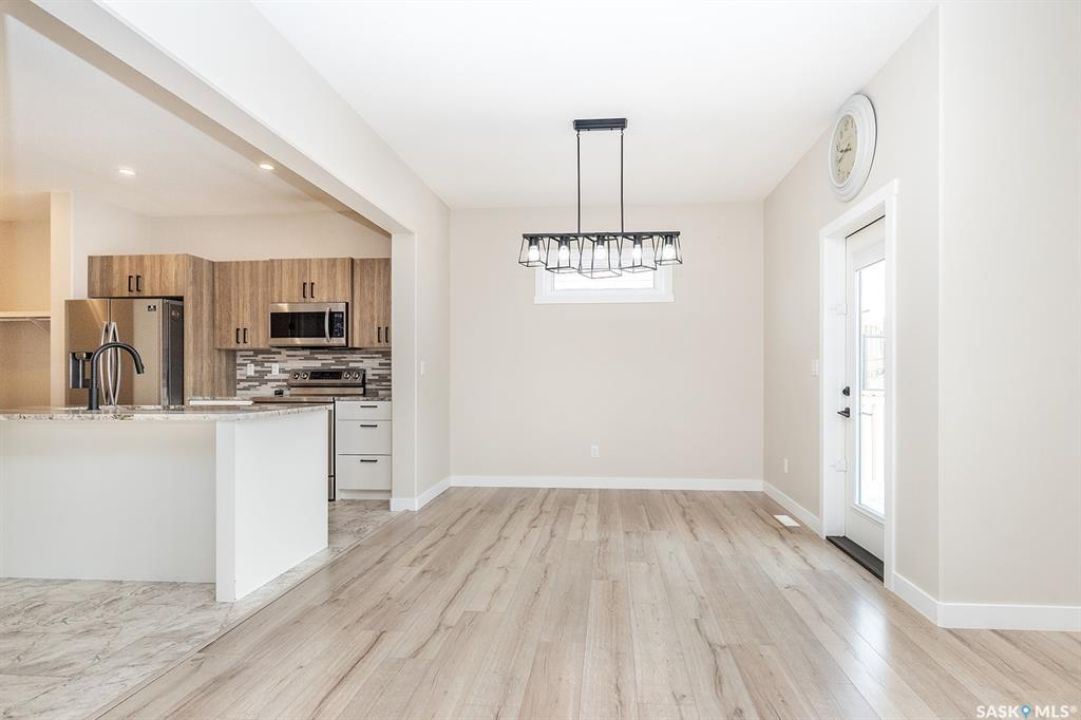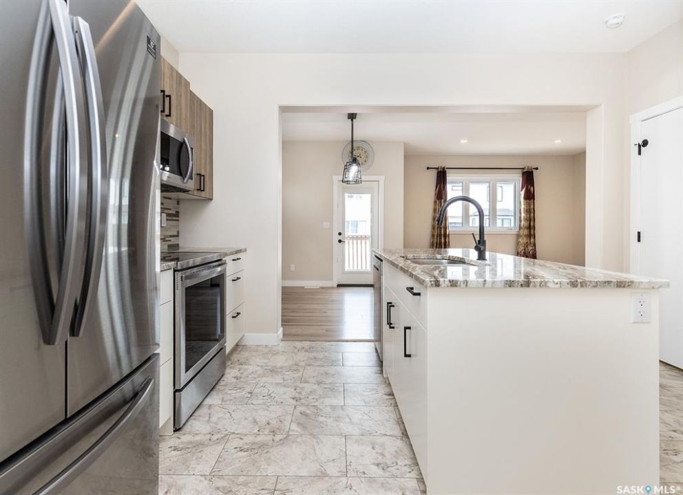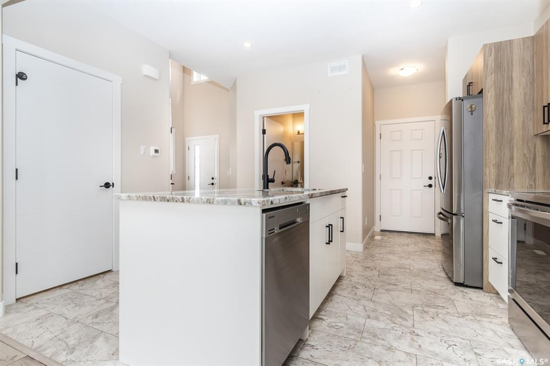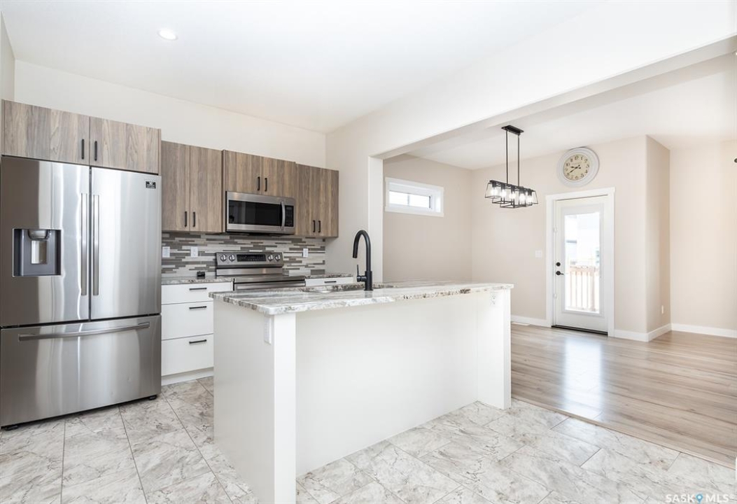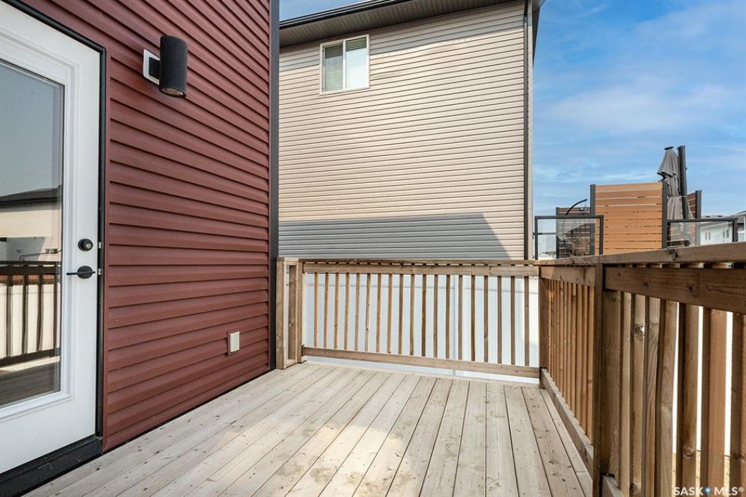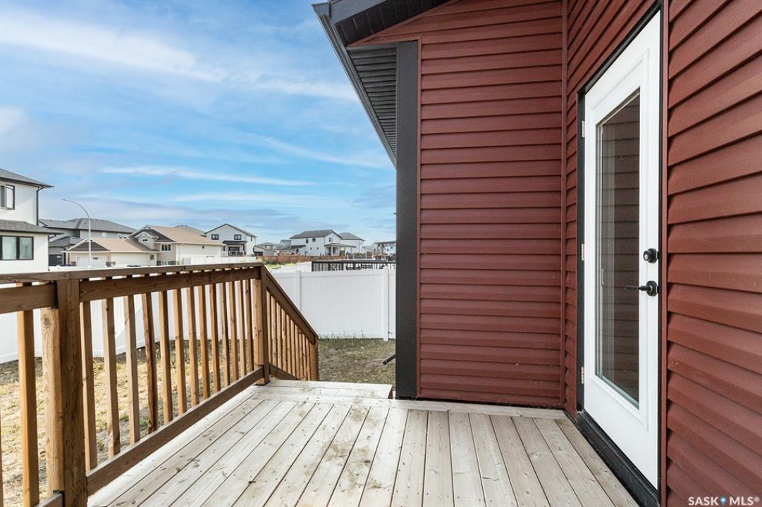 Welcome to this stunning 1,640 sq. ft. two-storey home located in the desirable Aspen Ridge neighbourhood of Saskatoon. Built in 2020, this modern home offers thoughtful design, quality finishes, and a layout perfect for growing families or anyone seeking stylish, functional living. Step into a large, bright foyer that greets you with soaring ceilings open to the second level. The main floor features a spacious family room, a convenient 2-piece powder room, and a beautiful kitchen with granite countertops, a center island with built-in sink and dishwasher, and nearly new stainless steel appliances. The open-concept layout makes entertaining a breeze while offering plenty of room for everyday life. Upstairs, you'll find 3 large bedrooms and a bonus room that overlooks the main floor, ideal for a home office, playroom, or lounge area. The primary suite includes a 3-piece ensuite and his-and-hers closets. The second-floor laundry adds extra convenience, right where you need it most. The fully developed basement offers even more living space with a cozy family room, additional bedroom, and a full bathroom with a stand-up shower. The only carpet in the home is in the basement, making the rest of the house ideal for pet owners or allergy sufferers, thanks to upgraded laminate flooring throughout. Outside, the xeriscape front yard is low maintenance and stylish, complete with rocks and a finished concrete driveway. The fully fenced backyard (with durable white vinyl fencing and back alley access) features a deck and offers great potential for you to add your personal touch — plus the added bonus of extra parking off the alley. Located in one of Saskatoon's newest and most vibrant communities, this home combines comfort, practicality, and modern charm. Don't miss your chance to make it yours!