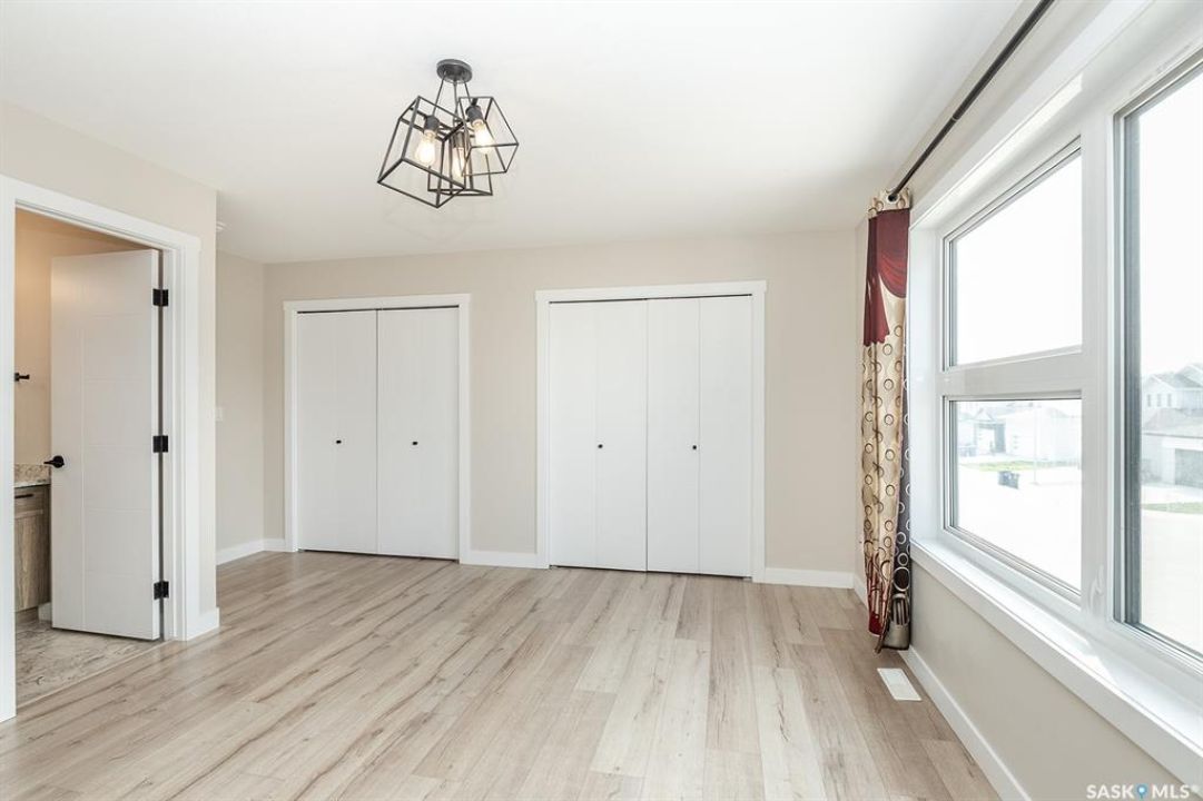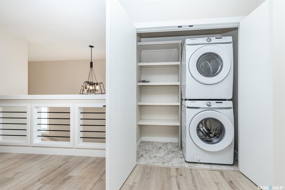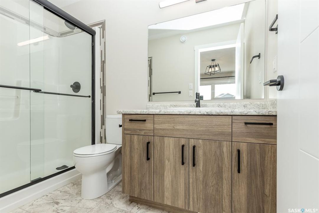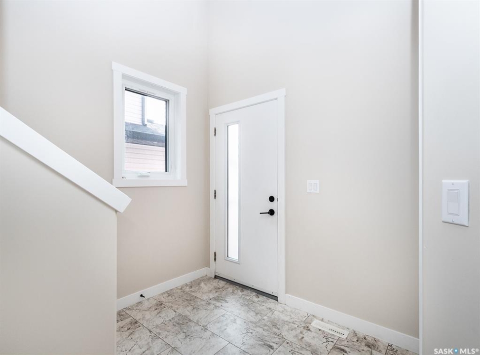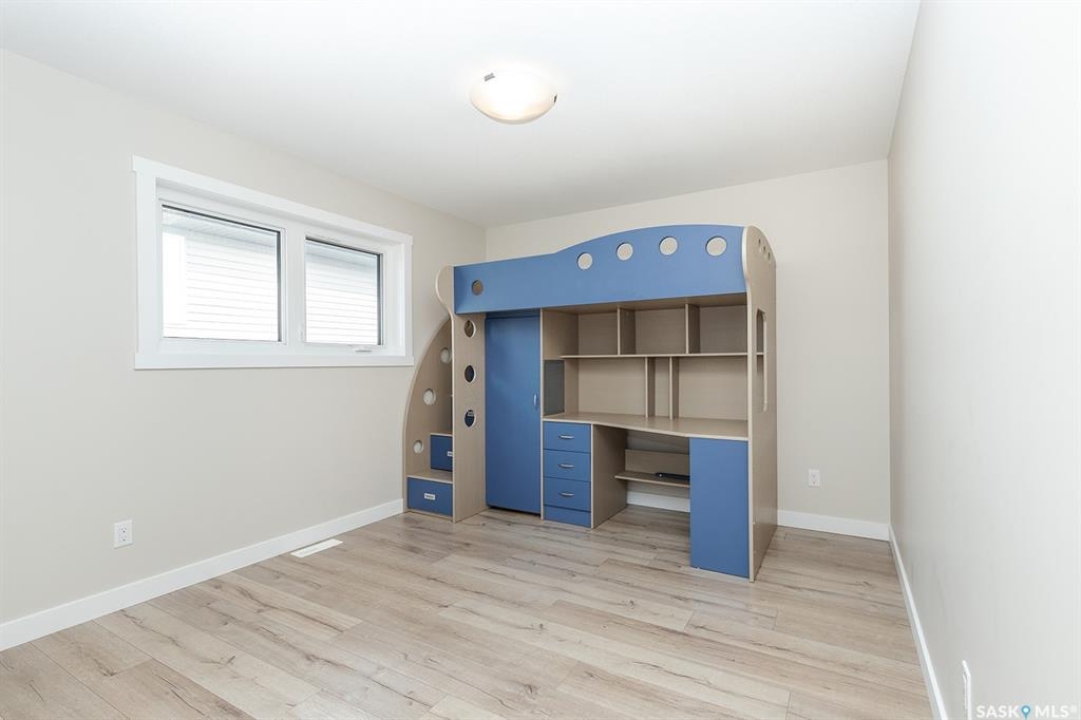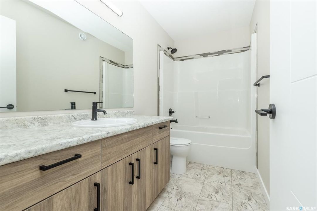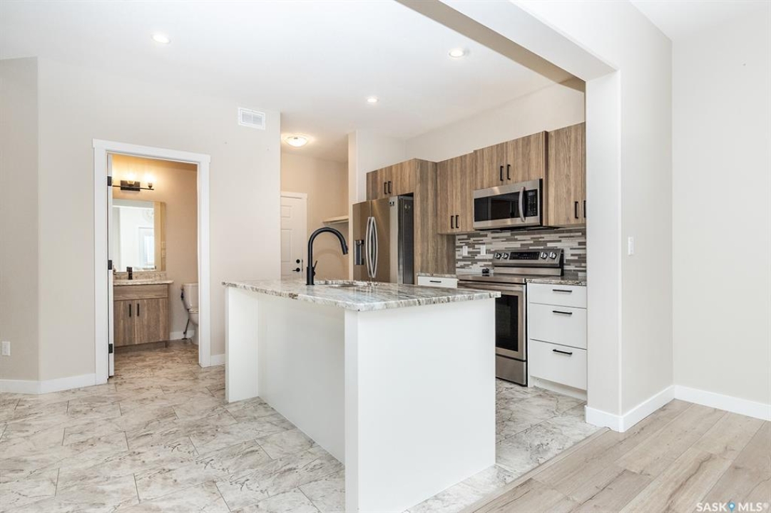 Welcome to this stunning 1,640 sq. ft. two-storey home located in the desirable Aspen Ridge neighbourhood of Saskatoon. Built in 2020, this modern home offers thoughtful design, quality finishes, and a layout perfect for growing families or anyone seeking stylish, functional living. Step into a large, bright foyer that greets you with soaring ceilings open to the second level. The main floor features a spacious family room, a convenient 2-piece powder room, and a beautiful kitchen with granite countertops, a center island with built-in sink and dishwasher, and nearly new stainless steel appliances. The open-concept layout makes entertaining a breeze while offering plenty of room for everyday life. Upstairs, you'll find 3 large bedrooms and a bonus room that overlooks the main floor, ideal for a home office, playroom, or lounge area. The primary suite includes a 3-piece ensuite and his-and-hers closets. The second-floor laundry adds extra convenience, right where you need it most. The fully developed basement offers even more living space with a cozy family room, additional bedroom, and a full bathroom with a stand-up shower. The only carpet in the home is in the basement, making the rest of the house ideal for pet owners or allergy sufferers, thanks to upgraded laminate flooring throughout. Outside, the xeriscape front yard is low maintenance and stylish, complete with rocks and a finished concrete driveway. The fully fenced backyard (with durable white vinyl fencing and back alley access) features a deck and offers great potential for you to add your personal touch — plus the added bonus of extra parking off the alley. Located in one of Saskatoon's newest and most vibrant communities, this home combines comfort, practicality, and modern charm. Don't miss your chance to make it yours!