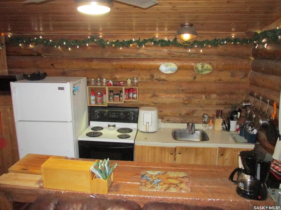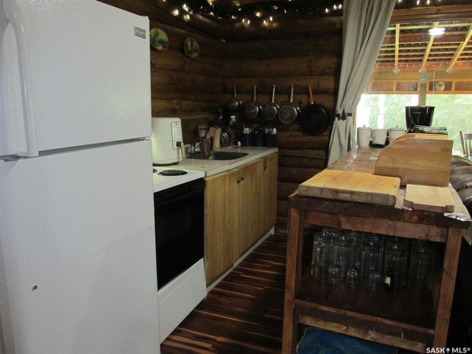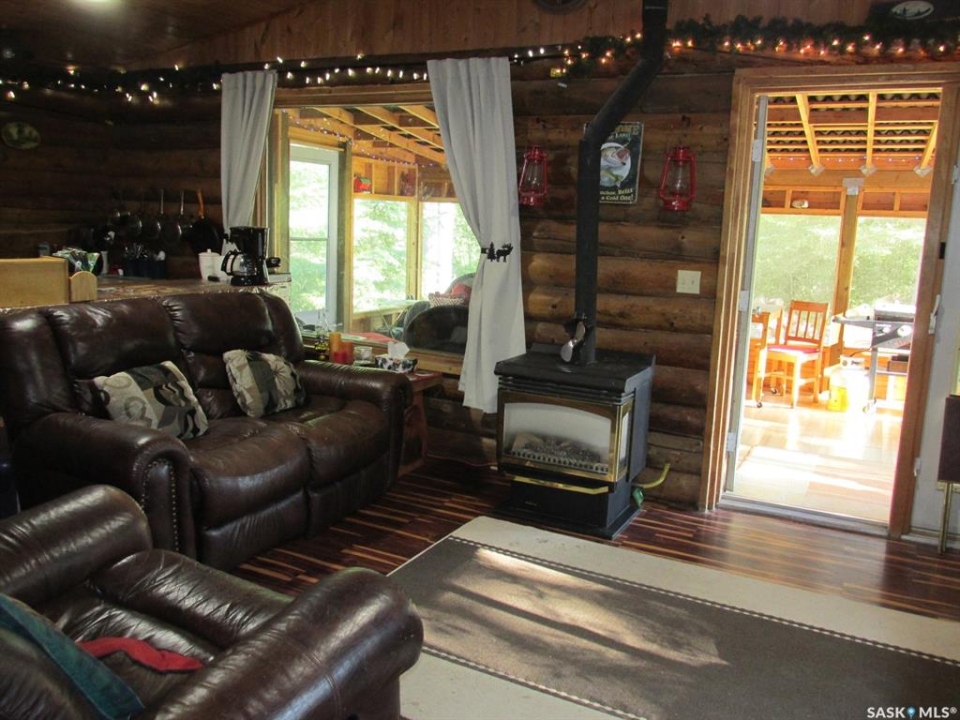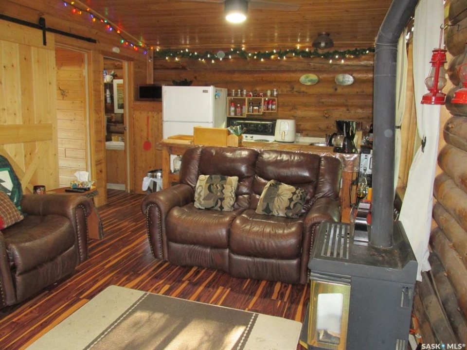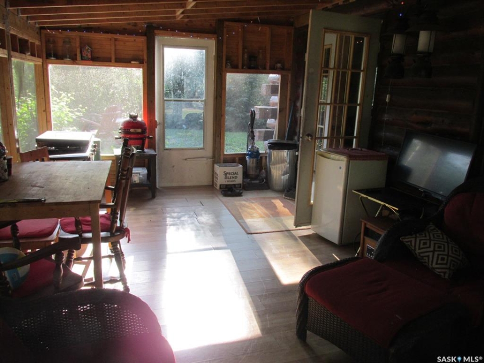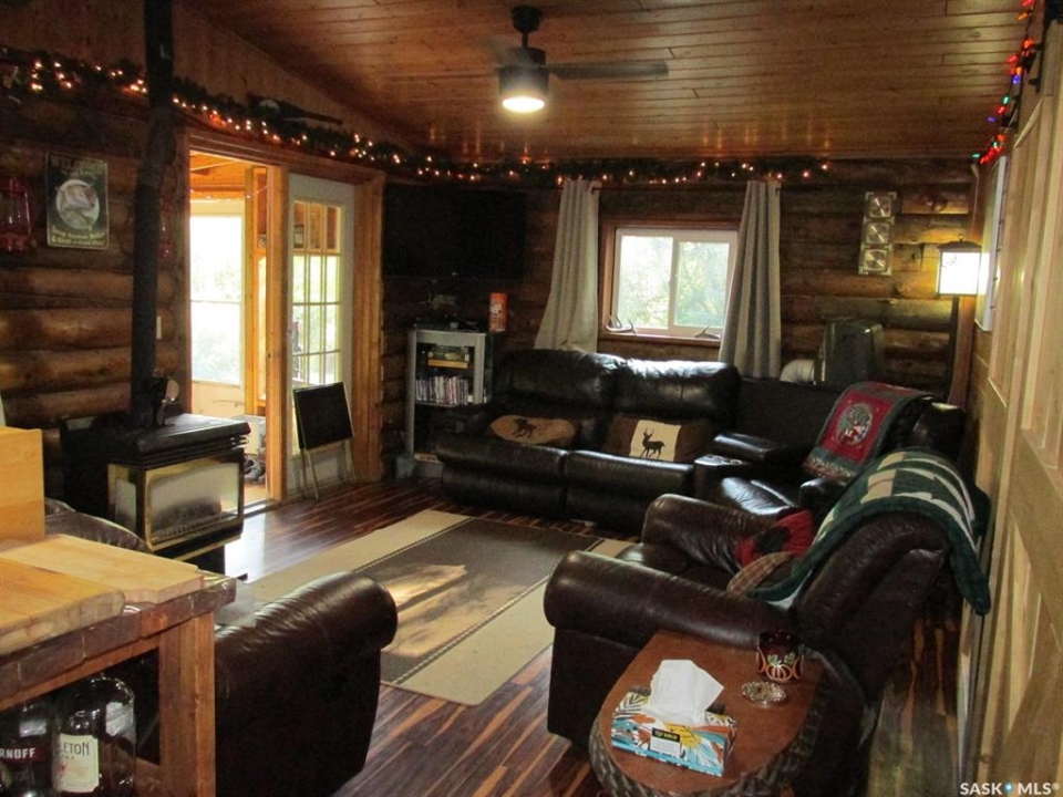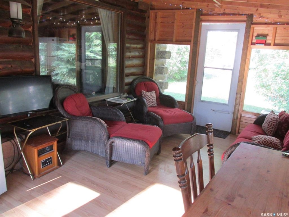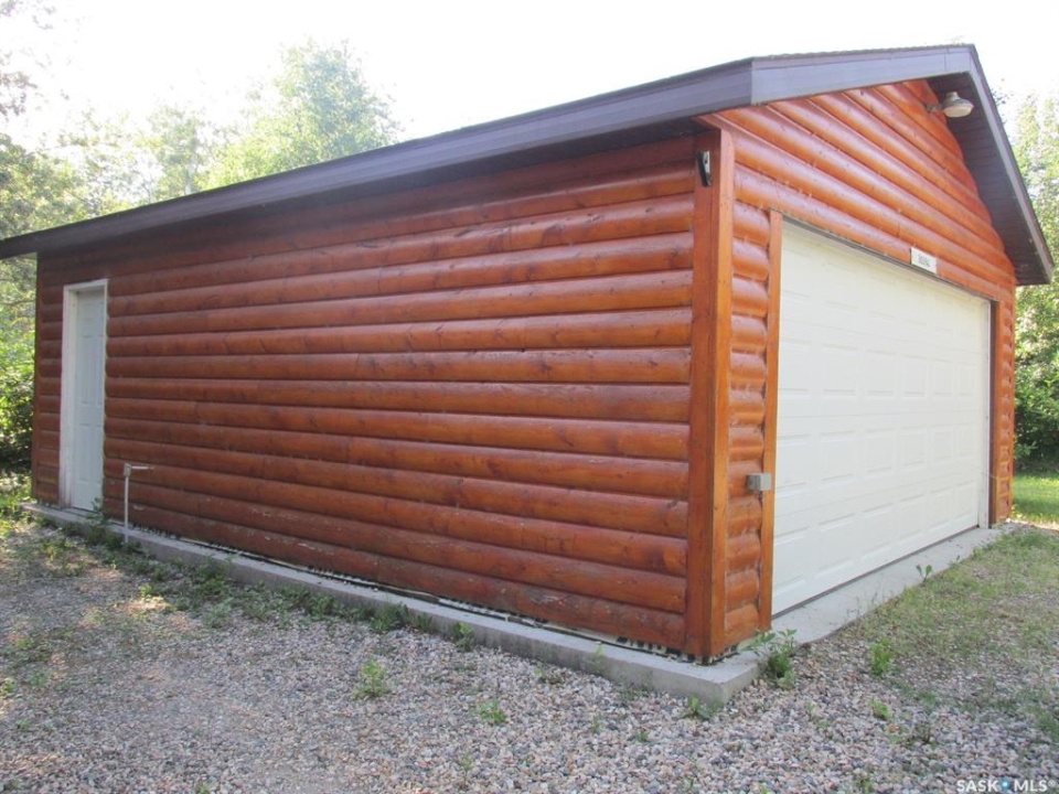If you're looking for a peaceful recreational escape, look no further! Welcome to Cabin #6 at Scots Landing, a charming 528 sq ft, 4-season log cabin nestled just minutes from Nipawin and steps from the Saskatchewan River and only a few kilometers to the snowmobile trails, and a short 11 km drive to the golf course. Built in 1995, this cozy retreat offers the perfect blend of rustic charm and modern convenience. It features 2 bedrooms 1 bath, with the natural gas stove heat and backup electric heat. There is a great covered screened-in three-season deck with removable windows. Some of the improvements include: a double car garage (built in 2013), cabin roof re-shingled (approx. 8 years ago), cabin and garage recently stained, cabin chinked for improved insulation, lot cleared and leveled for a fire pit area. There is a condo association private boat launch and docks. Most furnishings in the cabin are included in the sale. Phone today!