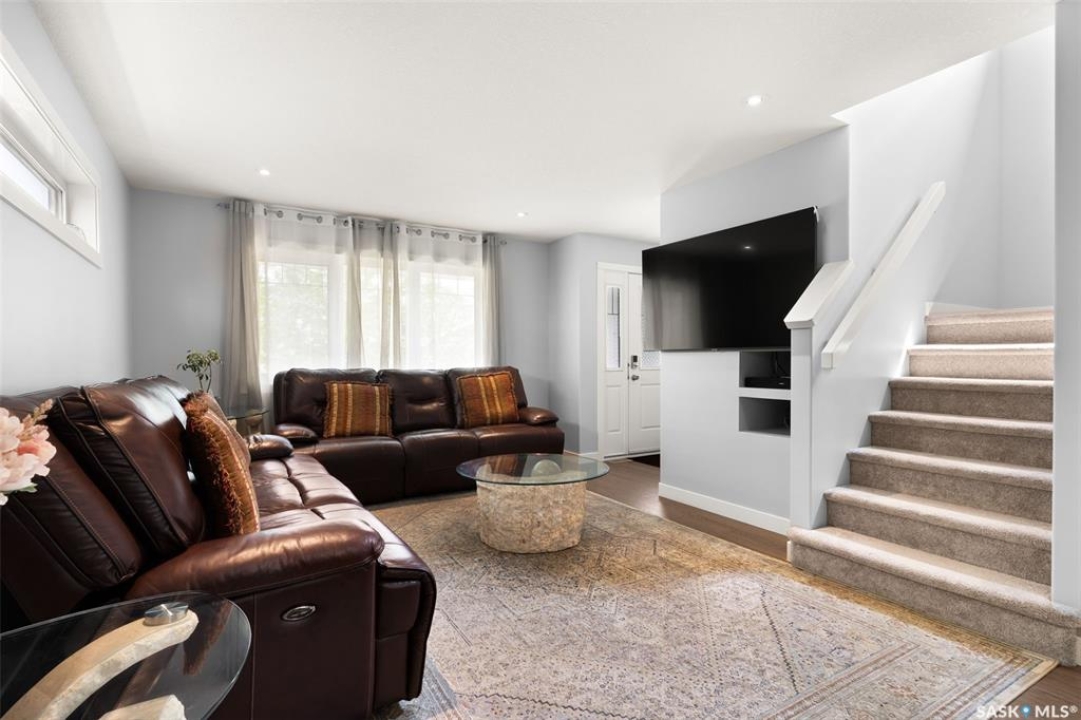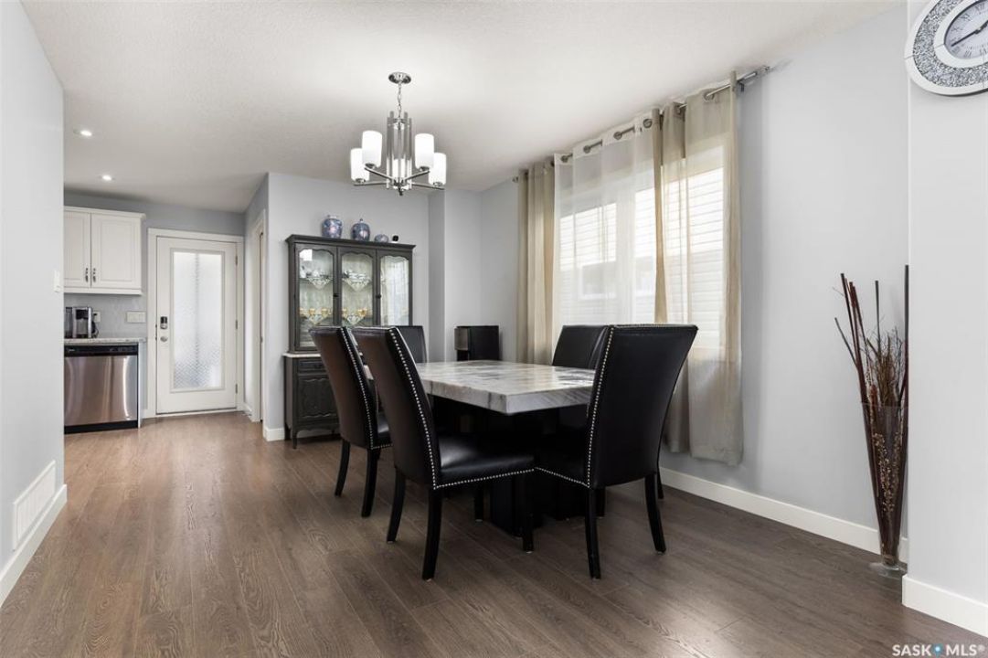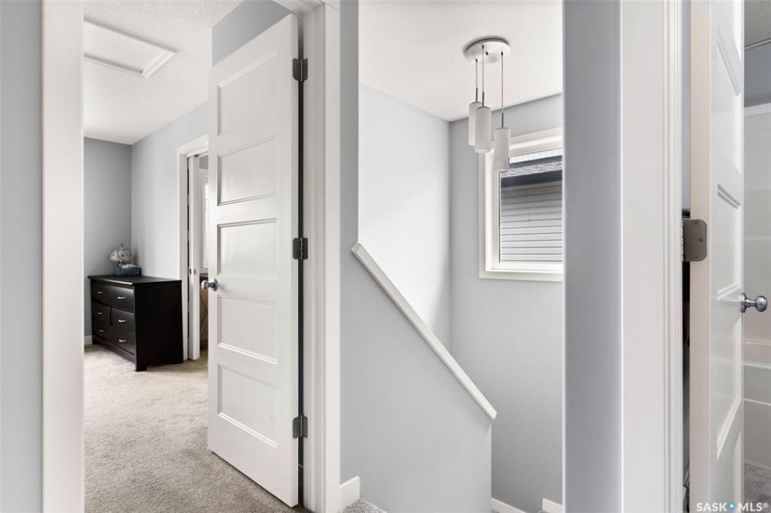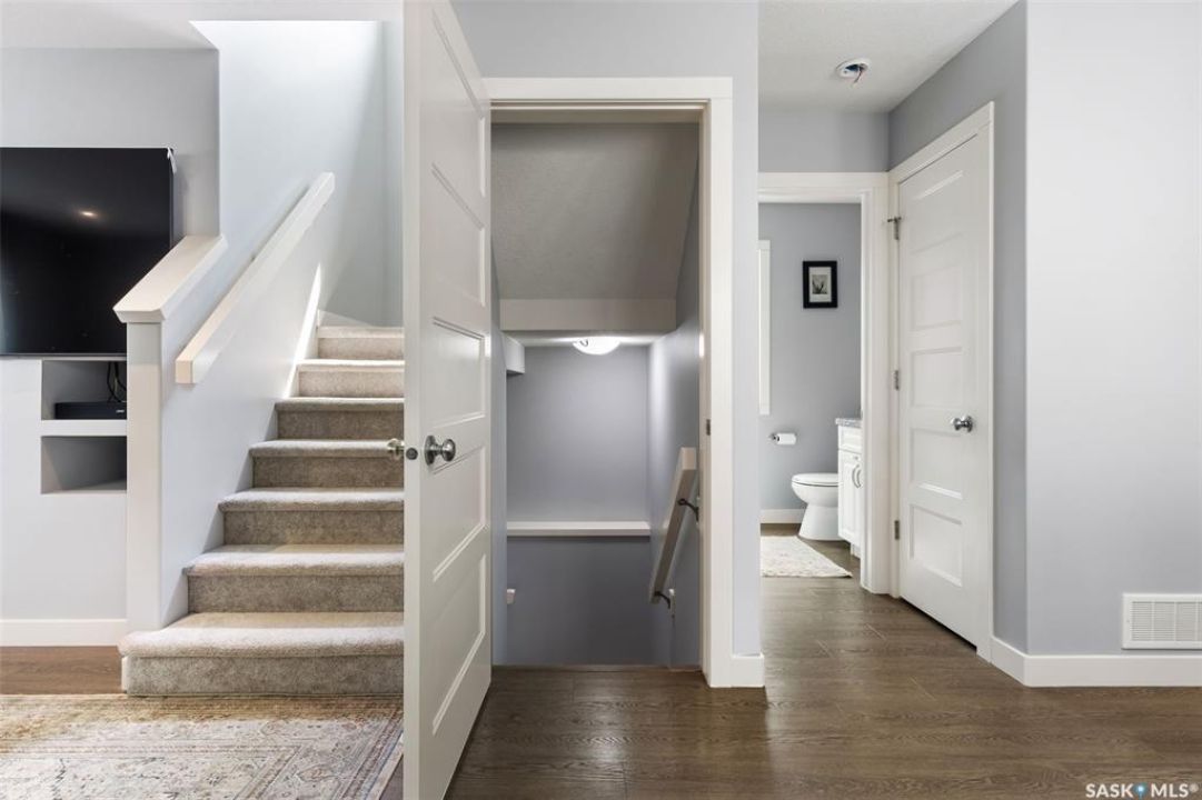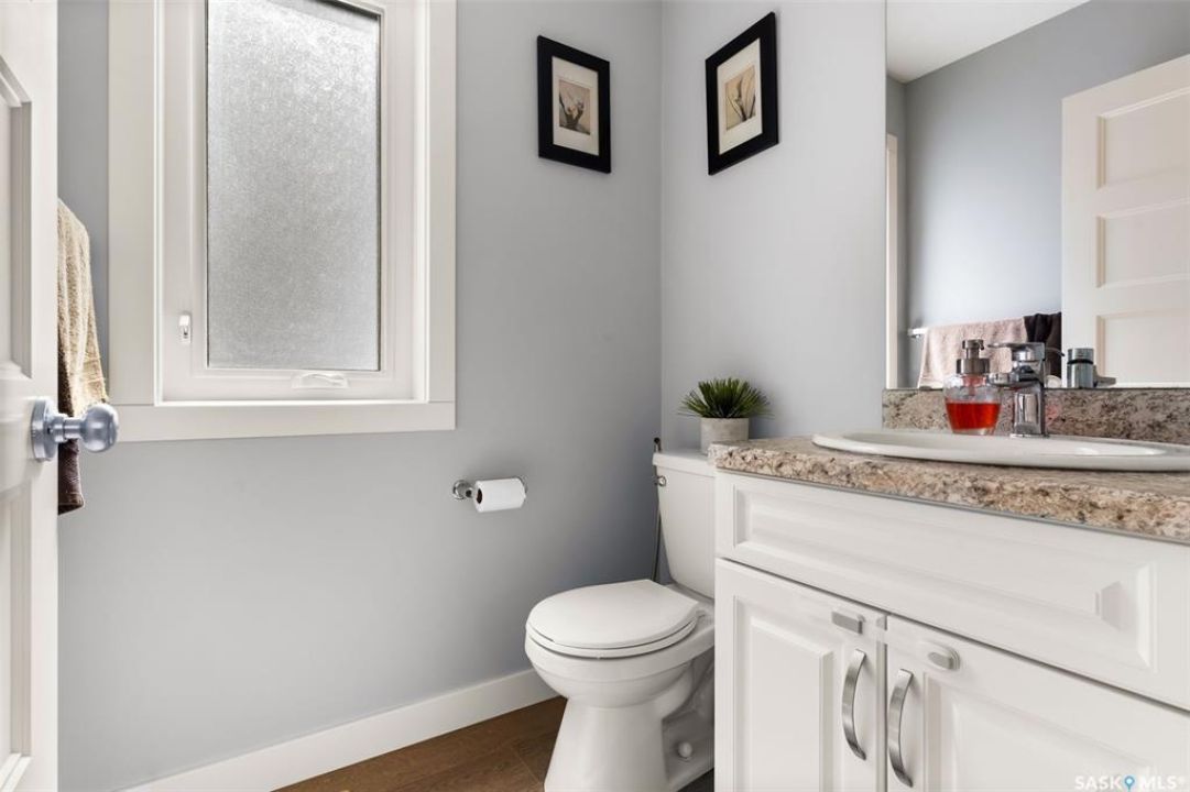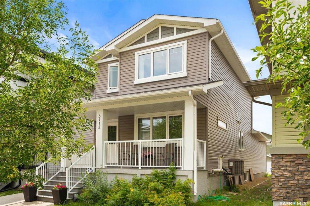 Welcome to 5113 Crane Crescent, a beautifully maintained two-storey home located in the heart of Harbour Landing—one of Regina's most vibrant and family-friendly communities. This 1,454 sq ft residence exudes pride of ownership, offering a bright, stylish, and functional layout perfect for modern living. The main floor features rich laminate flooring, a welcoming living room with a custom built-in TV nook, front-facing windows that provide a warm, natural glow, and a convenient 2-piece powder room. The dining area is ideal for entertaining and flows seamlessly into a crisp white kitchen complete with stainless steel appliances, tile backsplash, walk-in pantry, and plenty of cabinetry for storage. Upstairs, you'll find three comfortable bedrooms, including a spacious primary suite with a walk-in closet and 4-piece ensuite, as well as a full main bath and second-floor laundry for added convenience. The fully developed basement expands your living space with a cozy rec room, a fourth bedroom, and another 4-piece bathroom—perfect for guests or extended family. Outside, enjoy a private covered deck—an ideal retreat for relaxing evenings. Completing this exceptional property is a double attached garage and a prime location near parks, pathways, schools, and all south-end amenities—making this home the perfect blend of comfort, style, and convenience.