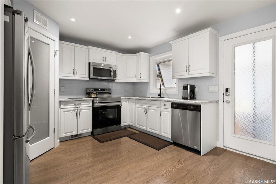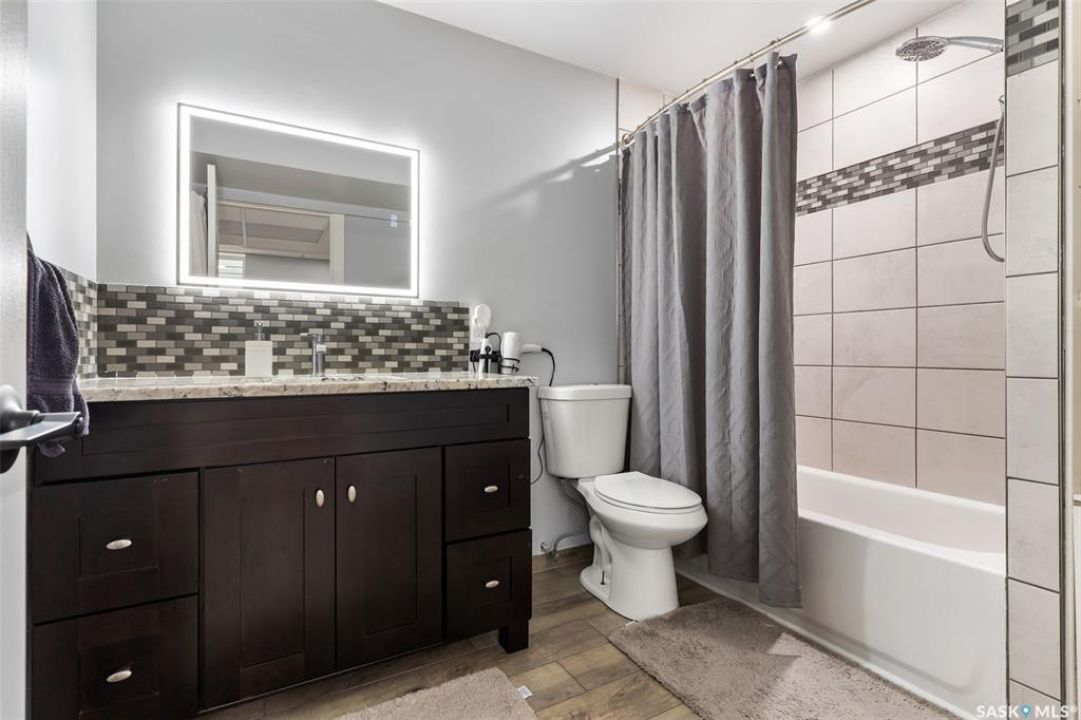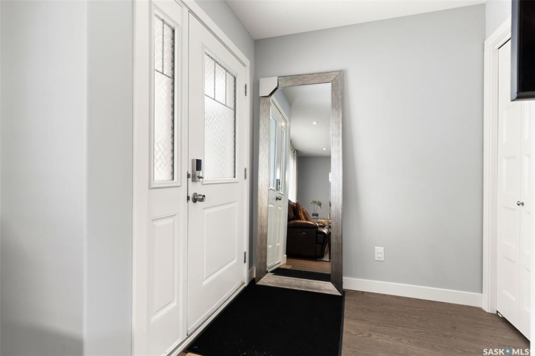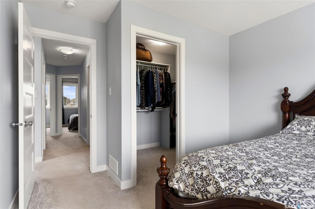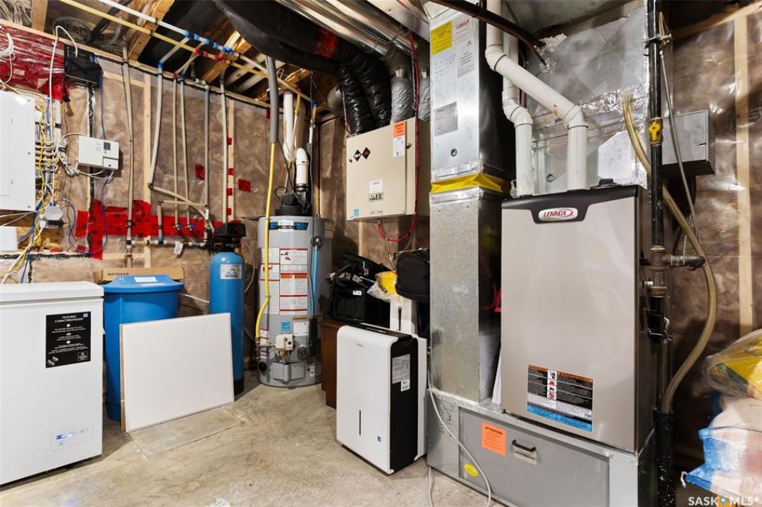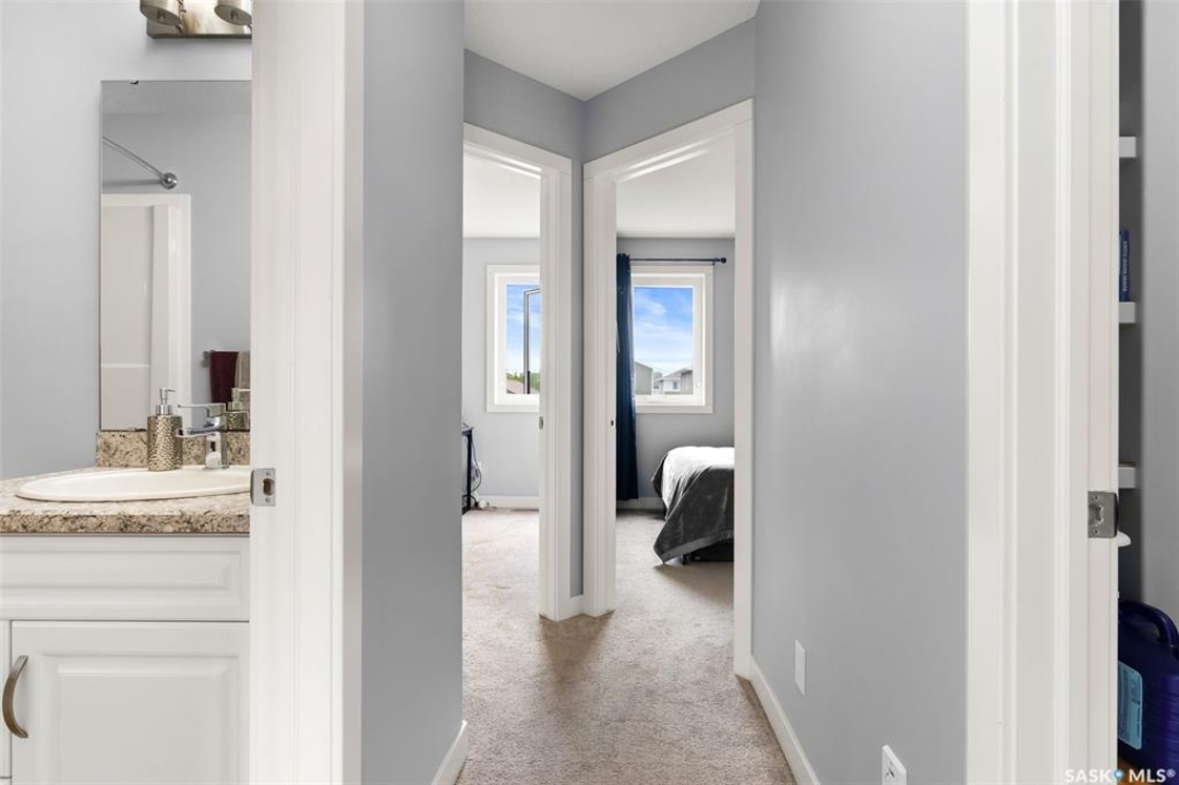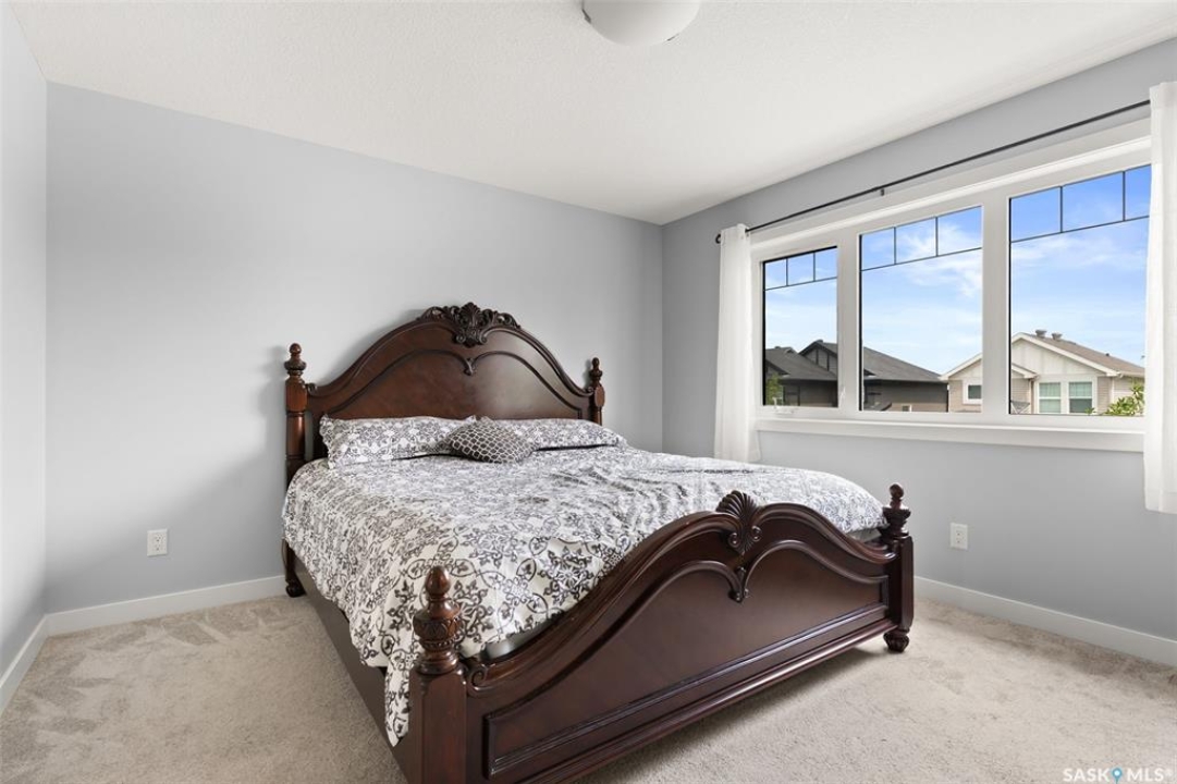 Welcome to 5113 Crane Crescent, a beautifully maintained two-storey home located in the heart of Harbour Landing—one of Regina's most vibrant and family-friendly communities. This 1,454 sq ft residence exudes pride of ownership, offering a bright, stylish, and functional layout perfect for modern living. The main floor features rich laminate flooring, a welcoming living room with a custom built-in TV nook, front-facing windows that provide a warm, natural glow, and a convenient 2-piece powder room. The dining area is ideal for entertaining and flows seamlessly into a crisp white kitchen complete with stainless steel appliances, tile backsplash, walk-in pantry, and plenty of cabinetry for storage. Upstairs, you'll find three comfortable bedrooms, including a spacious primary suite with a walk-in closet and 4-piece ensuite, as well as a full main bath and second-floor laundry for added convenience. The fully developed basement expands your living space with a cozy rec room, a fourth bedroom, and another 4-piece bathroom—perfect for guests or extended family. Outside, enjoy a private covered deck—an ideal retreat for relaxing evenings. Completing this exceptional property is a double attached garage and a prime location near parks, pathways, schools, and all south-end amenities—making this home the perfect blend of comfort, style, and convenience.