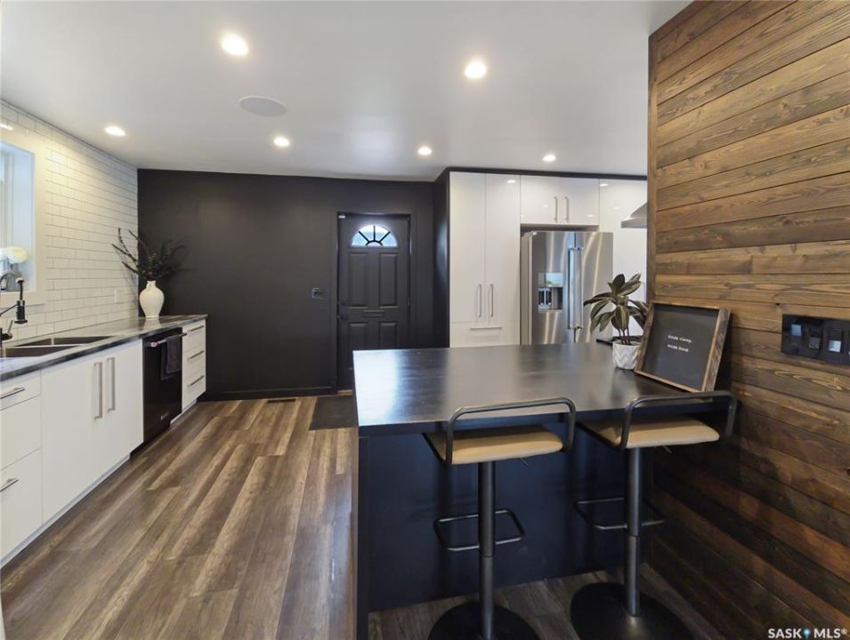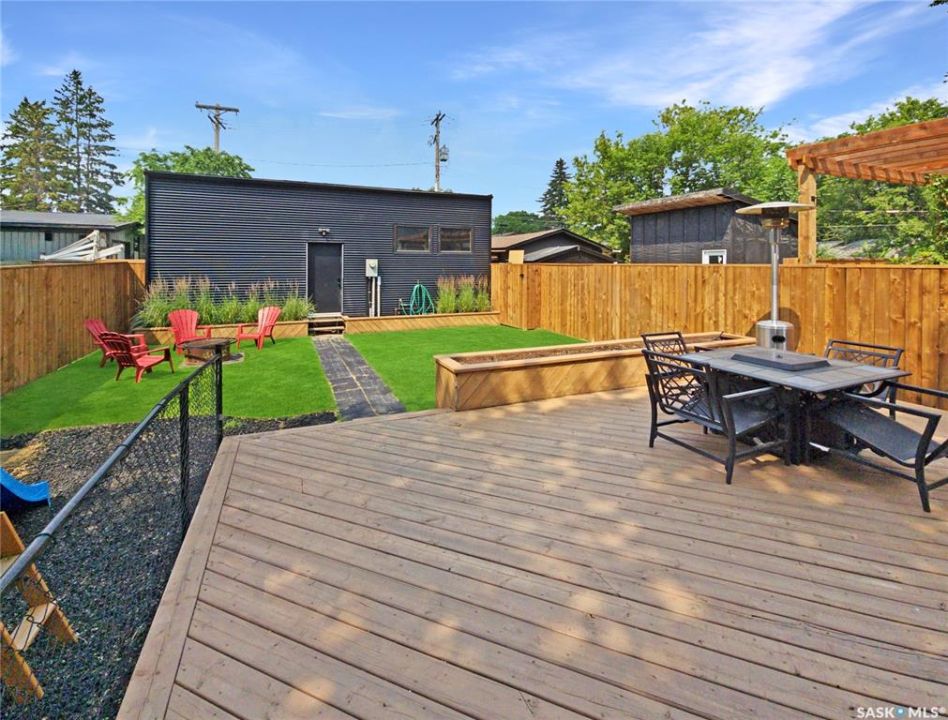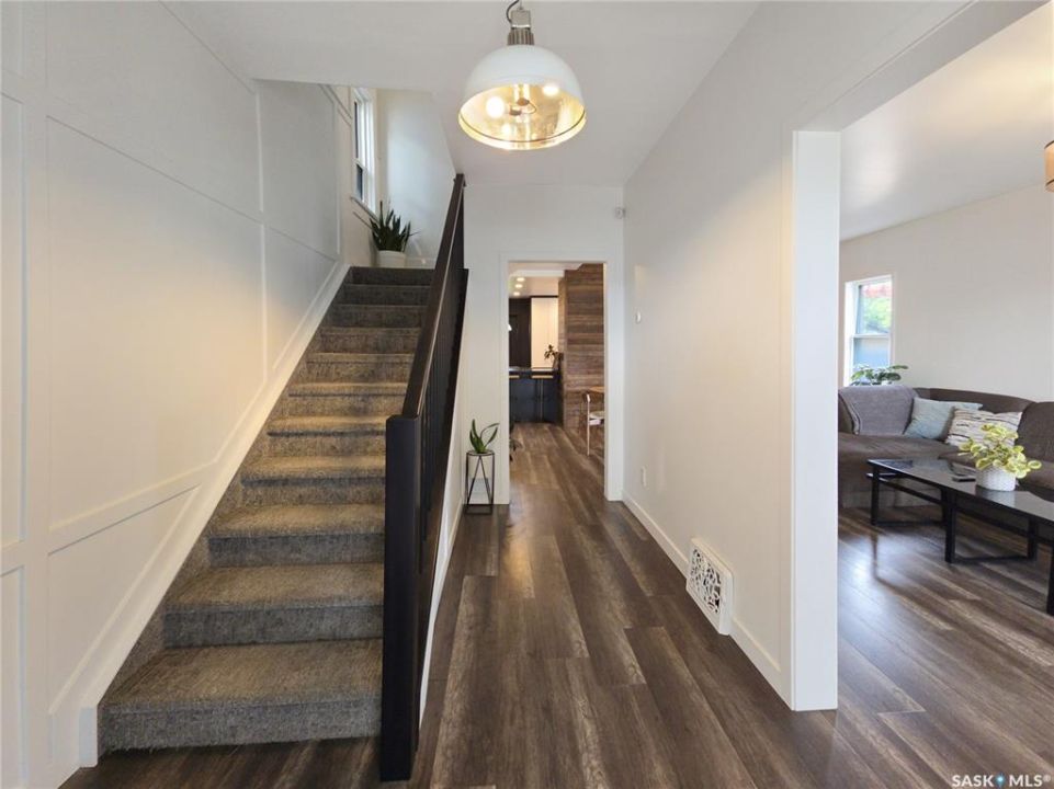 Opportunity awaits with this 3-bedroom home updated home that includes a blend of character, and modern finishes and style. The main floor has been made into a very open concept and the kitchen features custom cabinets with lots of countertop space, pull out drawers, storage features, and modern appliances including a gas range. The front den is bathed in natural light. On the second floor, there are 3 bedrooms. The primary bedroom has a large walk-in closet with custom shelves and closet organizers. One of the other bedrooms also is plumbed and wired for a 2nd floor laundry. The bathroom on this level features a double sink vanity, heated tiled floor and a large walk-in shower. The basement has been finished up with carpet flooring, counters with service for a wet-bar, and a laundry area. The Sellers have made significant upgrades including Water heater, furnace, electrical rewired, plumbing, flooring, paint, kitchen, appliances, and deck in 2020. Bathroom in 2021, basement finished 2022, and shingles on south side of house roof 2023. The large, detached garage is only a few years old. It is heated, and has lots of room for storage, 3 vehicles and a workspace area. This garage is great for the tradesperson or someone with trailers as it is positioned well to make it pretty easy to back a trailer into the garage. Construction of the new city-centre was announced saying the new school will include new child care spaces and serve students in the Riversdale, King George and Pleasant Hill neighbourhoods. The school is set to open in 2027. If you've been dreaming of a home with style and space, a large, finished garage, and a back-yard great for entertaining, this might the home for you. There is lots of potential and value in this home.