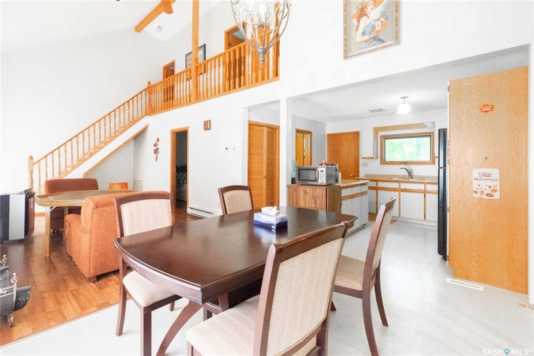 4 SEASON LAKE HOME with 22' x 26' double detached garage. 1470 sq ft 3 bedroom, 2 bathroom 1 & 1/2 Story. Open concept living room, kitchen, family room and 2nd floor loft. Living room features a wood burning fireplace, large family room gives you a lot more main floor living space. One of the bedrooms is conveniently located on the main floor, great for seniors or those who prefer a bedroom on the main floor. Half bath off kitchen and good size dining area, fridge, stove and microwave included. 2 bedrooms and 4 piece bathroom upstairs, 2nd floor hallway overlooks the main floor living space. Basement open for development, or could be used for storage, Water cistern in basement. High efficient furnace and central air installed June of 2025. Large lot offers plenty of space for outdoor living, Deck off kitchen, patio off living room, lots of room for an RV. Saskatchewan beach offers a main beach, private boat launch, sailing club and there's even a disc golf course. Only 5 minutes to Silton, 35 minutes to Regina and less then 30 minutes to Rowan's Ravine Provincial Park. Make this lake life dream your reality.