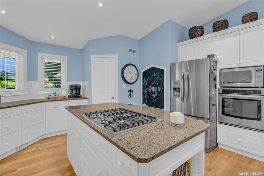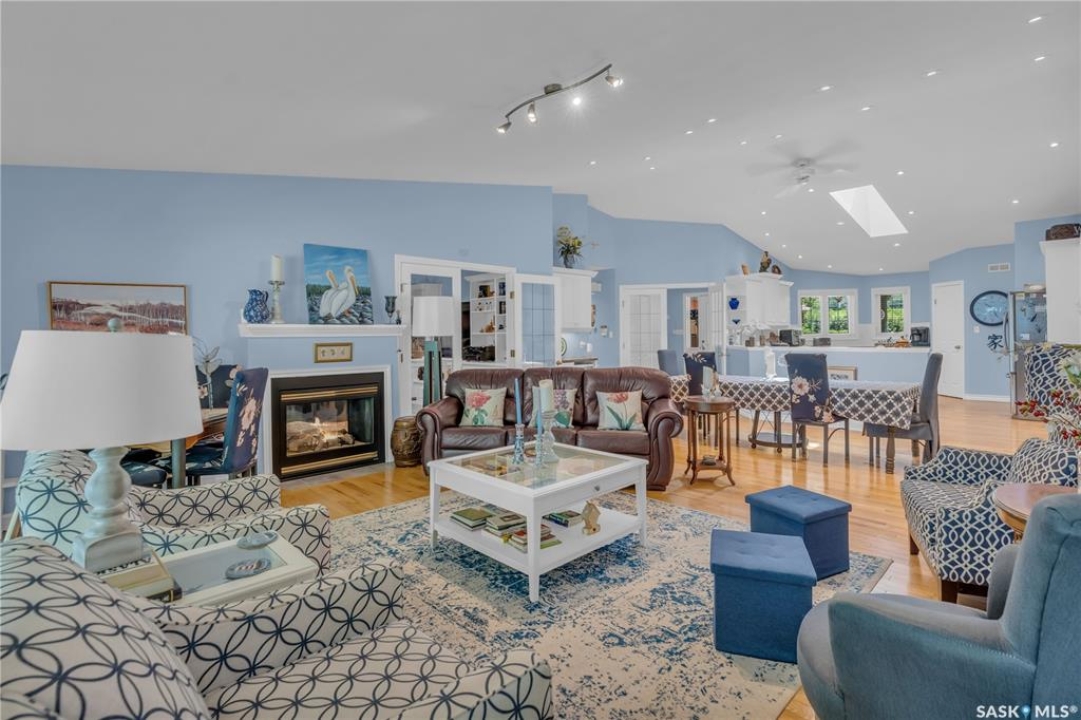 Welcome to 430 Poplar Drive, a stunning waterfront property located at desirable Katepwa Beach. This well-built, custom 4-bedroom, 2-bathroom home offers 2,300 sq ft of thoughtfully designed living space, vaulted ceilings and an open-concept kitchen and living with double-sided gas fireplace that also warms the cozy den. The spacious master suite includes access to a screened-in sunroom – perfect for enjoying the lake views. Designed with outdoor living in mind, this impressive home features two covered decks, an outdoor kitchen, and a beautiful patio with a built-in gas fire pit. With 60 feet of pristine waterfront and an equally impressive 1,752 sq ft attached garage/shop/boathouse, this property offers the ultimate in function and lifestyle. Ample parking, including room for an RV, makes this an entertainer's dream and a rare opportunity at Katepwa Beach.
