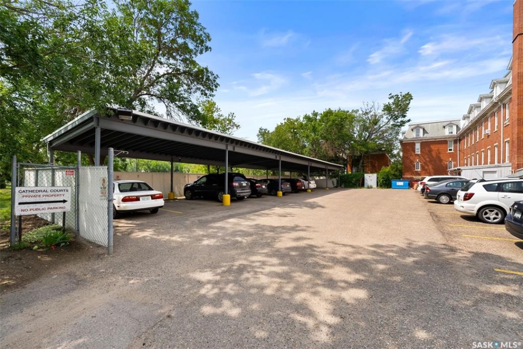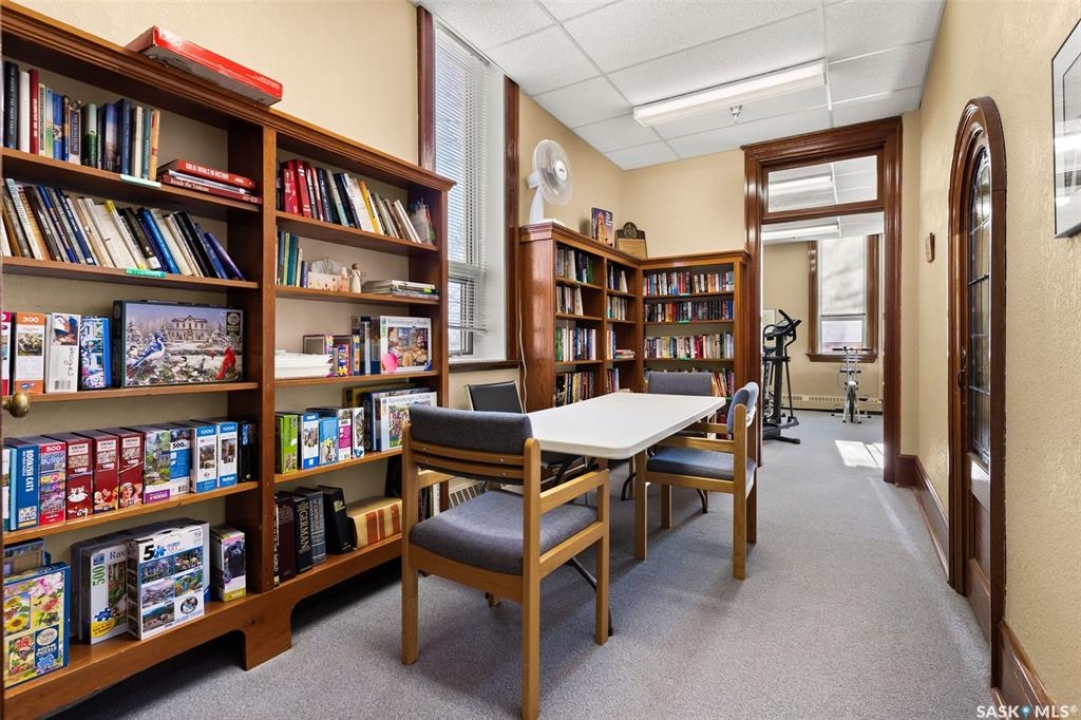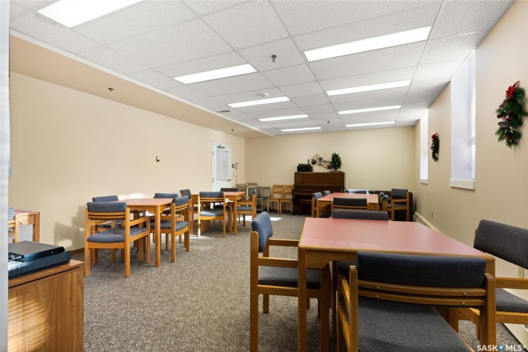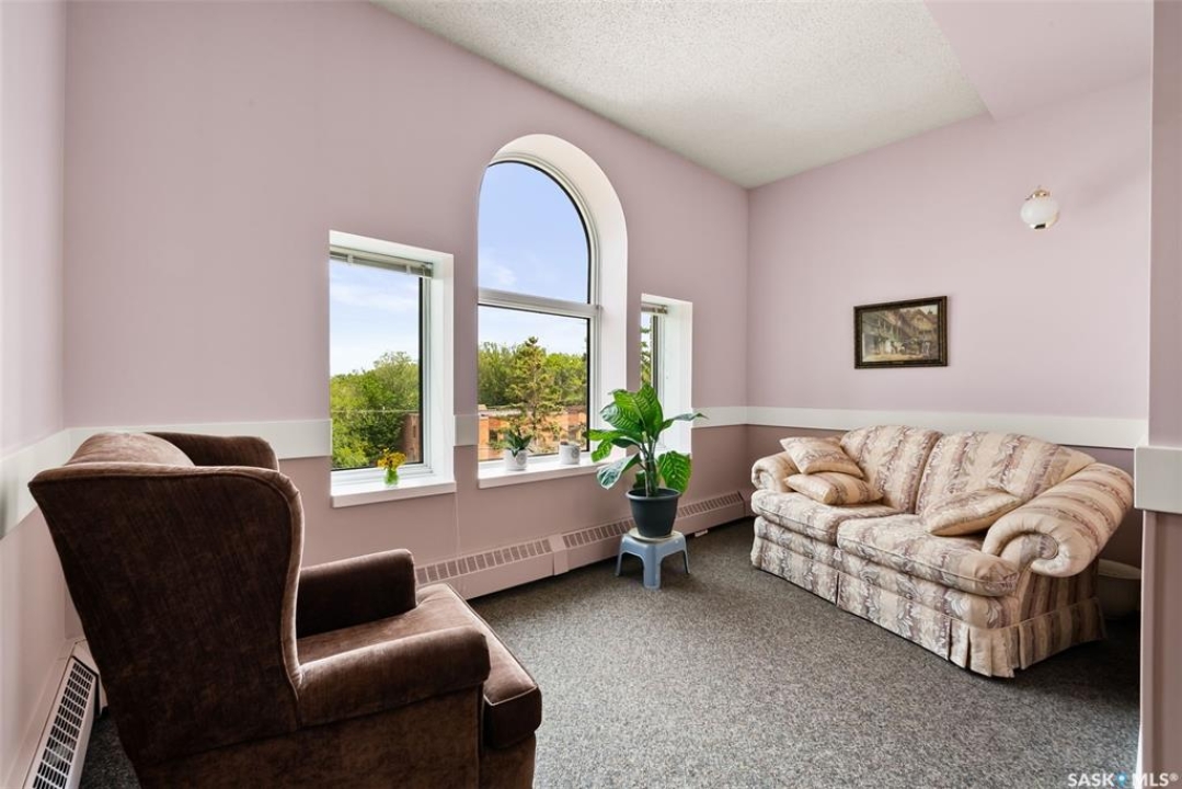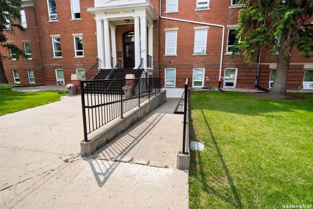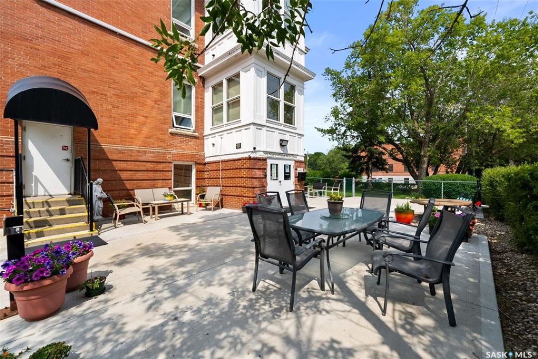 Welcome to Cathedral Courts, a charming and affordable 55+ condo community located in the heart of vibrant Cathedral Village. This beautifully preserved historical building is surrounded by everything you need just steps from your door: locally loved restaurants, cozy coffee shops, bakeries, a full service grocery store, clothing boutiques, and the General Hospital. The Cathedral neighbourhood offers a walkable lifestyle in a community full of character and charm. Inside Cathedral Courts features a welcoming lobby and a host of thoughtfully designed shared spaces. Residents enjoy access to a bright and spacious laundry room, a library and puzzle room, an exercise space, a social lounge with full kitchen, a chapel, and a convenient guest suite for visitors. Outdoor enthusiasts will appreciate the well kept rooftop patio and inviting main floor patio areas, perfect for enjoying fresh air and sunshine with friends. This unit itself offers a neutral, clean decor with large windows that flood the space with natural light. The kitchen includes appliances and a functional layout, while the bedroom feels cozy and comfortable. A bright and clean 4 piece bathroom includes generous storage space. Cathedral Courts offers exceptional value in a secure, well managed building with numerous amenities to support an active and social lifestyle. Condo fees include: heat, water, sewer, garbage, lawn care, snow removal, reserve fund contributions, building insurance, and common area maintenance. The building is fully wheelchair accessible and includes an elevator for added convenience. If you're seeking comfort, community, and walkable convenience in a sought after Regina neighbourhood, this could be the perfect place to call home.