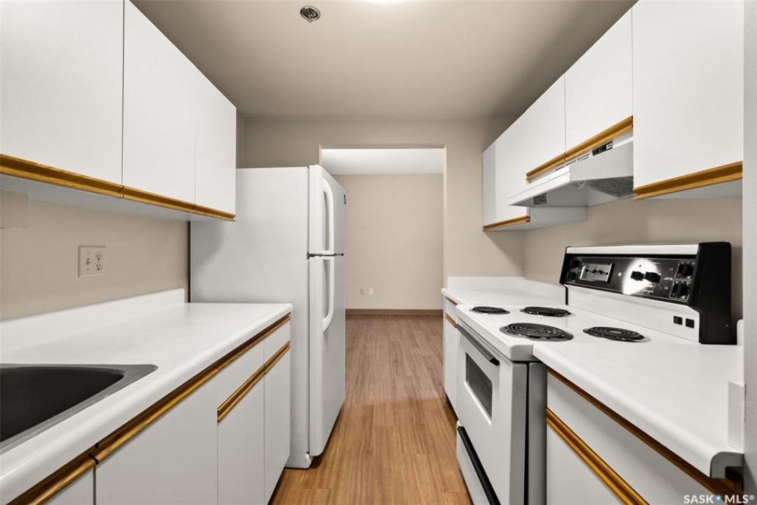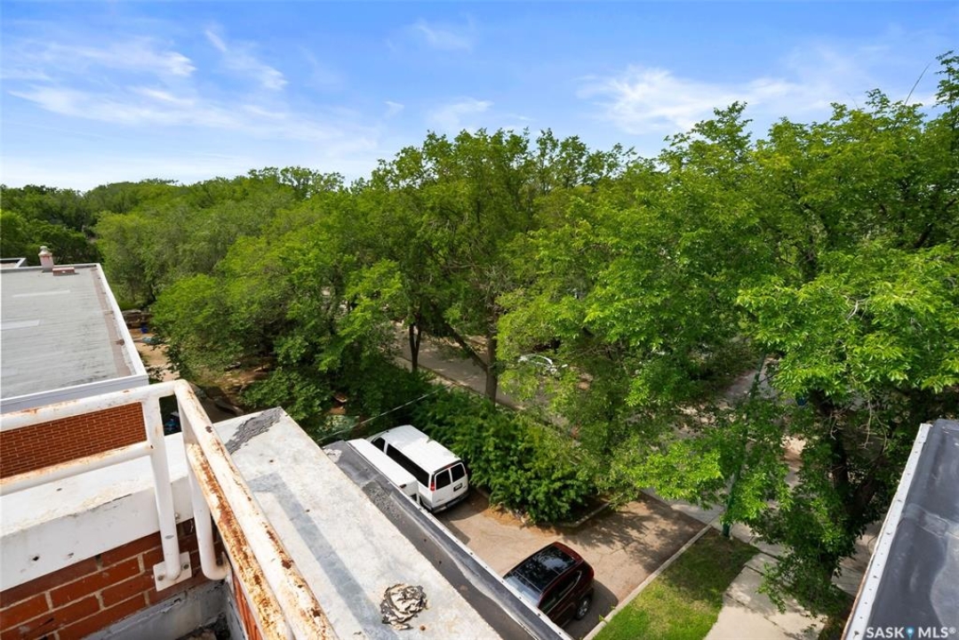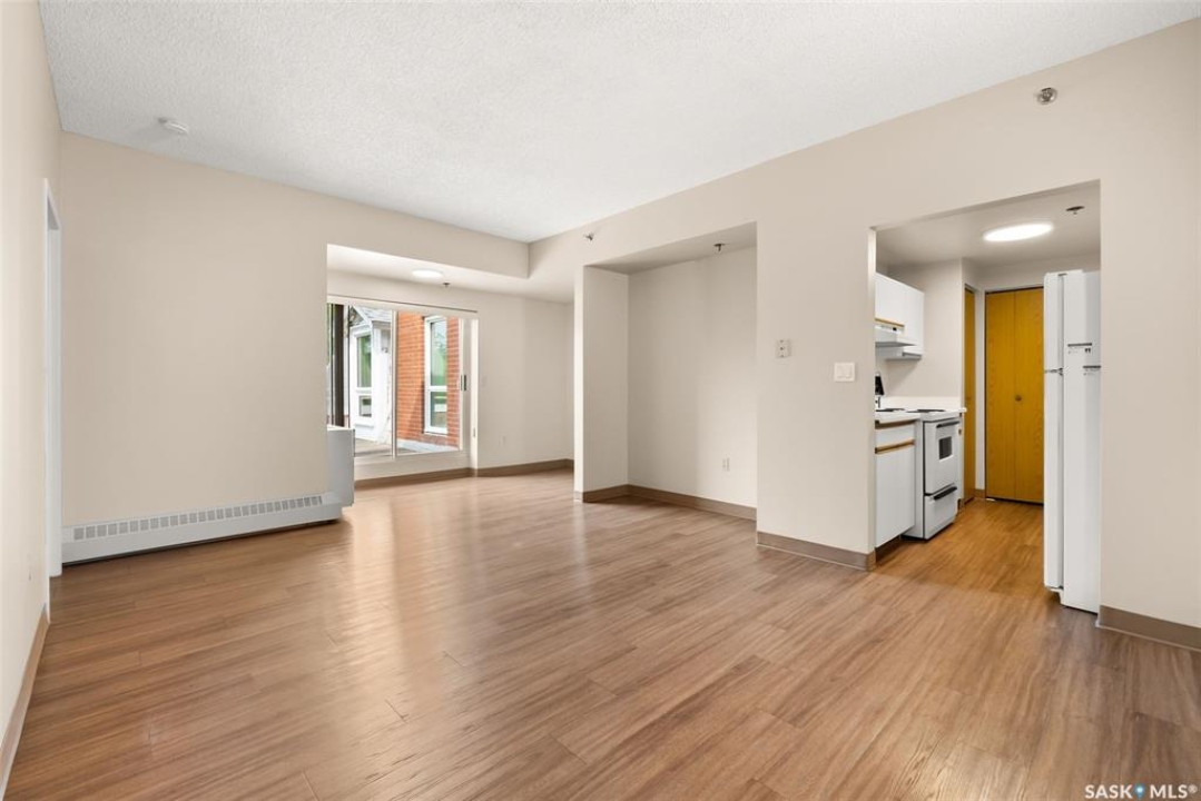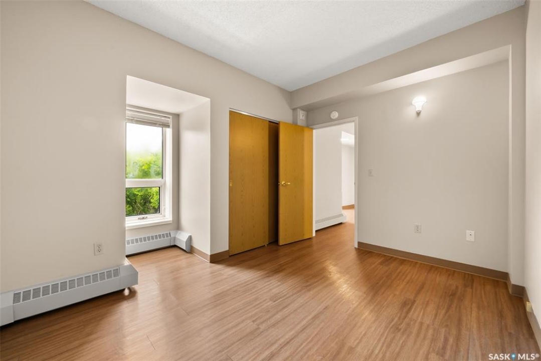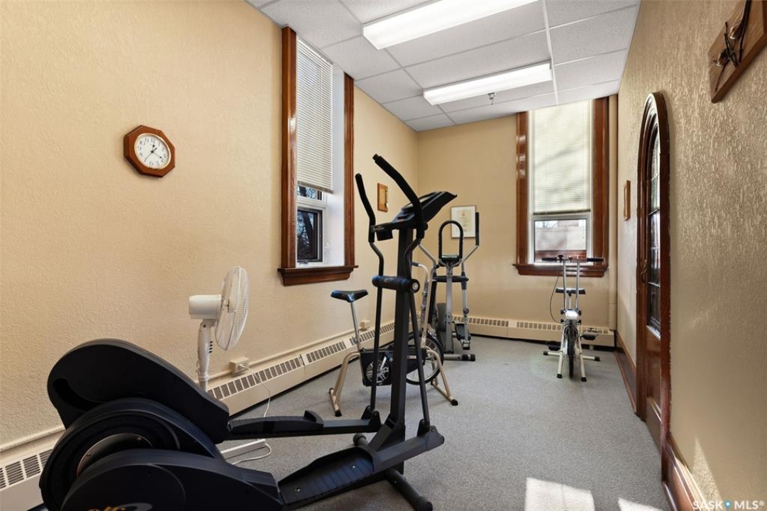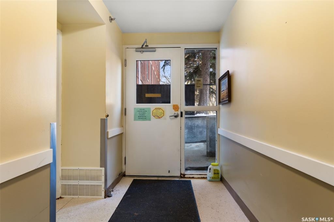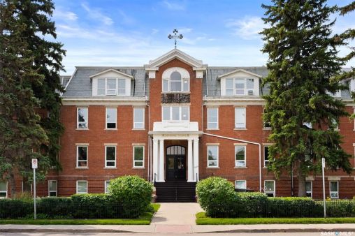 Welcome to Cathedral Courts, a charming and affordable 55+ condo community located in the heart of vibrant Cathedral Village. This beautifully preserved historical building is surrounded by everything you need just steps from your door: locally loved restaurants, cozy coffee shops, bakeries, a full service grocery store, clothing boutiques, and the General Hospital. The Cathedral neighbourhood offers a walkable lifestyle in a community full of character and charm. Inside Cathedral Courts features a welcoming lobby and a host of thoughtfully designed shared spaces. Residents enjoy access to a bright and spacious laundry room, a library and puzzle room, an exercise space, a social lounge with full kitchen, a chapel, and a convenient guest suite for visitors. Outdoor enthusiasts will appreciate the well kept rooftop patio and inviting main floor patio areas, perfect for enjoying fresh air and sunshine with friends. This unit itself offers a neutral, clean decor with large windows that flood the space with natural light. The kitchen includes appliances and a functional layout, while the bedroom feels cozy and comfortable. A bright and clean 4 piece bathroom includes generous storage space. Cathedral Courts offers exceptional value in a secure, well managed building with numerous amenities to support an active and social lifestyle. Condo fees include: heat, water, sewer, garbage, lawn care, snow removal, reserve fund contributions, building insurance, and common area maintenance. The building is fully wheelchair accessible and includes an elevator for added convenience. If you're seeking comfort, community, and walkable convenience in a sought after Regina neighbourhood, this could be the perfect place to call home.