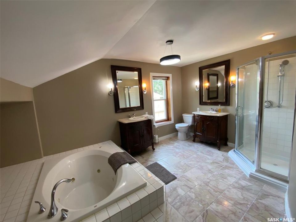 Need room to grow ? This home offers 6 bedrooms and 5 bathrooms! Beautifully and tastefully upgraded to integrate original character with modern.This home is full of character. Three bedrooms on the second floor feature , the master bedroom hosting an ensuite complete with double sinks, shower, soaker tub and marble heated floors. The other two bedrooms on the second floor share a separate full, jack and Jill bathroom, with 2 sinks, a shower and a soaker tub, with marble floors. The main floor of the home hosts a beautiful kitchen of cherry cabinets, slow close drawers, 36" gas range, slate floors, and a sit up island. Formal dining, family room, 2 sitting rooms of which can be an office or den. One main floor bedroom with sound proof walls. One full bathroom. The basement continues with more living space , and provides your family with another 2 bedrooms, 2 bathrooms, rec room or family room . The property has a newer boiler, in floor heating in basement floor, 2 air exchangers, 1 inch insulation under stucco, in floor heat in entrance, re conditioned radiators, weeping tile, 2 sump pumps, engineered basement in 2012 and restructured. Everything has been thoughtfully upgraded and ready for a new family., call today for your own personal viewing