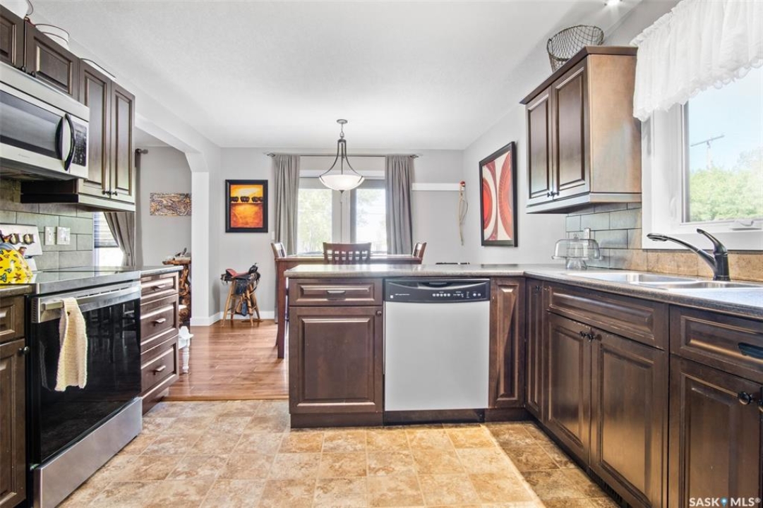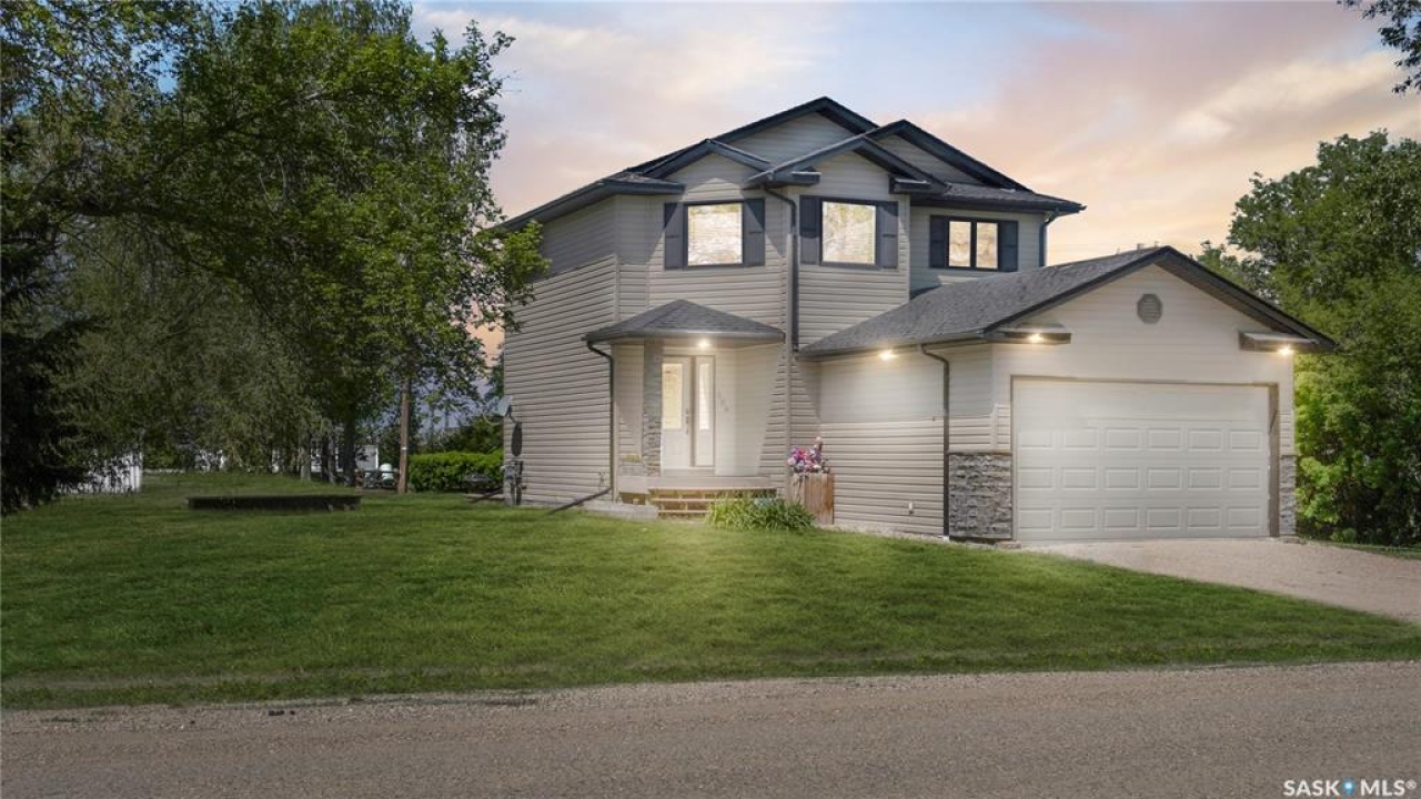 Welcome to your beautiful new home in the friendly community of Lucky Lake, Saskatchewan, located just 15 minutes from stunning Lake Diefenbaker! This move-in-ready home is perfect for families, retirees, or anyone seeking a peaceful vacation getaway. Step inside to an inviting layout with a vaulted ceiling and a cozy gas fireplace that is perfect for relaxing evenings. The bright dining area overlooks a spacious, mature backyard, with a shed for all your storage needs. The master bedroom offers a private en-suite bath and a walk-in closet, while two additional upstairs bedrooms and a full 4-piece bath are ideal for children or guests. Enjoy the versatility of a fully finished basement, ready to become your playroom, entertainment space, or home gym. The attached garage keeps your vehicles protected year-round. Lucky Lake offers all the amenities you need, including a K-12 school, hockey rink, sports facilities, care home, grocery store, and more. Experience the charm of small-town living with stunning natural beauty nearby! Contact me today to schedule your private tour!