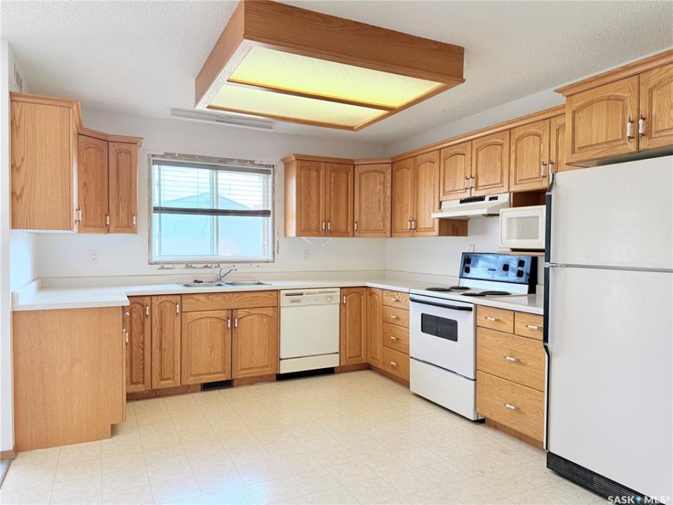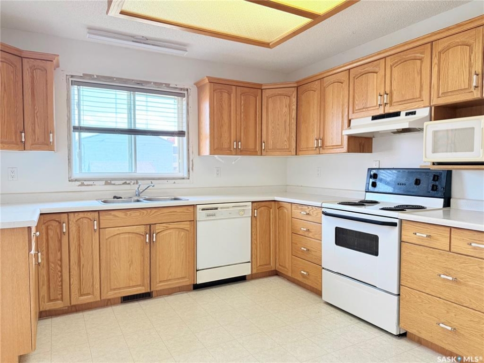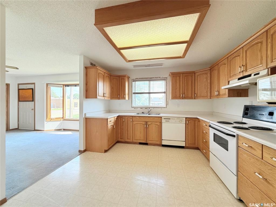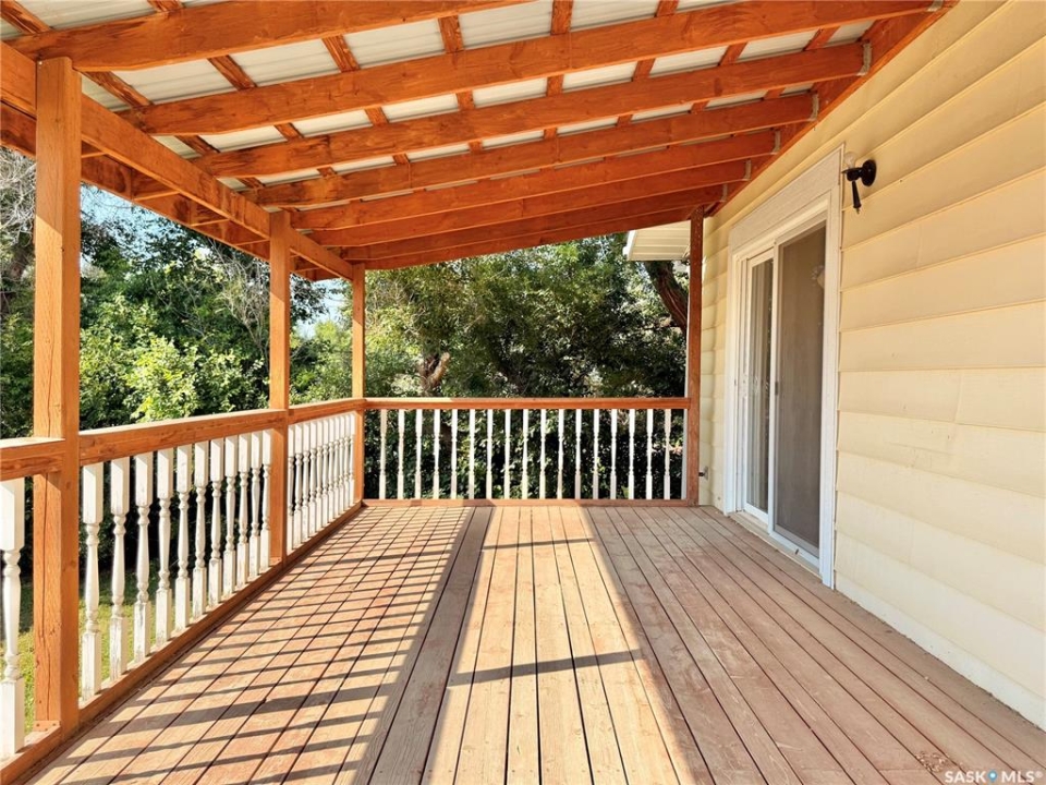 Upgrade your life with this spacious home in Lucky Lake! Located on a corner lot close to shopping and featuring a covered back deck and double detached garage. This home has a functional layout with large living spaces perfect for growing families or those moving to town off the farm! The dining room has patio doors to the back deck and connects to your generous size kitchen with tons of cupboard space. There is a expansive living room with bay window and cutaway into the hallway down to the bedroom enhancing that feeling of openness. The Primary bedroom has his and her closets, newer carpet and paint. The main floor bathroom is huge and has a walk-in jet tub with adjustable shower head and a large vanity with make-up counter. There is 1 more bedroom on the main floor, laundry and 2 piece bathroom. The basement has tons of space with a recreation room large enough for a pool table, 3 piece bathroom with shower (new shower kit will stay for new owners), a den and 3 more bedrooms (1 used as an office - no closet). The utility room has room for storage and your deep freezers and is where you will find the central vac and on-demand water heater! The house shingles were done approximately 2019, there are 4 new windows and new patio door all 2022, jet tub 2018, on demand water heater 2018, and a few finishing touches will be completed for the new owners (trim around new windows and patio door and front step boards). Keep the rain and snow off your vehicles with the 24 x 24 garage featuring electric doors, metal roof and siding! Lucky Lake is located close to Lake Diefenbaker for great beaches and fishing, there is a k-12 school, health centre, groceries, hardware store, fuel, dining and more! Immediate possession available. Call to see it today!