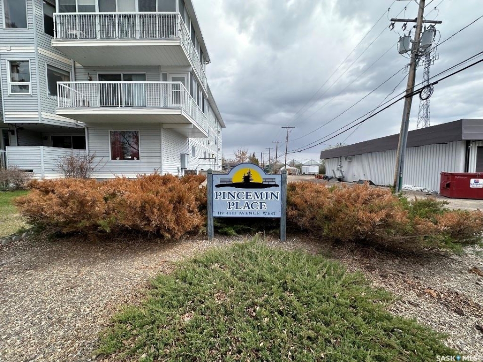 Great price on this 2 bedroom condo located on the main floor of Pinceman Place and walking distance to downtown. 943 sqft of living space the entrance to condo has a good size foyer with large coat closet. There is a large bathroom with double sinks, linen closet and tub/shower with cheater door to primary bedroom. Down the hall is a laundry room with some extra storage. Kitchen is u-shaped with some updated flooring, lots of cabinets and counterspace. From the kitchen you can access the dining room with door to the balcony. 2nd bedroom has two closets and french doors that open to the living room that faces the front of the building. There is a large common room located in the basement for family gatherings, includes a wet bar, 1/2 bath and door to access outside patio area. Each unit has one underground heated parking stall with storage in front of bay. There is also a lockable storage cage located in the basement of the building. Give us a call to book your tour.