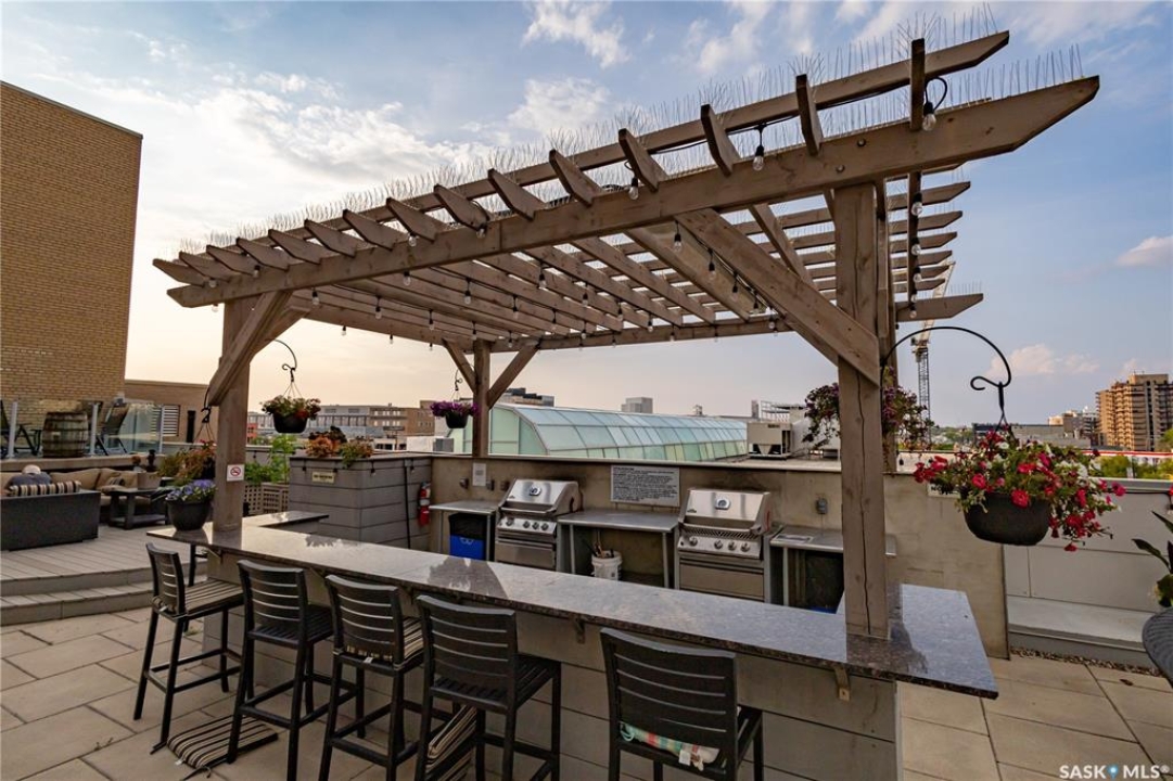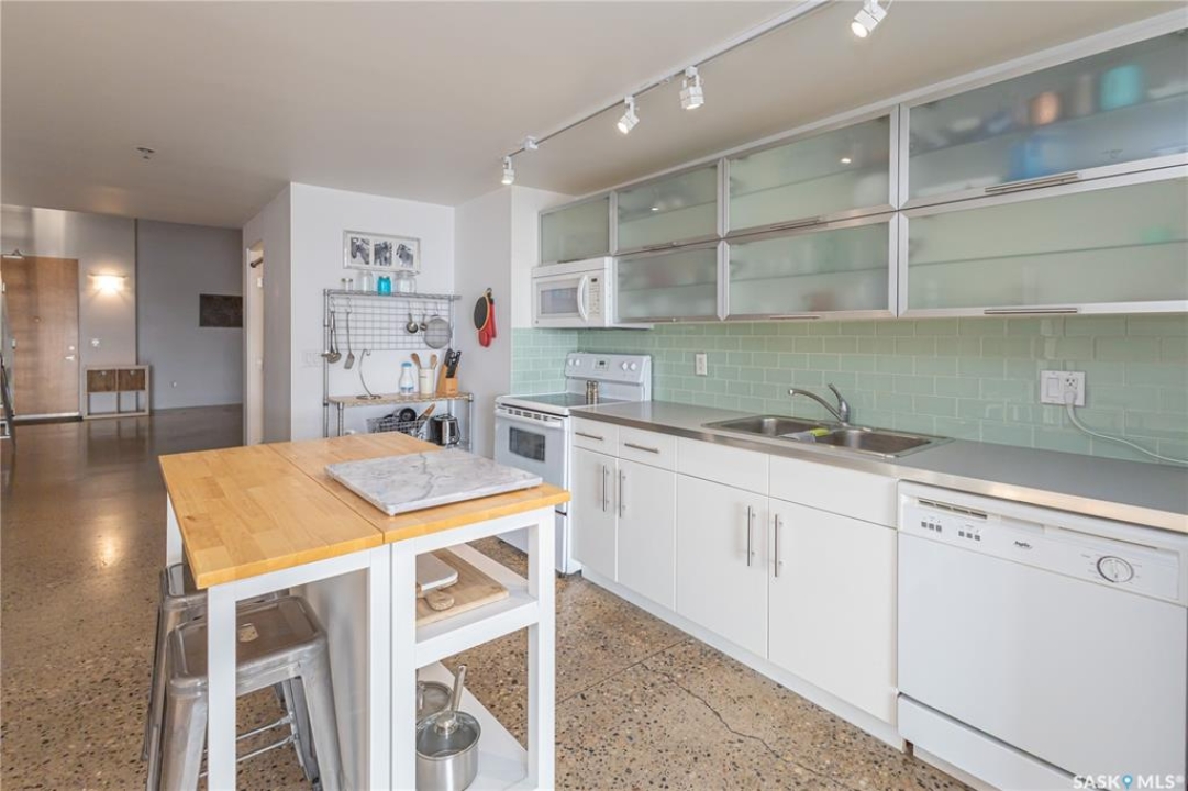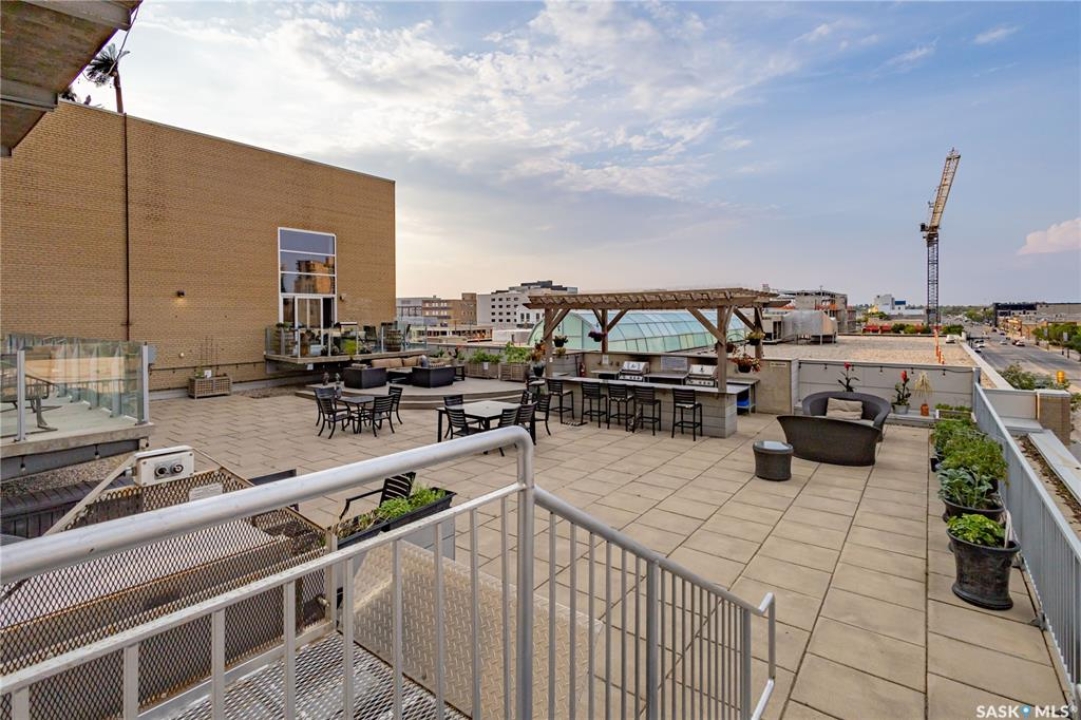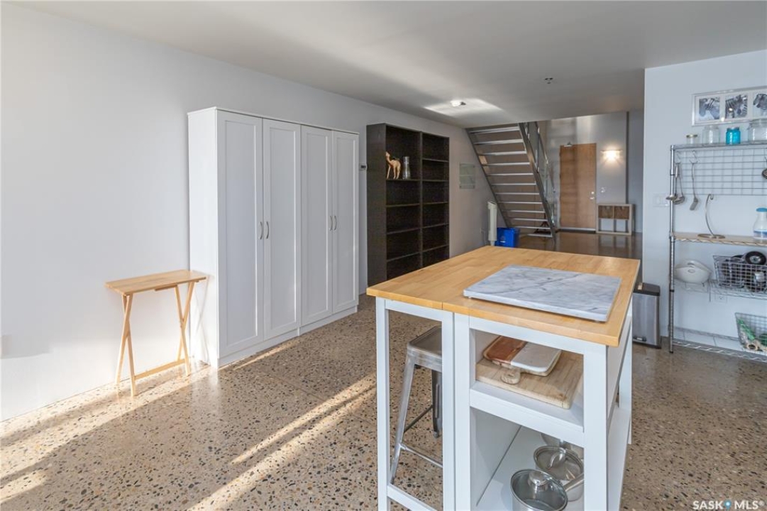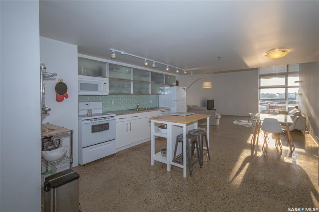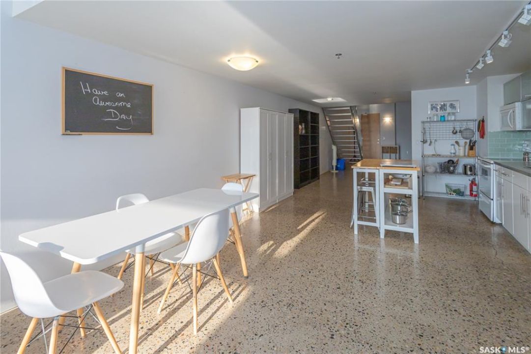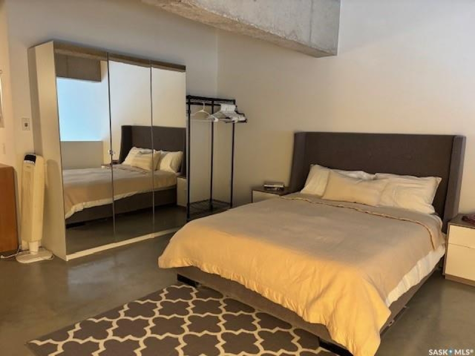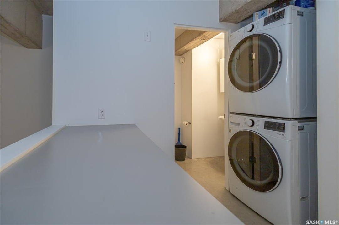 Experience the best of downtown living in this spacious and modern 1,268 sq ft loft condo, located in the sought-after 2nd Ave Lofts. With its industrial-chic design, polished concrete floors, stainless steel accents, and soaring ceilings, this 4th floor unit blends urban style with everyday comfort. The open-concept layout features a sleek kitchen with a center island perfect for entertaining. Upstairs features a large open loft bedroom, a 4 pc bathroom and laundry. A 2nd bedroom could be added to the left of the foyer. The building itself is just as impressive, with open-air corridors, accented by glass railings, a dramatic skylight-filled atrium, and a contemporary lobby that makes a statement. Enjoy the rooftop terrace complete with a pergola-covered BBQ area, perfect for relaxing or hosting friends. Additional perks include a fitness centre, elevator, and secure underground heated parking. One underground parking stall included. Quick possession is available, just move in and start enjoying downtown living at its finest! Condo fees include power and heat! Buyer/Buyer's Agent to verify all measurements. Call to book your viewing today.