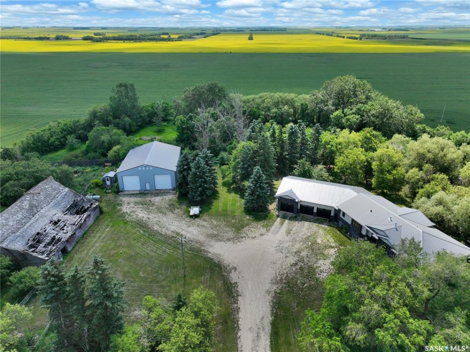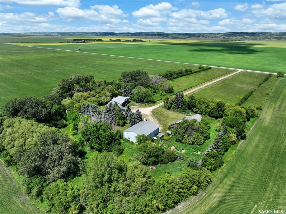 If your vision is modern elegance,step into The Lazy dollar Ranch!The main house & 3 car attached garage steals the show from entrance in to the insulated & heated breezeway with 2 pc bath.Hunting/ fishing/ fixing stories have a space and a place here, not to mention a cold fridge and a private breeze way bath so as not to disturb the main house functions.The main house access hits hard to an XL custom mudroom with built in lockers, mainfloor laundry & a well planned walk-through pantry.The party starts here with hardwood and ceramic tile through out the main floor, access to the basement,a formal dining room,10 ft island, dual wood fireplace & a view of the moose mountains from the kitchen sink story books dream of, not to mention enough cupboard space for all your tupperware lids.A sunken ceramic tile entry make wood stocking easy for the main floor fire place.The main floor also boasts tons of natural light with north and south facing windows, 3 main floor bedrooms, a 4 pc main bath and a custom ensuite bathroom so elaborate & copious in size you'll wonder how you lived any other way. Access from the master bedroom to the maintenance free decks, with included hot tub with a whispy whimsical set of shelter belt trees as a back drop finish your main floor experience.The basement is a whole other vibe, with matching color trends, a sunken concrete wet bar ready to be completed & enough space for anyones rec basement goals or interests. An additional alternative fireplace accents the basement,2 oversized bedrooms, gym & 3 pc bath.Additional advantage, concrete safe room with cored concrete air exchange in the event shelter was ever needed.The 3 car attached garage isn't enough for this 10.8 acre paradise, fenced twin pastures line the lane & it is further accented by a 60x48 shop with infloor heat & additional over head propane heater.Contact your agent to view the Lazy Dollar Ranch in SE Sk, where potash, wheat & oil meet and start your acreage owning goals now!