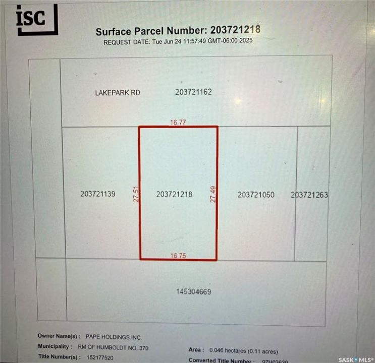 Enjoy lake living on this lot. The Seasonal lot is .11 acre. Culverts and driveways have been installed and trees planted. Lot has 100 amp power to property line. Buyer to sign Servicing Agreement with Pape Holdings Inc.. Buyer responsible for utility hookup costs. Buyer is responsible for septic holding tank cost and install. Buyers to consult with RM of Humboldt regarding building guidelines and approval. Minutes from the City of Humboldt and approx. 50 min from the BHP Jansen Potash Mine site. Call today for more information!