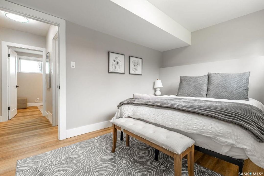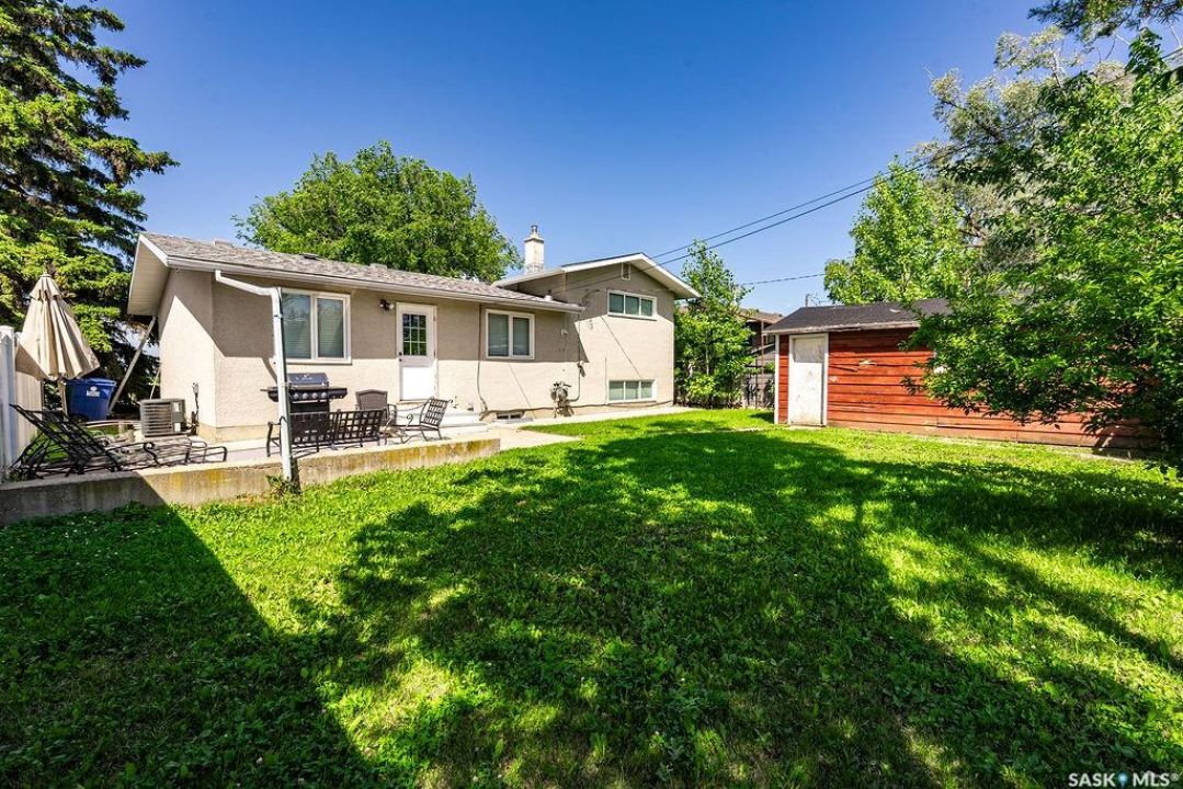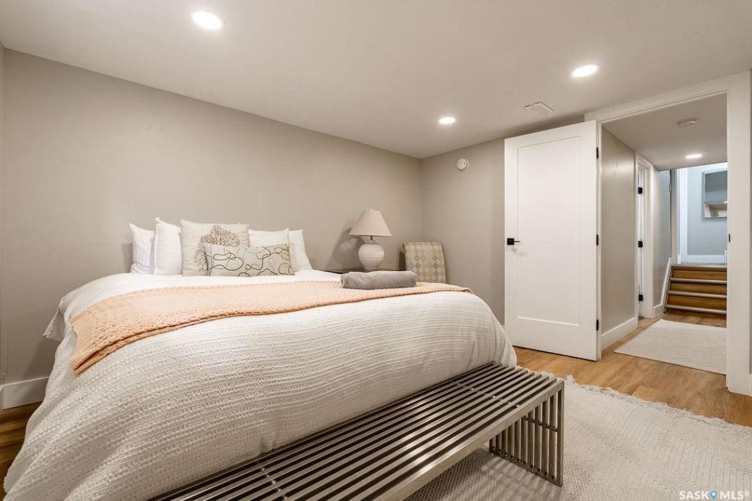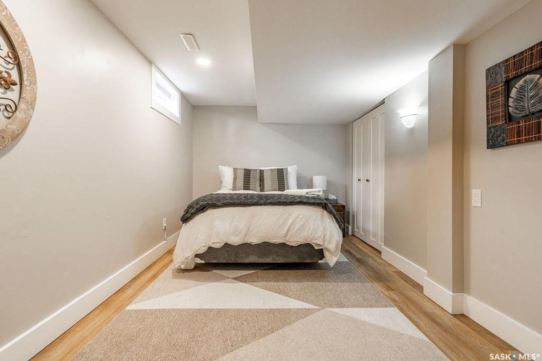 Beautifully updated and move-in ready, this spacious six-bedroom, three-bathroom home in sought-after Grosvenor Park offers the perfect blend of modern comfort and timeless style—all just a short walk from the University of Saskatchewan. Inside, you'll find bright, welcoming spaces with newer flooring, trim, doors, paint, and beautifully updated bathrooms. The main floor features a sunny and expansive living room that flows seamlessly into a generous dining area and an updated kitchen with contemporary finishes and plenty of prep space. The second level offers two oversized bedrooms and a refreshed four-piece bathroom. On the third level down, you'll find two more spacious bedrooms and another full bath. The basement features two additional bedrooms and a modern three-piece bathroom—ideal for guests, roommates, or a growing family. Outside, enjoy a fully fenced backyard with a cozy patio, perfect for entertaining or relaxing. The single detached garage adds convenience, and you're just two doors down from a charming neighbourhood park—an ideal setting for kids, pets, or a quiet stroll. This is a rare opportunity to own a versatile, stylish home in a mature, central neighbourhood—steps to campus, close to amenities, and ready for its next chapter. Don't miss your chance to call this Grosvenor Park gem home!