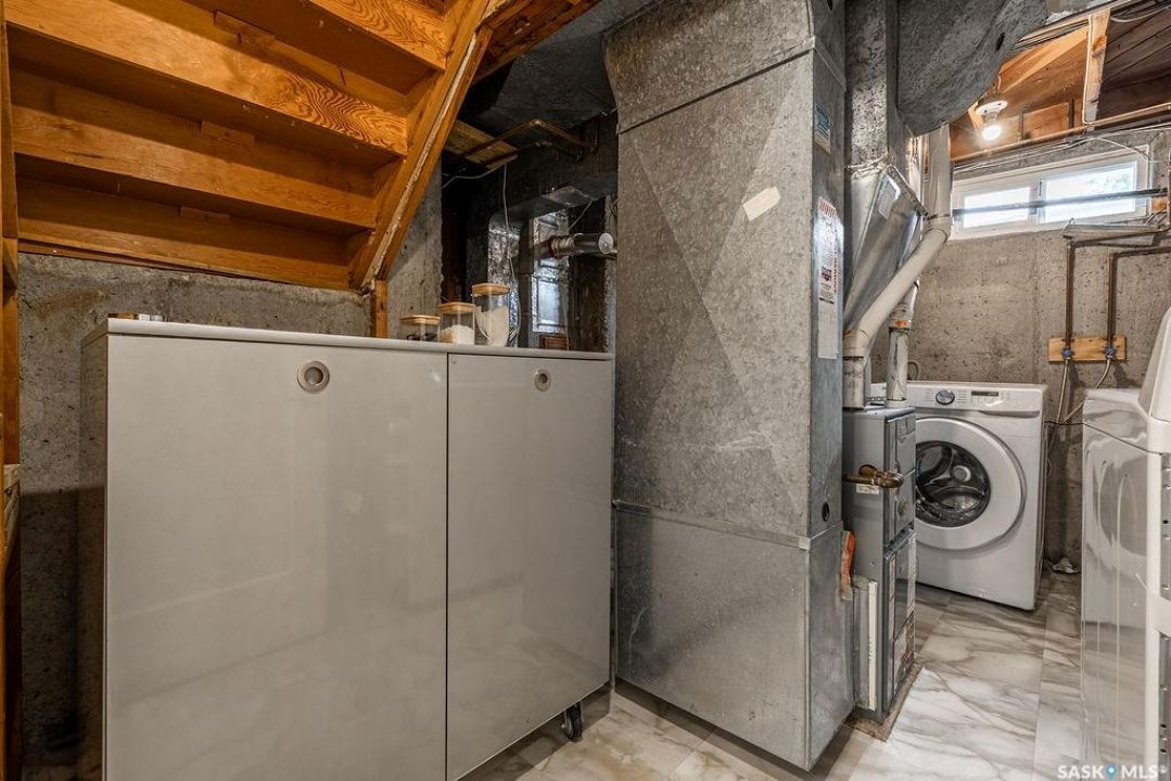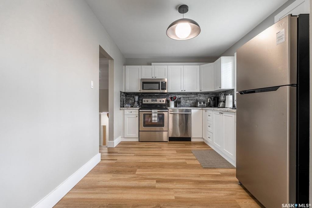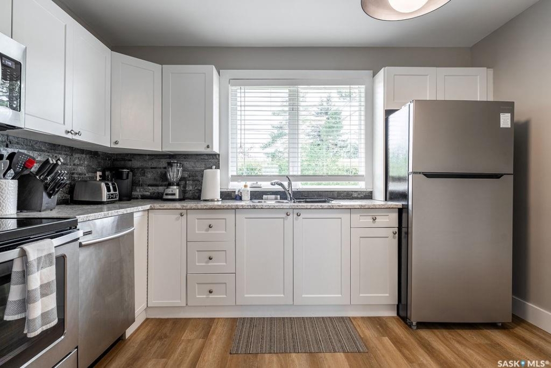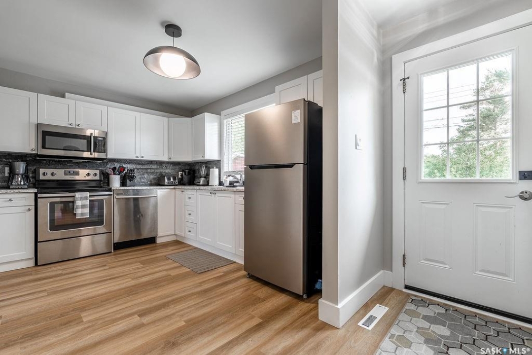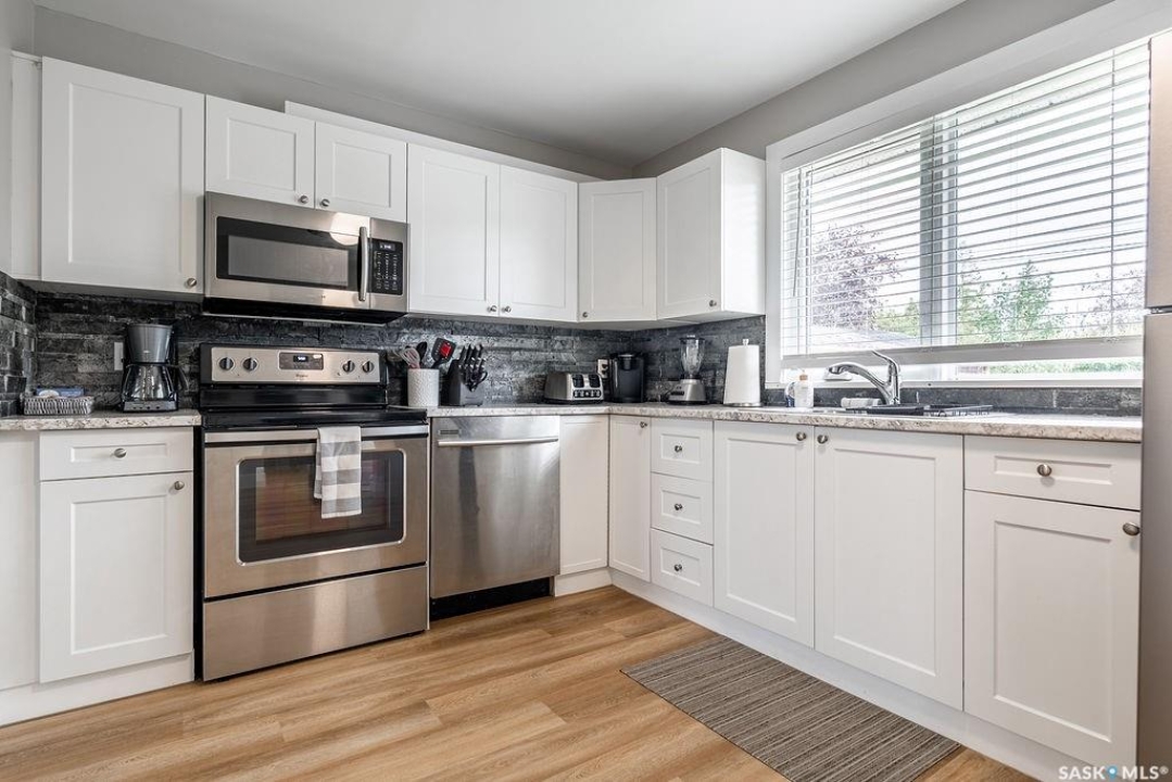 Beautifully updated and move-in ready, this spacious six-bedroom, three-bathroom home in sought-after Grosvenor Park offers the perfect blend of modern comfort and timeless style—all just a short walk from the University of Saskatchewan. Inside, you'll find bright, welcoming spaces with newer flooring, trim, doors, paint, and beautifully updated bathrooms. The main floor features a sunny and expansive living room that flows seamlessly into a generous dining area and an updated kitchen with contemporary finishes and plenty of prep space. The second level offers two oversized bedrooms and a refreshed four-piece bathroom. On the third level down, you'll find two more spacious bedrooms and another full bath. The basement features two additional bedrooms and a modern three-piece bathroom—ideal for guests, roommates, or a growing family. Outside, enjoy a fully fenced backyard with a cozy patio, perfect for entertaining or relaxing. The single detached garage adds convenience, and you're just two doors down from a charming neighbourhood park—an ideal setting for kids, pets, or a quiet stroll. This is a rare opportunity to own a versatile, stylish home in a mature, central neighbourhood—steps to campus, close to amenities, and ready for its next chapter. Don't miss your chance to call this Grosvenor Park gem home!