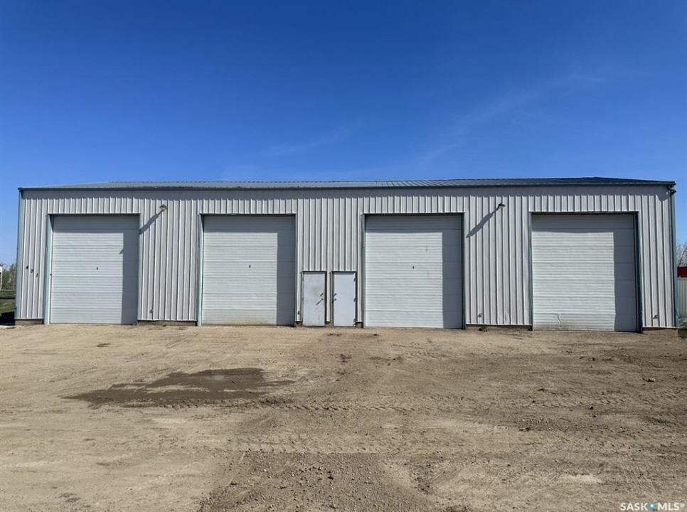 Commercial Shop with fenced compound in Langham offers 402 feet of frontage! This 4 bay, 3200 sq ft shop boasts 4 over head doors (12x14ft) radiant heat, LED lighting, floor drains, and a full bathroom. Beside the shop is a huge fenced compound for additional storage or investment opportunities! So many possibilities for this space: owner - user, owner - landlord, or a great investment property to generate income. Don't miss out!