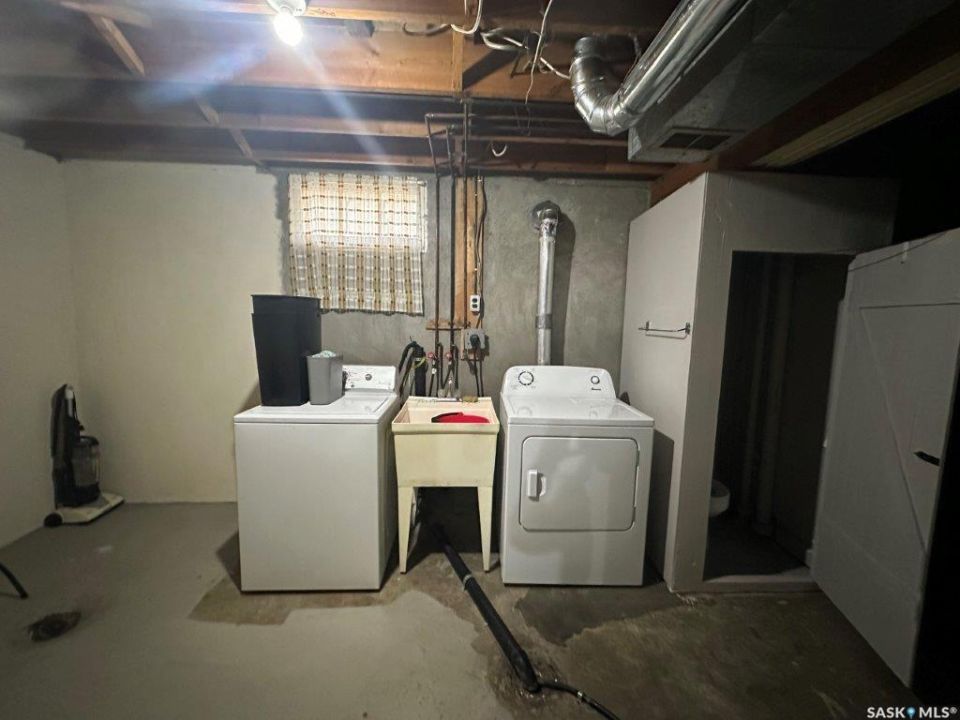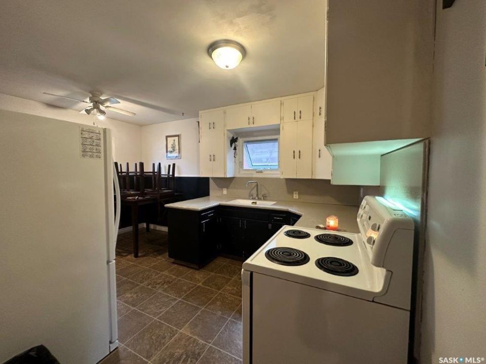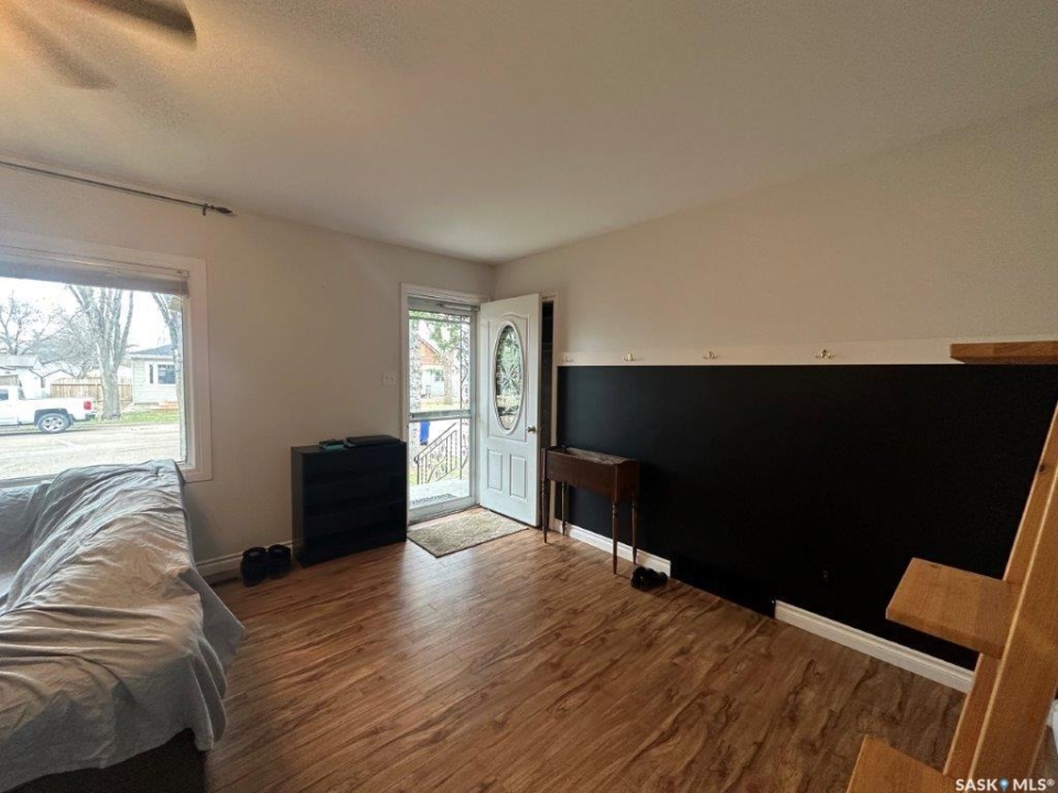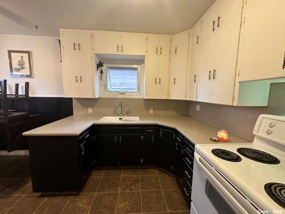 Great location for this home! Just steps away from the school in Eatonia. 1008 sqft bungalow with 4 bedrooms has received some updates throughout the years. Enter the home into a spacious living room with laminate flooring. From here you can access the hallway to kitchen and dining area or go down the hall to the 3 bedrooms and 4-piece bath. Basement access is just off the dining room. There is a door to the backyard with a large coat closet here as well. Basement has a good size family room, a bedroom, cold storage room, and laundry room with plumbed in toilet. There is a room to develop a full bathroom here. The backyard is nice and private with updated fence, deck, garden area and greenspace. The detached garage is great for storage with access from the front street. Eatonia has school from k-12 with plenty amenities and is a short commute to Kindersley. Call today to book your showing.