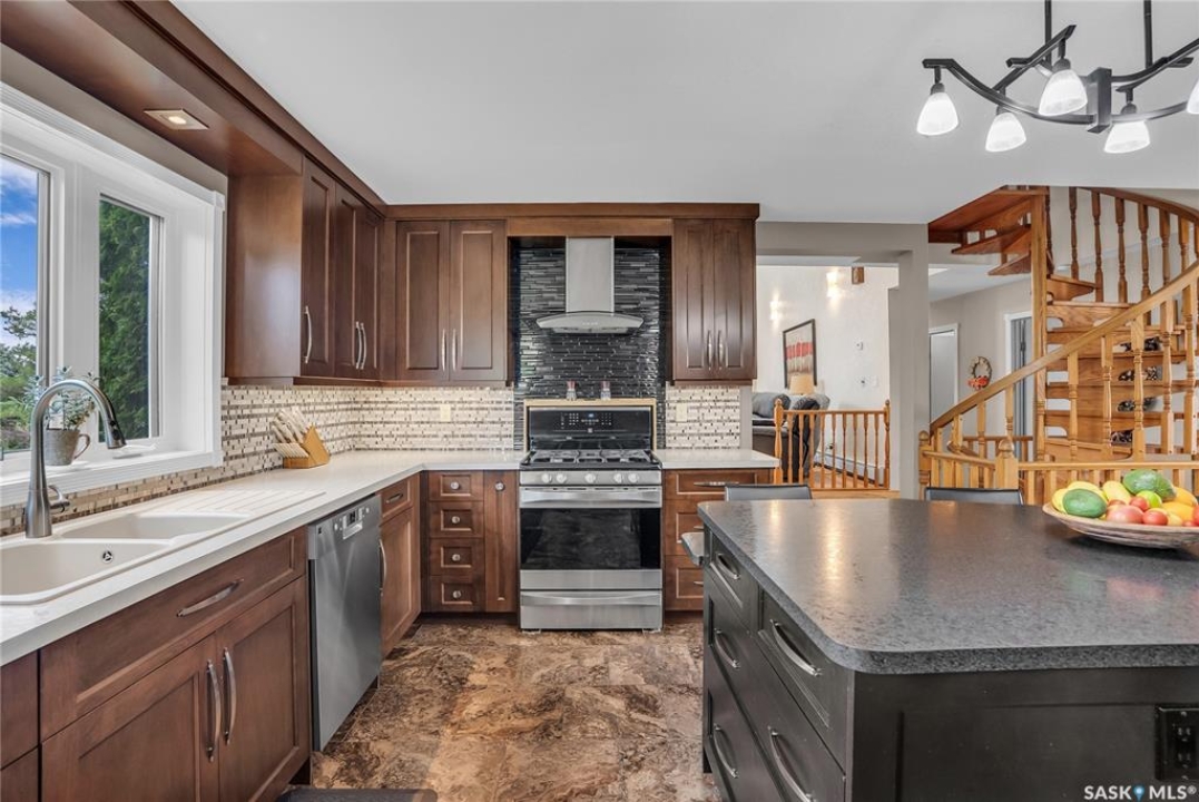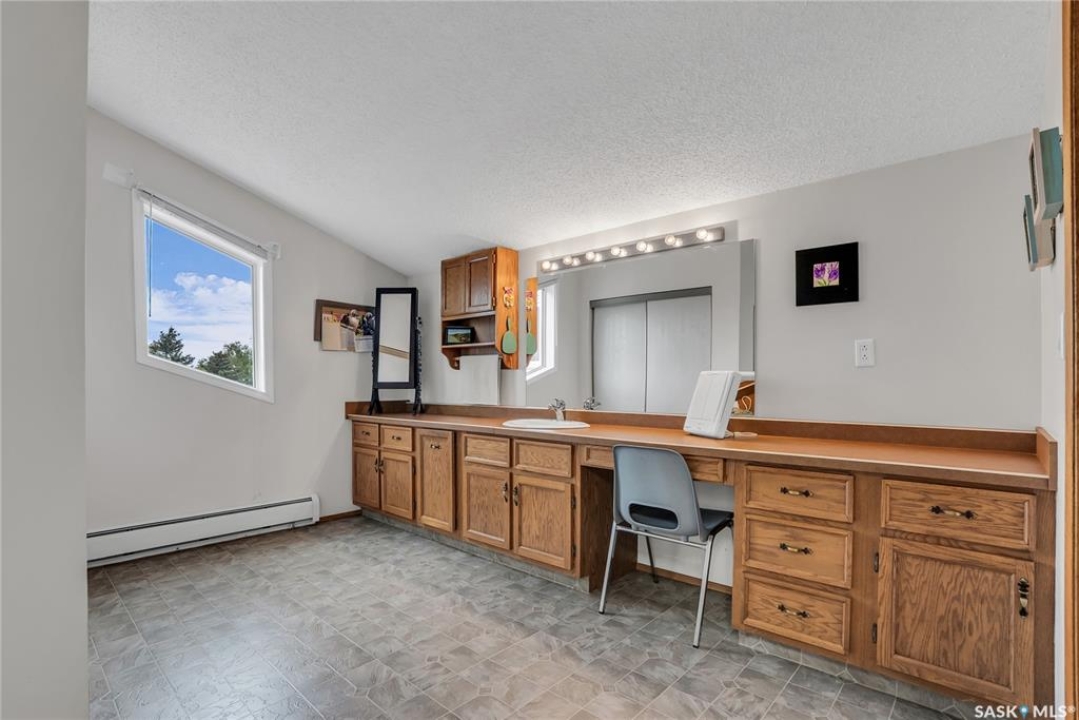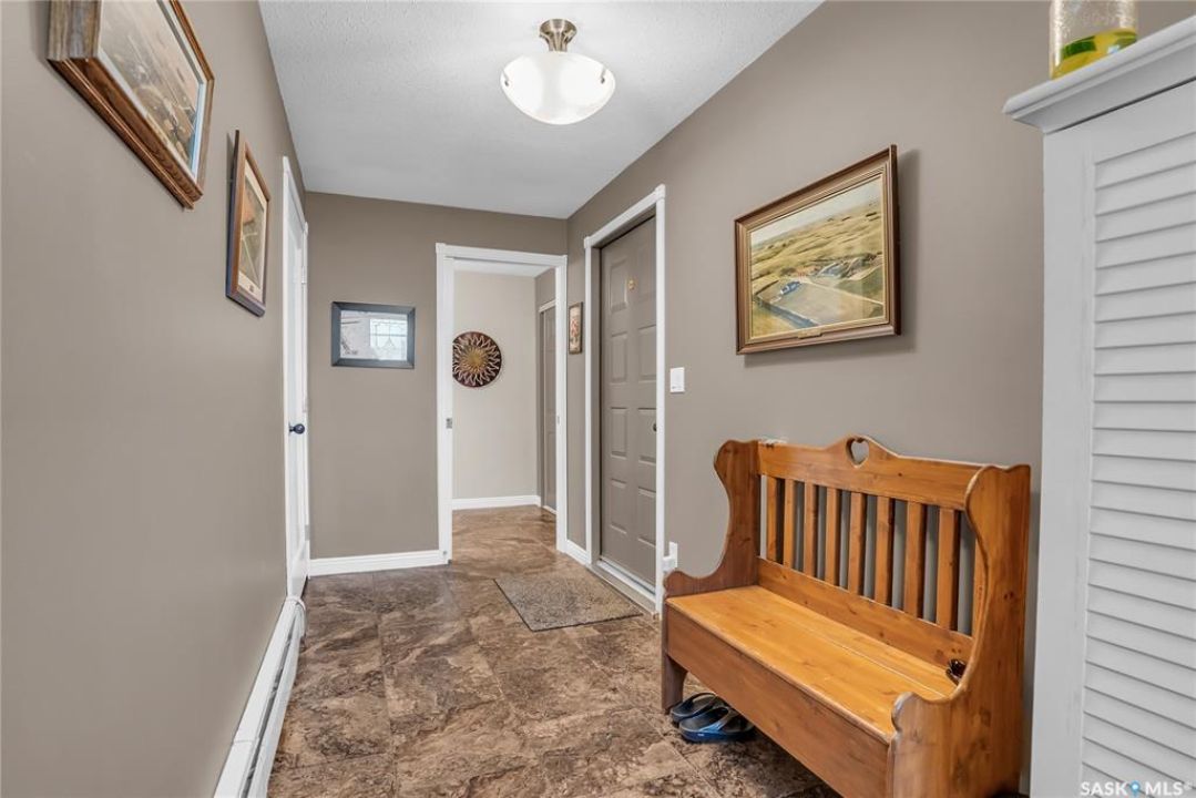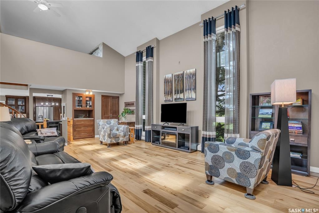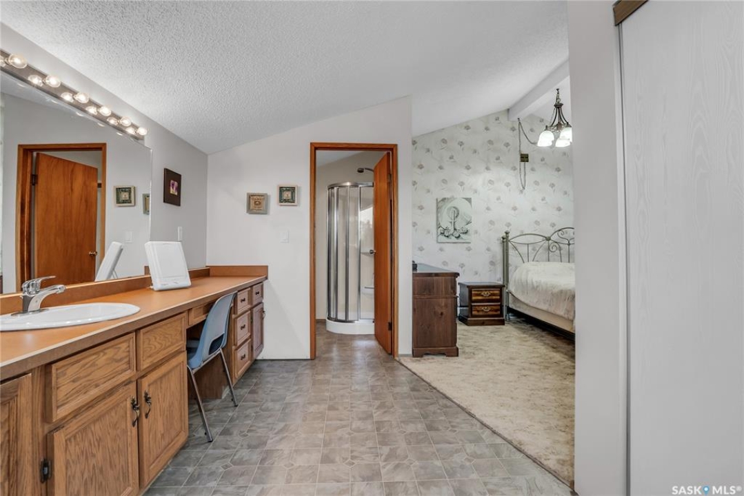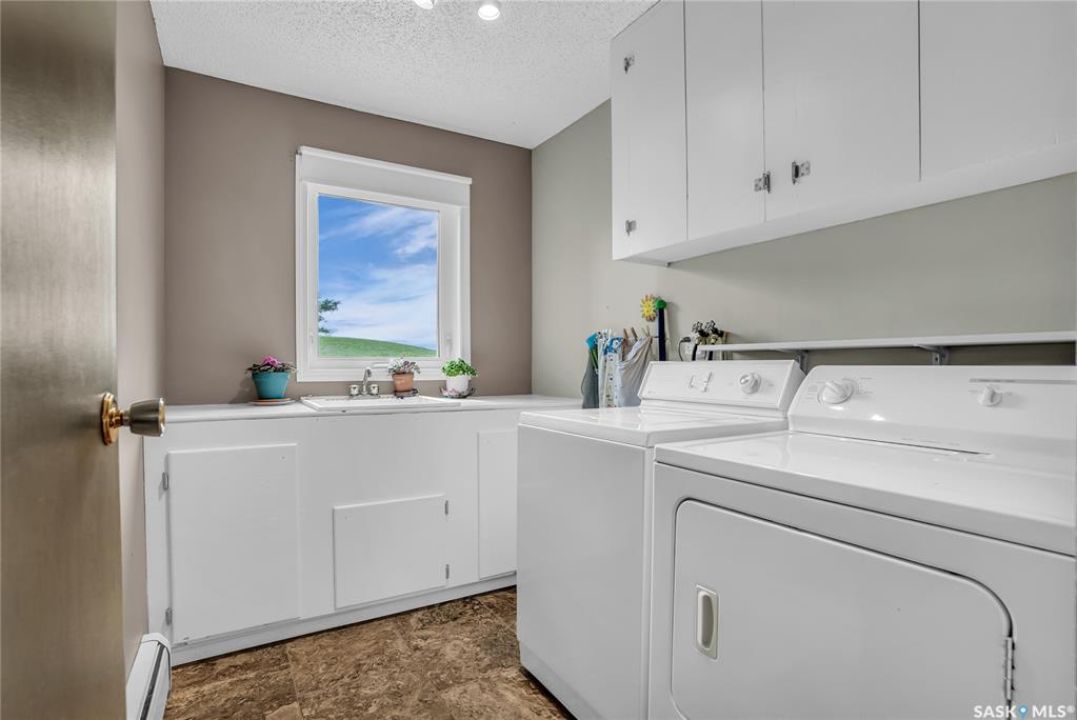 Discover this uniquely designed acreage home, nestled in the hills and thoughtfully crafted by the original owner. Offering nearly 3,000 sqft of total living space with approx 144 acres of pasture land, this home is ideal for families, home-based businesses, or anyone seeking space, privacy, and character. The main floor boasts a spacious updated kitchen with abundant cabinetry, stainless steel appliances, and open layout perfect for entertaining. Hickory hardwood floors and vaulted ceilings create an inviting living space, complemented by built-in cabinetry and custom features throughout. There is an impressive 26' x 32' bonus room—ideal as a family room, studio, office, or could easily be converted into additional bedrooms. An additional bedroom/office is located on the main. The 4-piece bathroom features an air jet tub, and the generous mudroom/laundry area includes a convenient powder room and direct access to the insulated garage. A spiral staircase leads to the luxurious 600 sq ft primary suite with a 3-piece ensuite and extended vanity. A fully developed basement offers two more bedrooms, a full bathroom, and separate entry through the garage or the main house—great for extended family or guests. Outside, enjoy the 14'x48' cedar deck with pergola covering, perfect for relaxing or entertaining with scenic views and peaceful walking paths. Outbuildings are extensive and include a 25'x50' insulated and finished garage/shop combo, a 16'x30' heated barn/workshop with concrete floor and power, a massive 25'x110' storage shed with multiple garage doors (including a 12' door) and ample shelving, plus several other storage buildings and a 24'x8' garden shed. Additional features include a covered fire pit area, children's playhouse and swings, gravelled RV parking, and a fenced lagoon. Recent updates include new kitchen cabinets, backsplash, and main floor flooring (2013), and a new water heater (2025). Heating is provided by an efficient boiler furnace. View today!