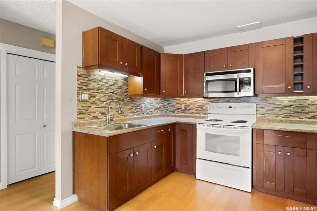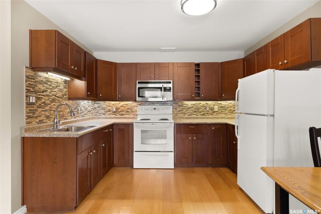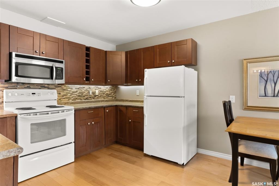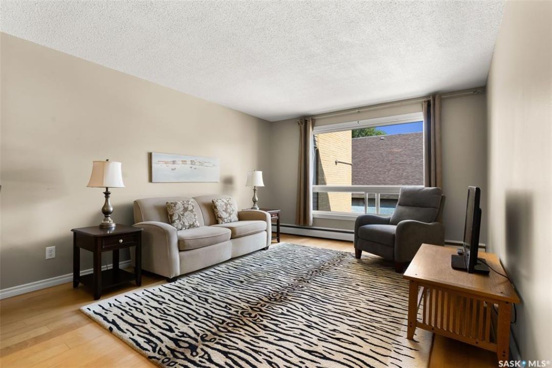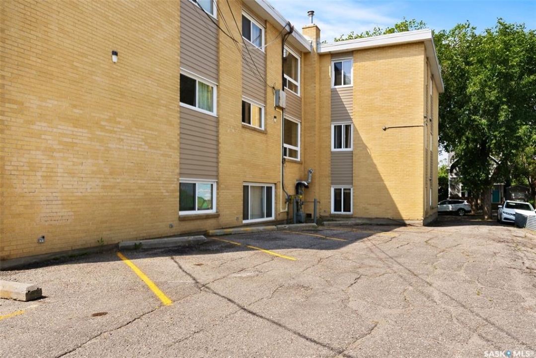 COMPLETELY UPDATED ONE BEDROOM, 2ND FLOOR CONDO IN THE HEART OF CATHEDRAL! Welcome to Park Lane, this nicely updated condo would be ideal for first time buyers or investors. Enter to the foyer that opens up into a bright open kitchen and dining area. The kitchen is updated with newer cappuccino cupboards, newer counters and a tile back splash. All of the windows have been updated and the main living area features engineered hardwood. The 4 pce bath has a brand new tub surround and newer toilet and vanity. The bedroom boasts a big window and lots of closet place. There is also a convenient storage room off the entrance that could be converted to a laundry room. The units condo fee's include heat, water, snow removal, common area and building maintenance as well as contributions to the reserve fund. The front entrance steps are undergoing repairs.The unit comes with one electrified surface parking spot, all furniture is negotiable. This property is walking distance to all that Cathedral has to offer as well as being right next to downtown and minutes to Wascana Park. Please contact you Realtor for more information or personal tour.