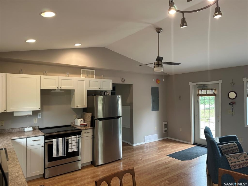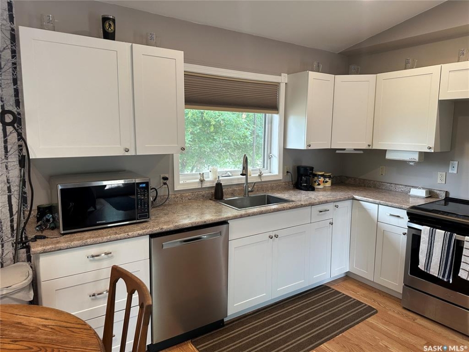 This newly build home sits on a very large oversized well landscaped and treed lot in the town of Big River. This home is close to all ammenities yet very private. The home offers one very large bedroom with a large walk in closet and a patio door leading to a nice deck to sit on. The bathroom is spacious with a nice barn door feature. The living room and kitchen are wide open with bright white cupboards, and nice stainless steel appliances. There is also a very large sun room which is great to sit in and enjoy the beautiful views or if you need a second bedroom it would be an easy conversion to change this room into another bedroom. The home has 200 amp power for rv hook up on the home for your guests that would like to come for a visit and have there own space. This home is well built and wheel chair accessible with wide doors and everything on one level. call today to come have a look