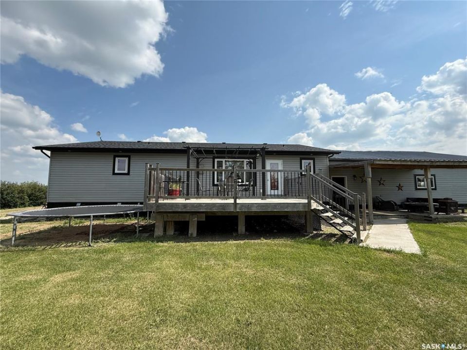 NEWLY built Home ONLY 30 mins from Weyburn! If you are looking for a quiet place to call home that is only a short drive to city amenities than this Acreage is for you. It is located only 30 mins from Weyburn OR 45 mins from Regina. This home is just under 1800 square feet of living space on each level. If offers a mudroom that walks into a 2 piece bathroom/ laundry room. The mudroom opens up the the open concept kitchen/dining and living room. The kitchen has an abundance of cupboard space, island with additional seating and vaulted ceilings and walk in pantry. The dining room is grand and would be perfect to hold large family gatherings. The living room has patio doors to access the back deck. Down the hallway are 2 good size bedrooms, a 4 piece bathroom and primary suite. The primary suite is spacious and has a large walk in closet and 4 piece bathroom with soaker tub and tons of stoarge. The basement is huge. It's a perfect area for a game room & family room. There are 2 good size bedrooms and a 2 piece bathroom that has been prepped for a shower/bath tub. The one storage room could be used as a office. There is another large storage room and the utility room. The home also has a over sized 2 car garage that can easily fit more than 2 vehicles in it. The yard has mature landscaping with lots of tress and a great shelter belt. There is a garden area, play center and detached garage. You won't find a acreage like this on the market often. Don't miss out!